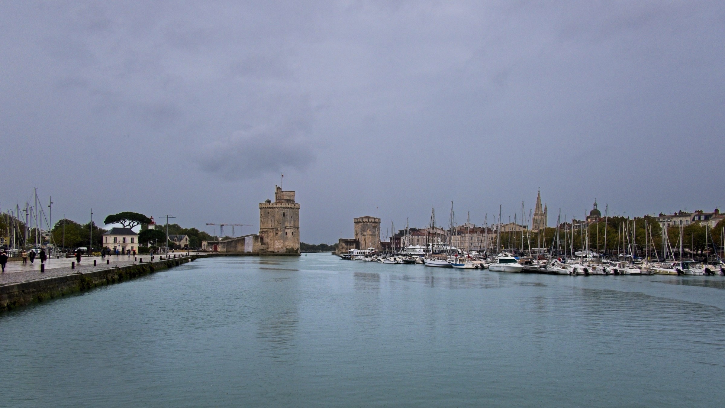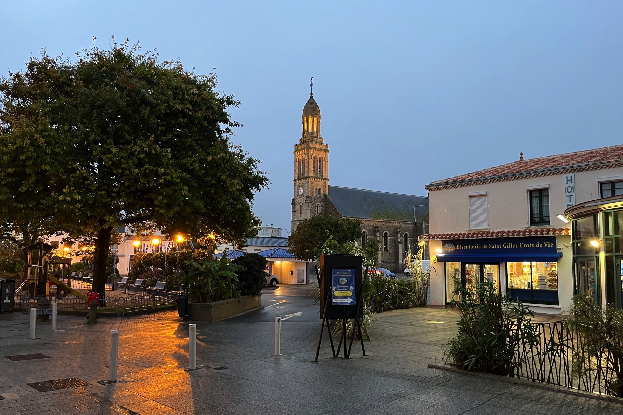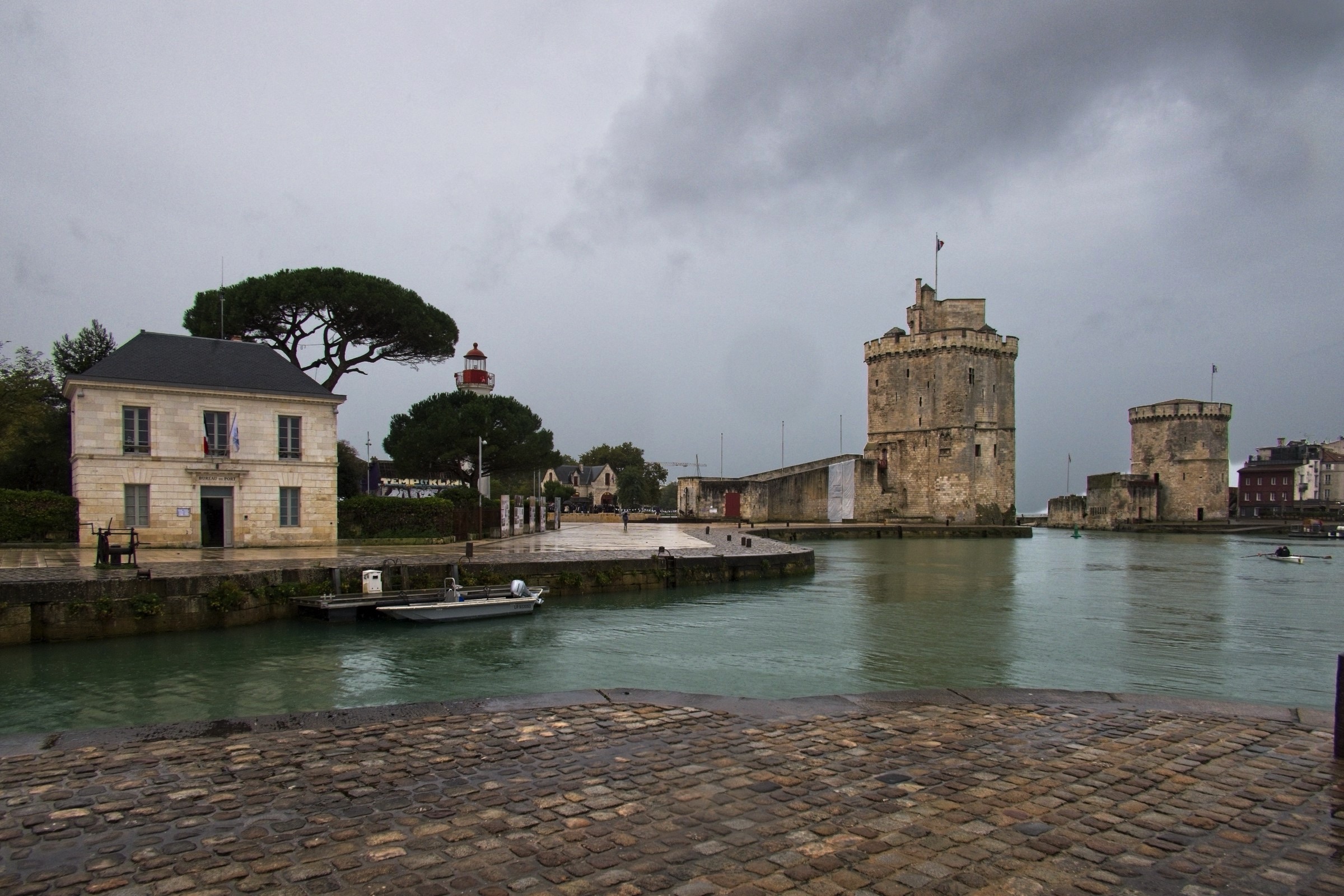 The day started promisingly with a little sunshine as I drove up the Medoc peninsula following the route du vin, Bordeaux, to Le Verdon-sur-mer to catch the ferry to Royan, across the mouth of the Girande estuary. There was a forecast of rain later but I could not have imagined how heavy and prolonged it would be. Light rain on the ferry continued to Saintes for a charge to the car and a panini for lunch but within a few minutes of heading towards La Rochelle the rain just built and built. Heavy at La Rochelle and torrential at Le Roche sur Y’on and then all of the way to my overnight at St Gilles-Crois-de-Vie. (the Vie refers to the river that bisects the town). In many places the road was pretty much flooded, particularly on the dual carriageways around Le Roche. The resut was a little traffic chaos and a couple of detours. Fortunately when it came time to head out for dinner the rain had passed. The problem then was to find anywhere open. The hotel recommended restaurant was closed, the Google top recommendation was closed, in fact but for a couple of bars and takeaway pizza places there was only one proper restaurant open and as I noted on a Facebook post, it was packed and the food and drink were just fine. I managed to get my dailly excercise wandering the streets in search of sustenace, so all good. Not too many picture opportunities today, one because of the weather and the other was time constraits to catch a suitable ferry. Anyway here are a few wine route pictures, including the headline and include a stop in Pauillac, situated on the Girande, and I could not resist one at the entrance to Chateaux Latour, not that I can afford the wine. I remembered from a previous trip here about 20 years ago the unusual fishing system along the river. I am sure it must work. It was fascinating passing so many places famous with wine named for them. Included is a snap of the empty deck on the ferry after we had all retreated to avoid the increasing drizzle. I drive down to the old port in La Rochelle and got soaked taking a handful of pictures. I’ll finish with a few pictures in St Gilles where one could have fired the proverbial automatic weapon and not hit a soul. Another interesting day and a good test of the car’s defoging system. It works well without killing the range.