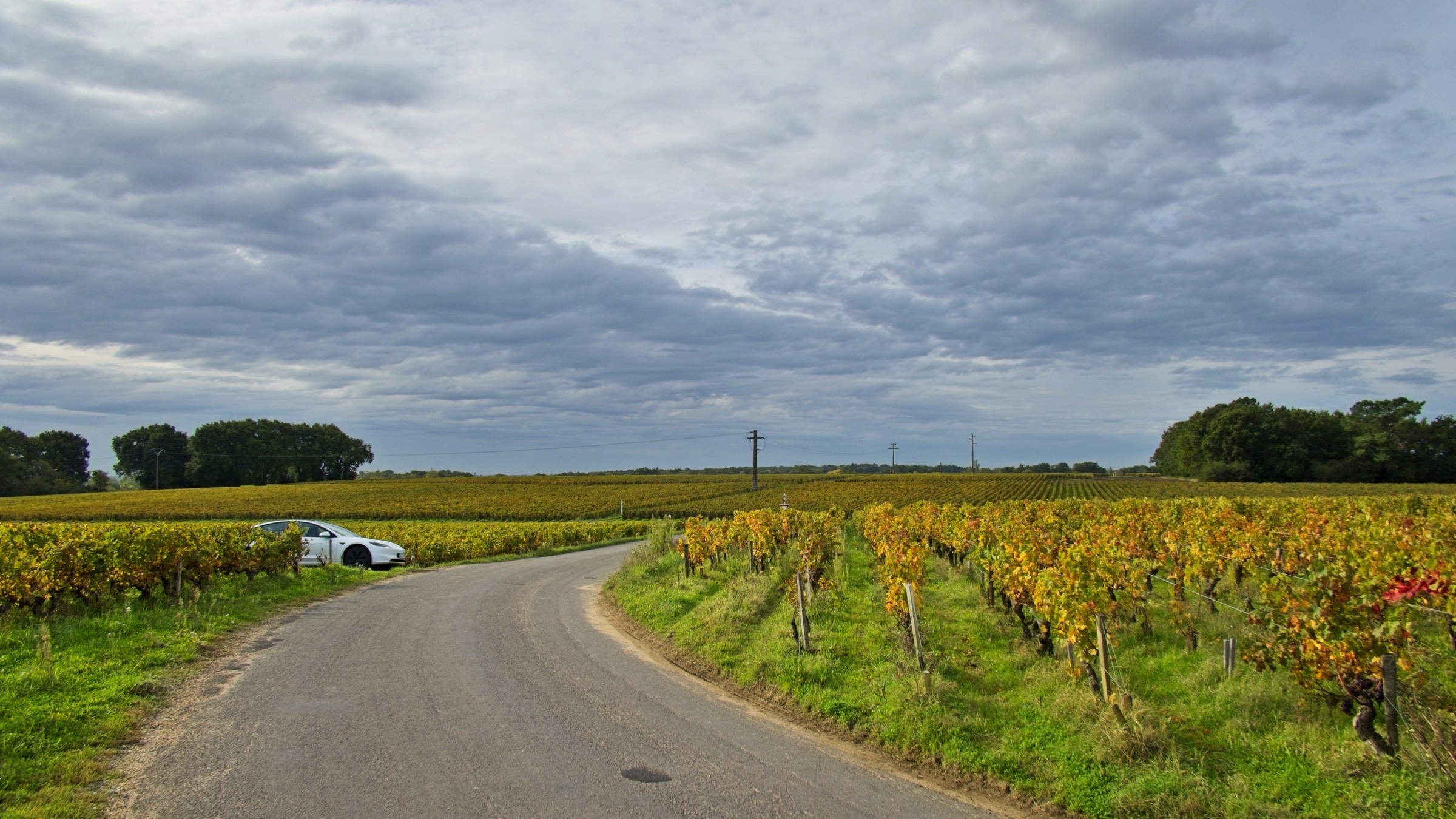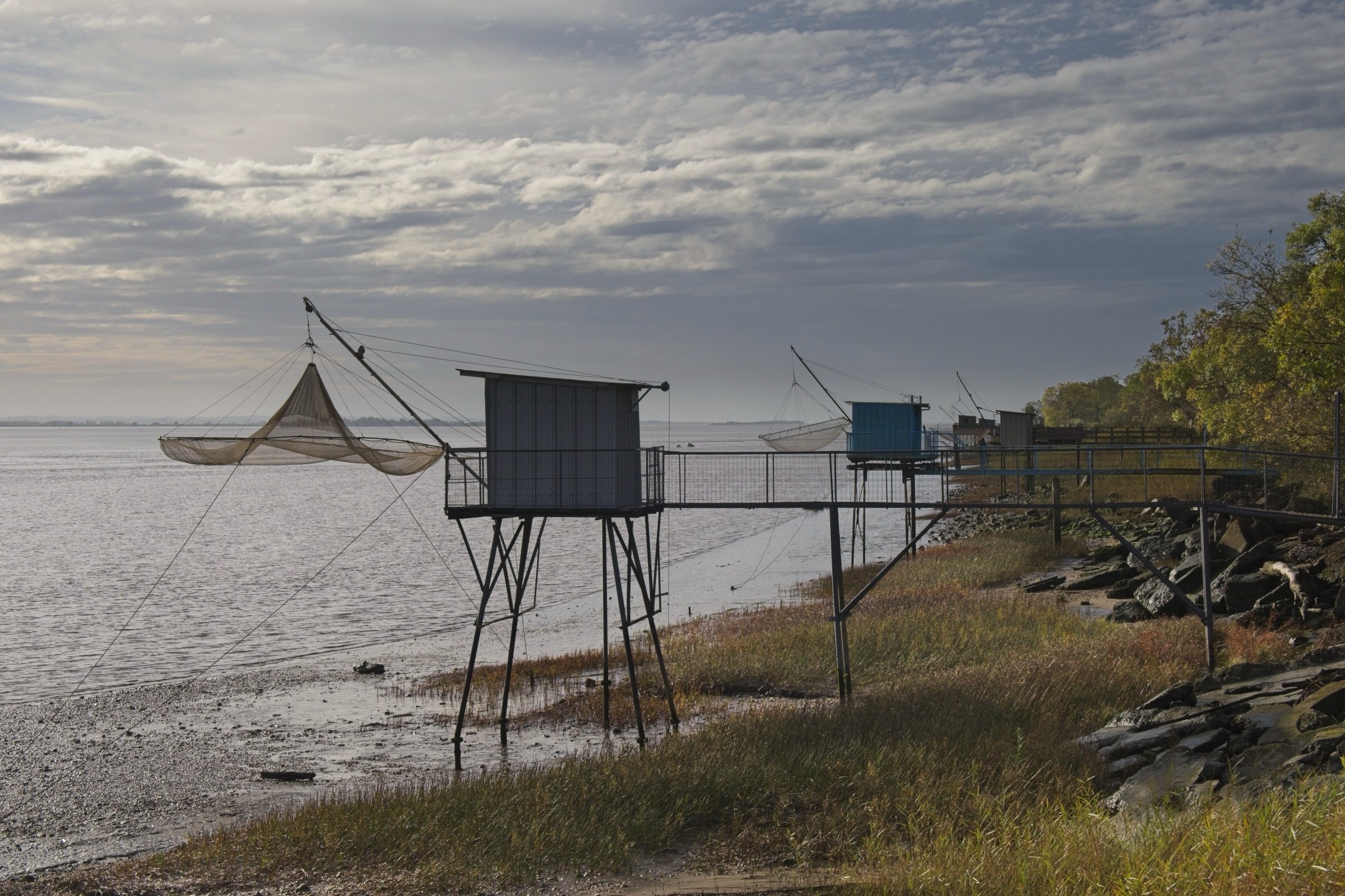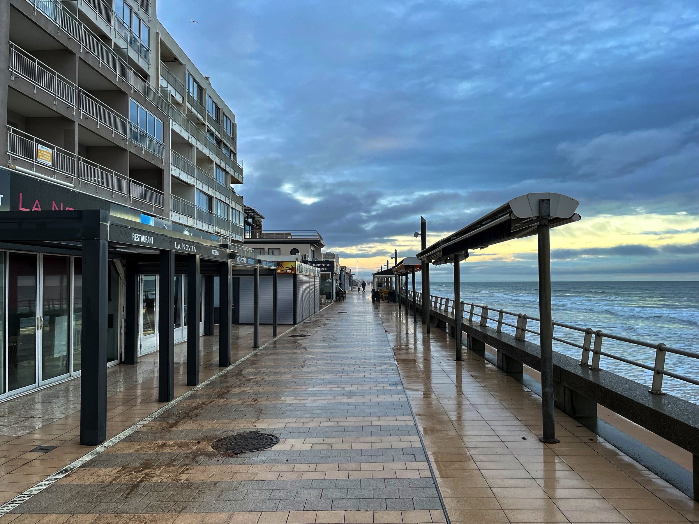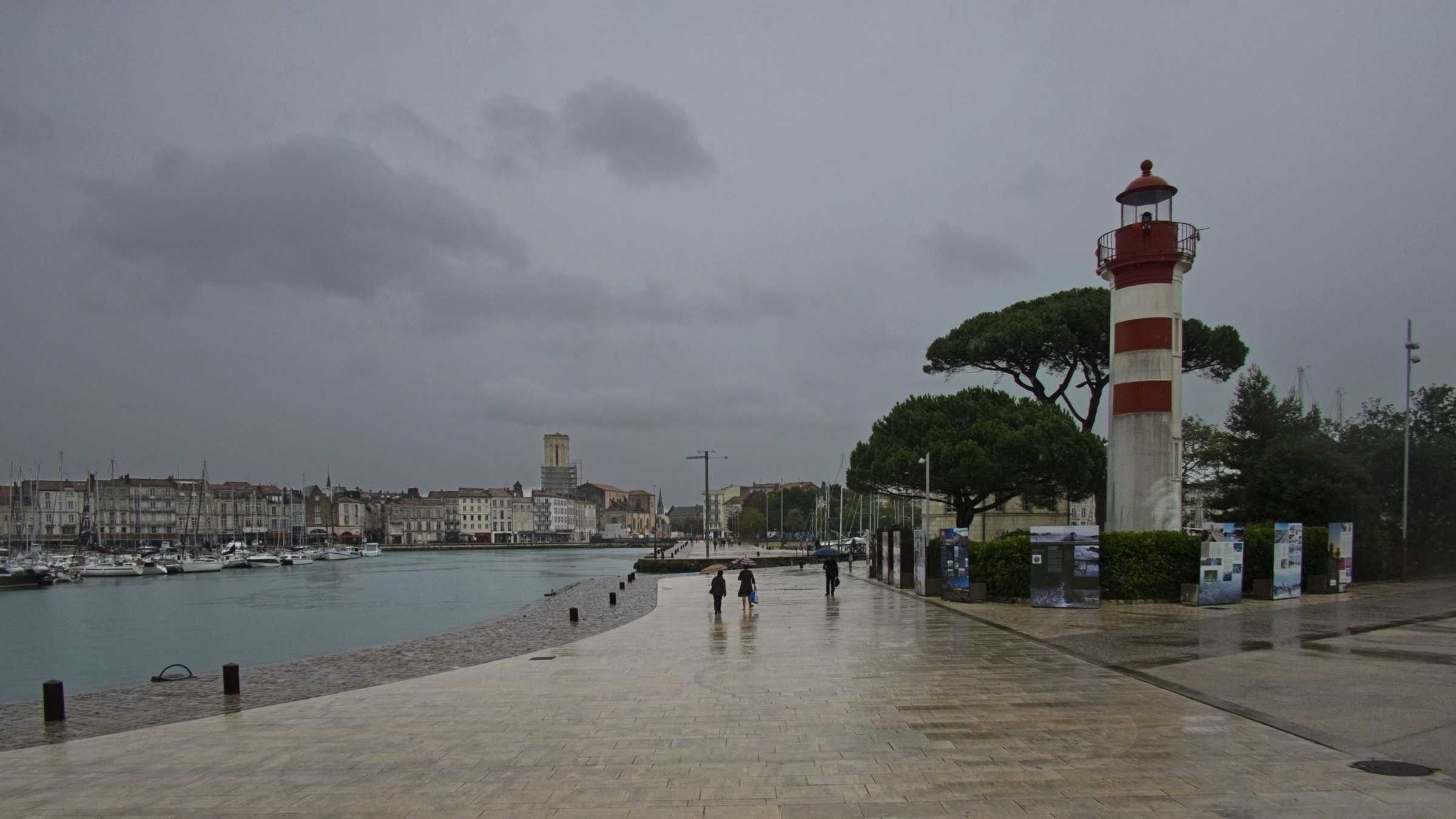 The day started promisingly with a little sunshine as I drove up the Medoc peninsula following the route du vin, Bordeaux, to Le Verdon-sur-mer to catch the ferry to Royan, across the mouth of the Girande estuary. There was a forecast of rain later but I could not have imagined how heavy and prolonged it would be. Light rain on the ferry continued to Saintes for a charge to the car and a panini for lunch but within a few minutes of heading towards La Rochelle the rain just built and built. Heavy at La Rochelle and torrential at Le Roche sur Y’on and then all of the way to my overnight at St Gilles-Crois-de-Vie. (the Vie refers to the river that bisects the town). In many places the road was pretty much flooded, particularly on the dual carriageways around Le Roche. The resut was a little traffic chaos and a couple of detours. Fortunately when it came time to head out for dinner the rain had passed. The problem then was to find anywhere open. The hotel recommended restaurant was closed, the Google top recommendation was closed, in fact but for a couple of bars and takeaway pizza places there was only one proper restaurant open and as I noted on a Facebook post, it was packed and the food and drink were just fine. I managed to get my dailly excercise wandering the streets in search of sustenace, so all good. Not too many picture opportunities today, one because of the weather and the other was time constraits to catch a suitable ferry. Anyway here are a few wine route pictures, including the headline and include a stop in Pauillac, situated on the Girande, and I could not resist one at the entrance to Chateaux Latour, not that I can afford the wine. I remembered from a previous trip here about 20 years ago the unusual fishing system along the river. I am sure it must work. It was fascinating passing so many places famous with wine named for them. Included is a snap of the empty deck on the ferry after we had all retreated to avoid the increasing drizzle. I drive down to the old port in La Rochelle and got soaked taking a handful of pictures. I’ll finish with a few pictures in St Gilles where one could have fired the proverbial automatic weapon and not hit a soul. Another interesting day and a good test of the car’s defoging system. It works well without killing the range.