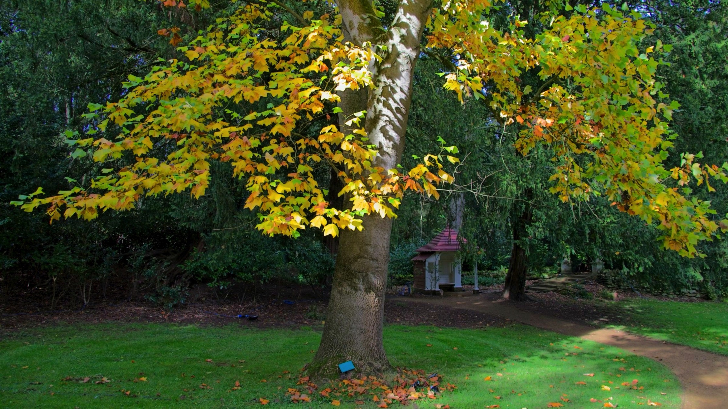 It was nice to catch up with friends at Old Warden yesterday morning for a coffee and a walk in the Swiss Garden. As you will see in the photographs, the sky was threatening but there was plenty of colour to balance that out and a few droplets of water don’t do any harm. The raindrops provided a lovely jewelled frame for a leaf from a favourite elderly acer in the garden which is not far from peak colour. The moorhens did not seem to mind the overcast damp conditions either. A little watery sunshine on the Swiss Cottage was a bonus. There is colour all through the garden including in the fernery. It was good to see lots of people out enjoying half-term although the majority seemed to be there for the aircraft collection leaving the garden to me. It was also good to see my friend Paul continue to make his steady recovery from serious illness and who can resist a photo of a semi-naked Westland Lysander, certainly not us.