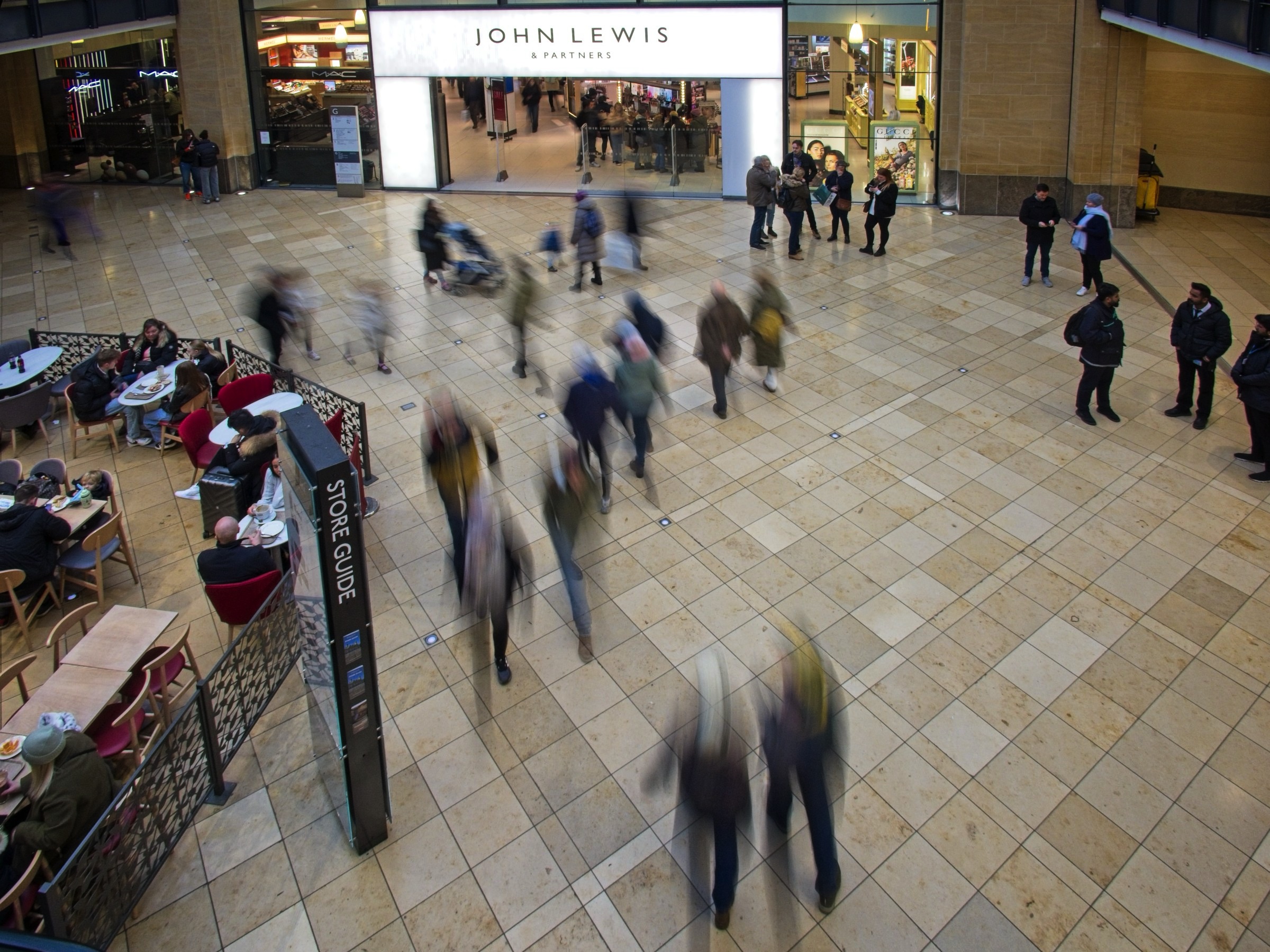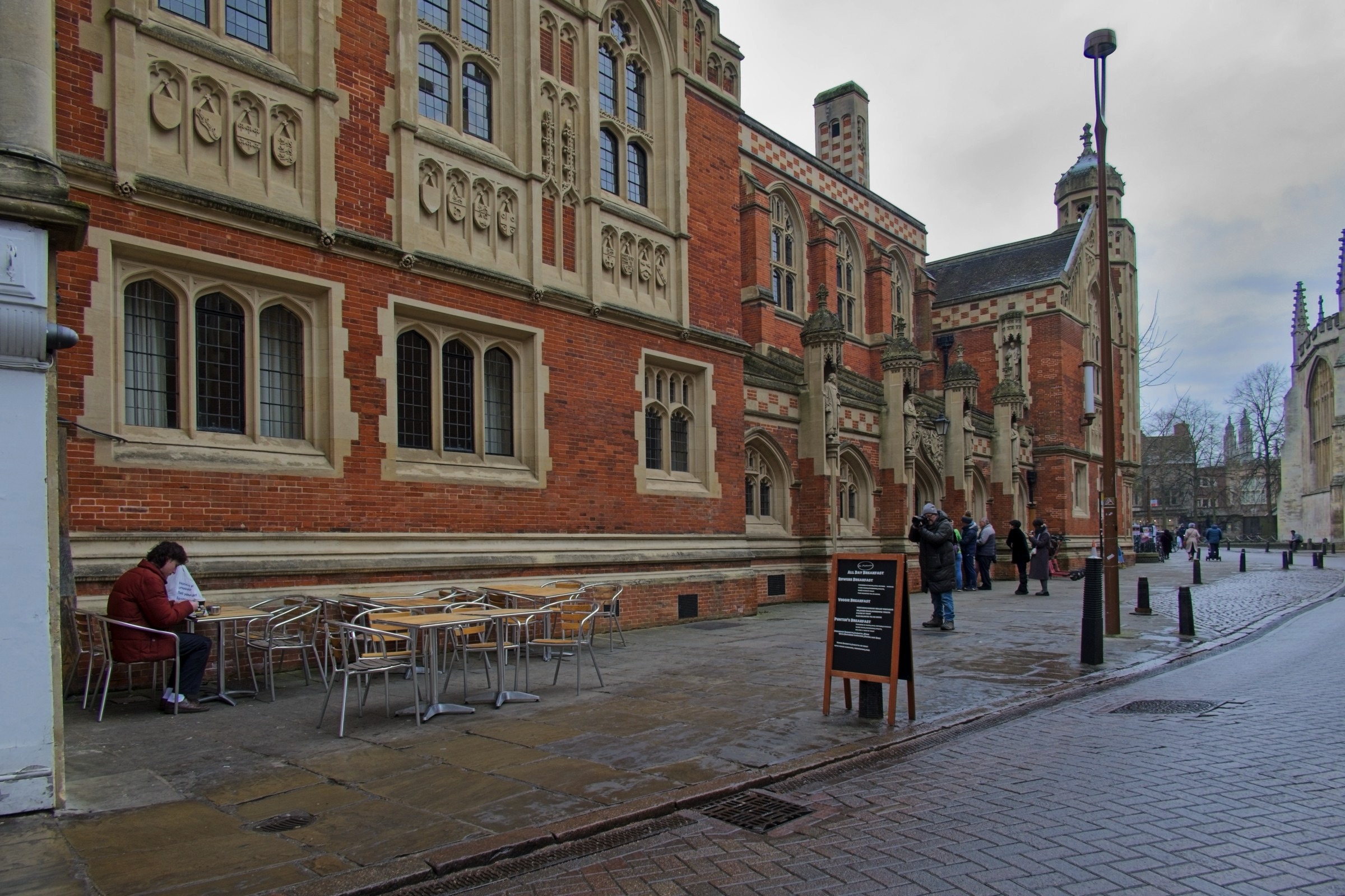 After the frost at Maddingley it was just cold and damp in the city. One of my favourite locations is in the Grand Arcade using slow shutter speeds to capture shopper movement. Occasionally I am lucky and find a focal point of people not moving as in the image below. Another photo magnet for me is doorways, not just in Cambridge, but we passed a couple worth a photo. There were not many tourists out and about with a pretty empty tour bus and a cold tour salesman being good indicators. Those tourists that were there, including us, were well wrapped up. The final shot shows Paul doing his street photo thing, taking a sad photo. The young man’s smoking addiction has him sitting in the cold to roll a cigarette rather than enjoying his coffee warm indoors. Ah well it takes all sorts.