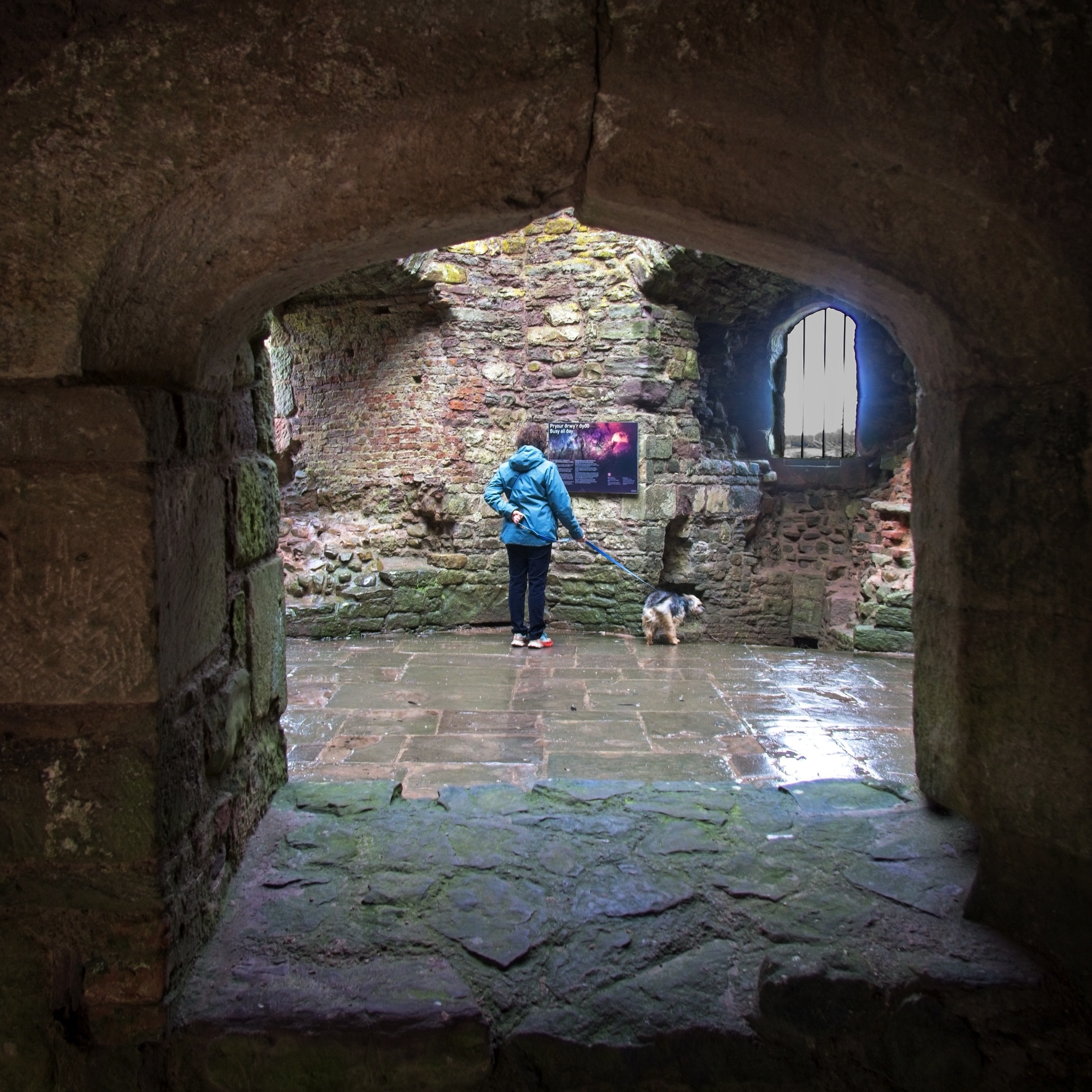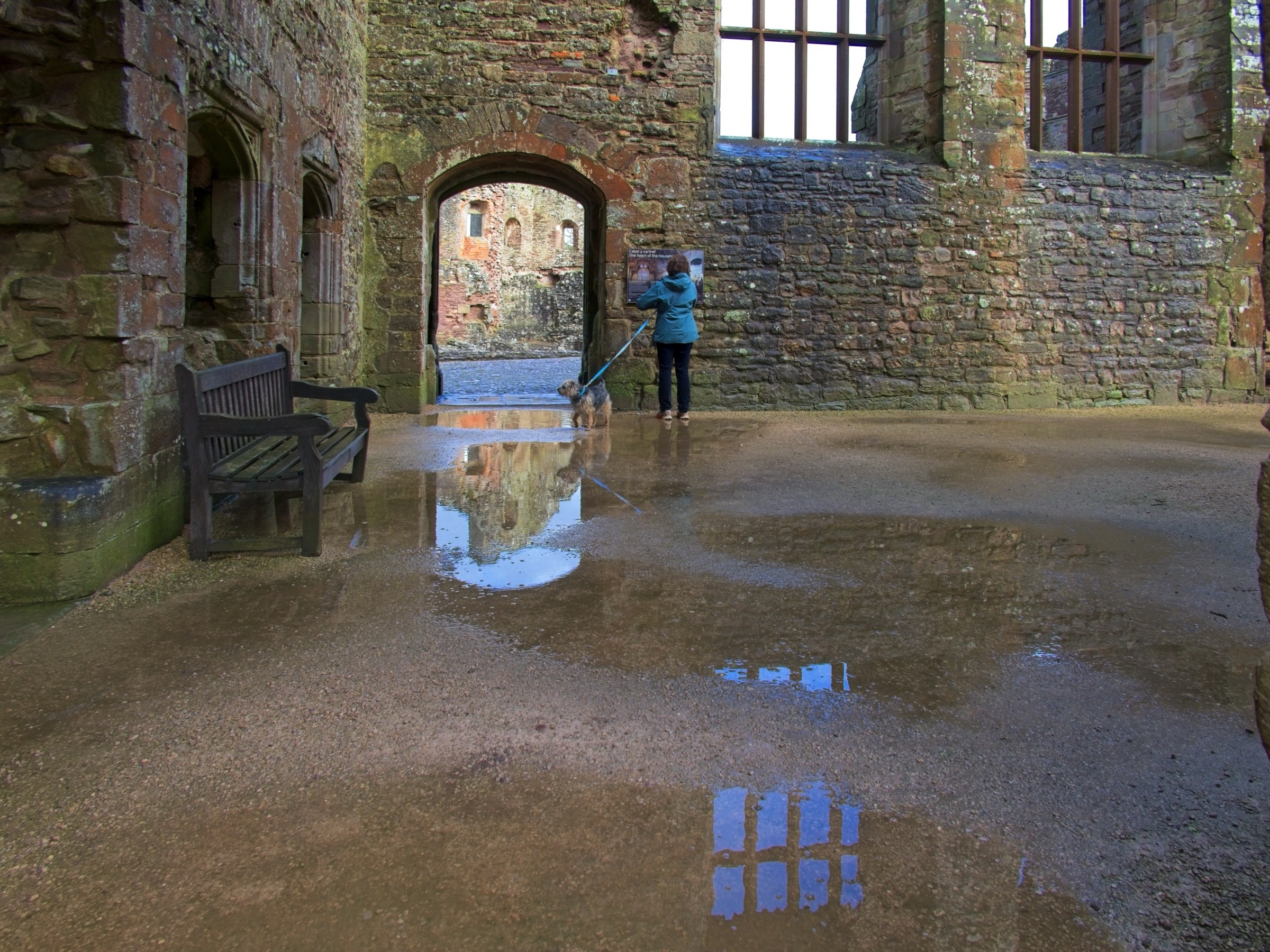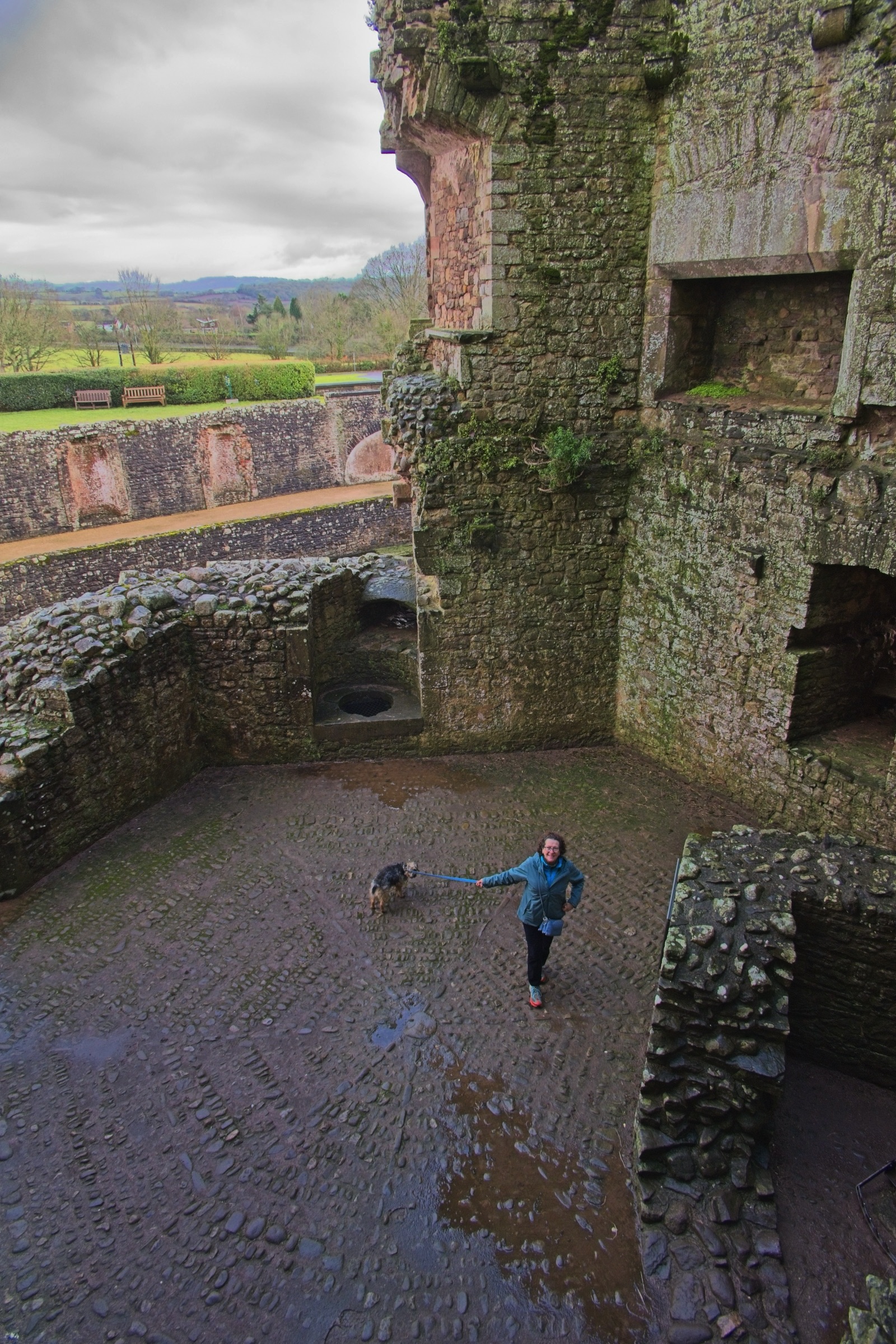 I spent a lovely visit to my friends Mike and Louise this week and, despite slightly stormy weather, we got out and about. On Tuesday we went to Raglan Castle, southwest of Monmouth. The castle is a labyrinth covering about five stories from deep basement to the top of towers. I love the Google information [Condition: Ruined], accurate but a little limited. The weather had rapidly moving showers and we seemed to dodge them all except in the car. The star of the set is Odo the dog and we were pleased that he was welcome. An impressive device was the drinks dispenser in one of the basements.