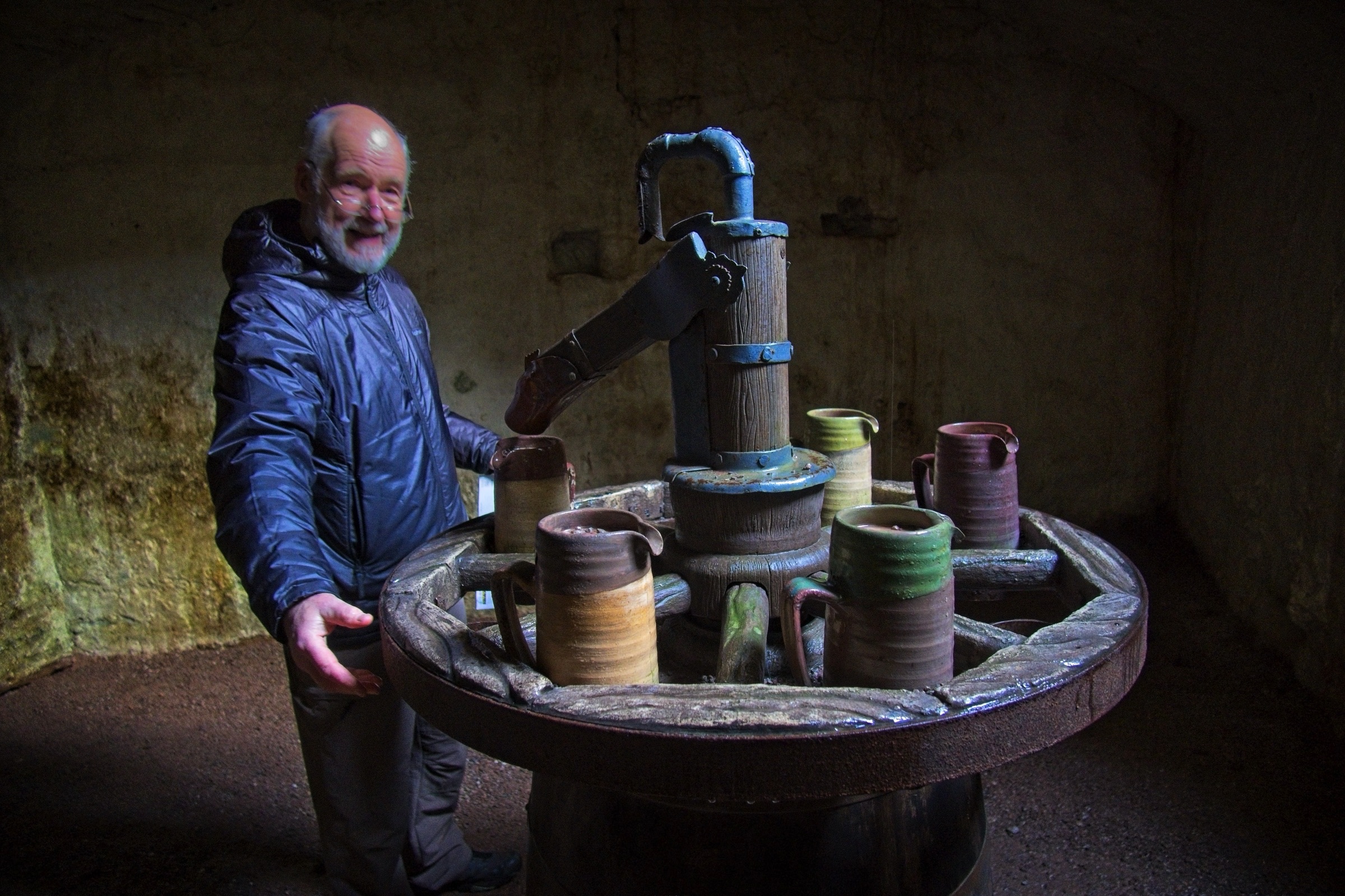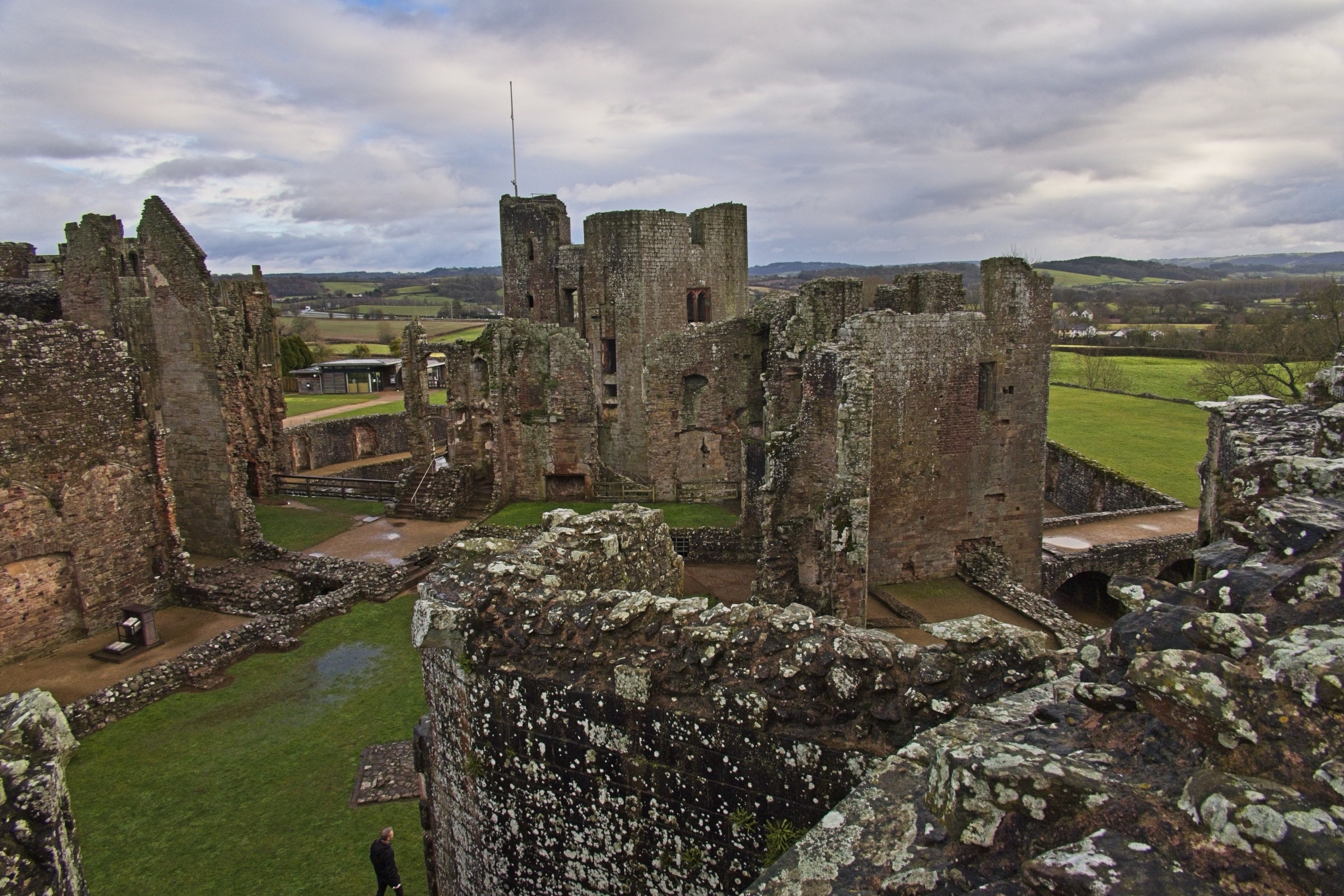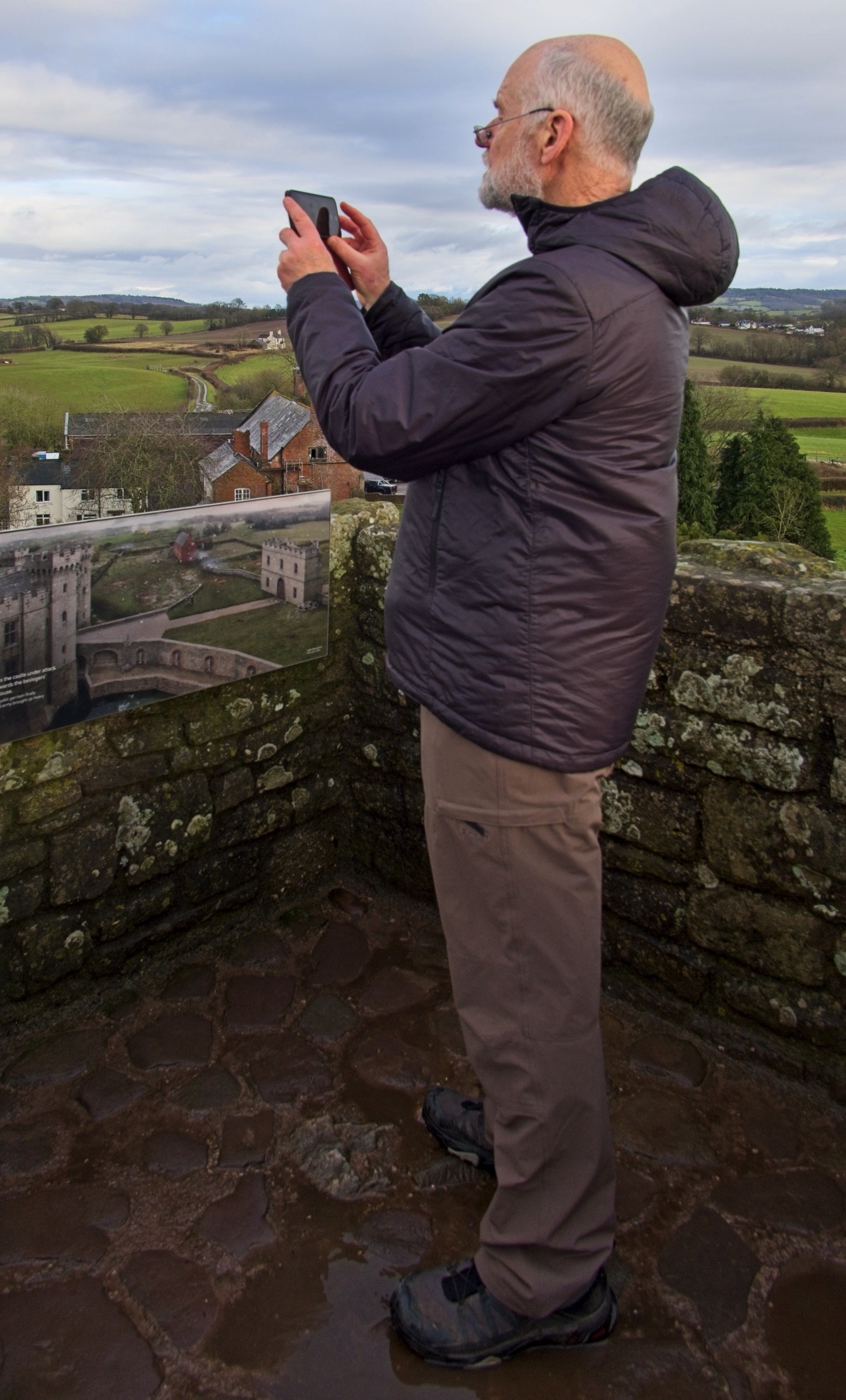 I spent a lovely visit to my friends Mike and Louise this week and, despite slightly stormy weather, we got out and about. On Tuesday we went to Raglan Castle, southwest of Monmouth. The castle is a labyrinth covering about five stories from deep basement to the top of towers. I love the Google information [Condition: Ruined], accurate but a little limited. The weather had rapidly moving showers and we seemed to dodge them all except in the car. The star of the set is Odo the dog and we were pleased that he was welcome. An impressive device was the drinks dispenser in one of the basements.