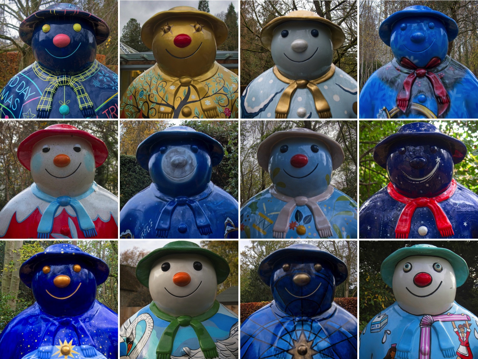 Wild in Art produce some interesting “sculptures” which find their way around the country helping organisations to raise money and after a while they are auctioned off, I guess, to fund the next subject. The snowmen have arrived at Anglesey Abbey and will be there until the new year. They were in Hitchin a few years ago in an urban environment, which was great, and they have now settled into the parkland at the National Trust site just north east of Cambridge. Here are a selection of pictures in this late autumn setting. A grey day midweek meant I had the site mainly to myself. There are twelve sculptures each with its own theme and by a range of artists.