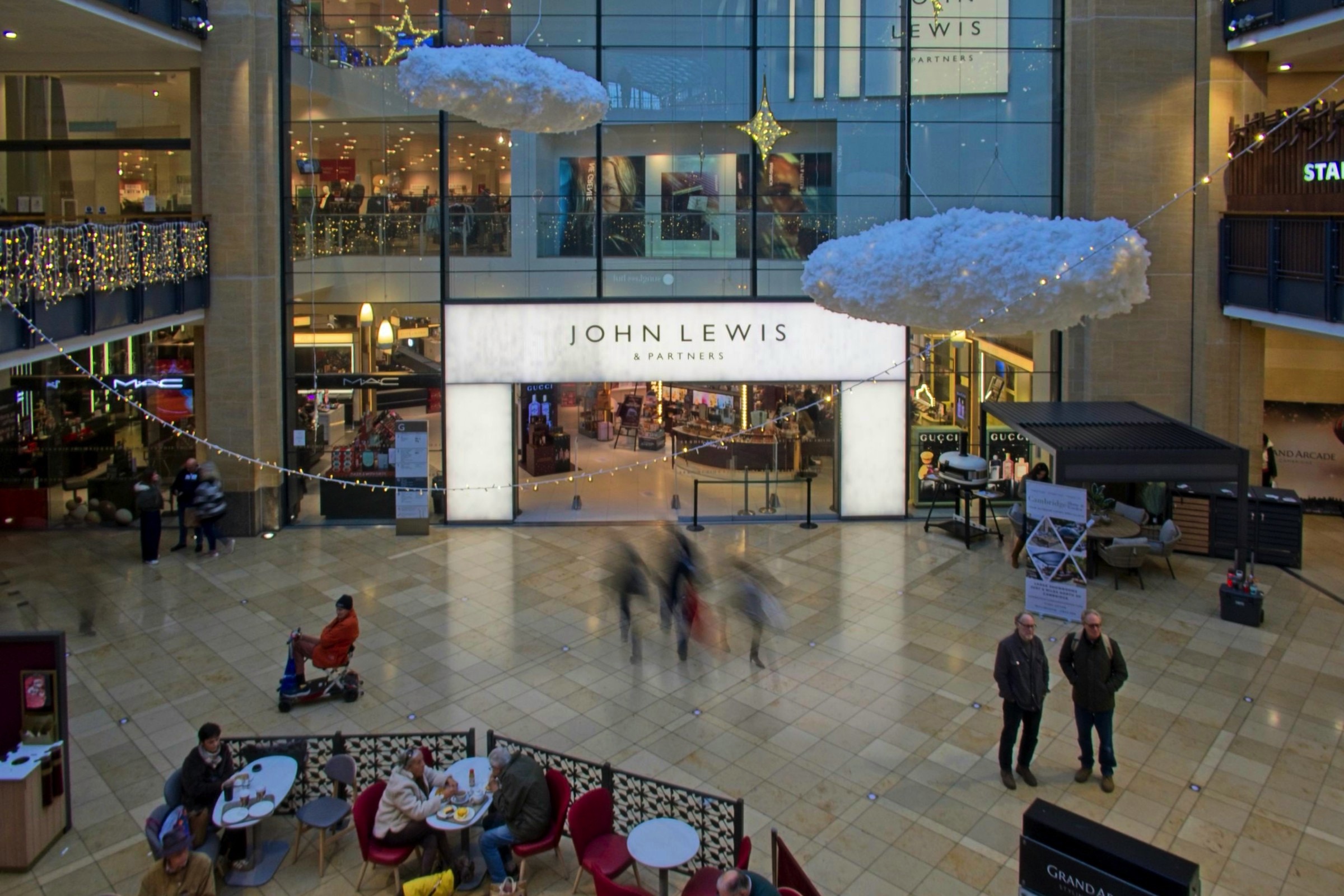 I am fairly sure that the North Pole is not in Lion Yard, Cambridge, but what do I know. Christmas can bend reality which is OK by me. I was in Cambridge on Thursday for a little shopping and there were a few Christmas shoppers but not as many as I have seen in some years. The decorations in Lion Yard/Grand Arcade are pretty much the same as last year, just a little enhanced with more lights and some clouds. Here are a few photos which I try to shoot at low shutter speeds to create motion in the people. Sometimes it works sometimes not. It was a bright afternoon with nice light in the area around the colleges making for a nice stroll.