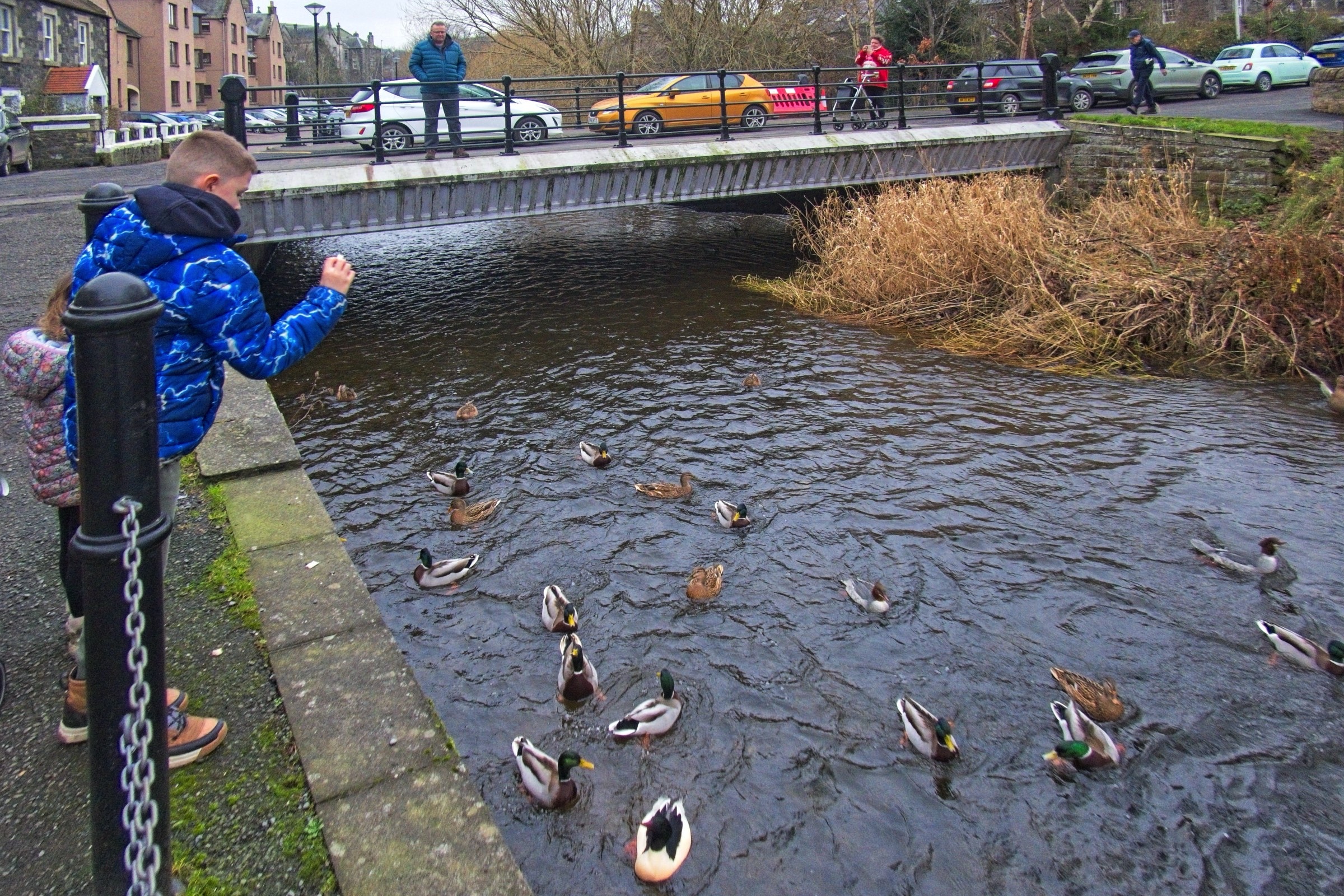 After a grey day in Queensferry in yesterday’s post there is more grey weather in Peebles, some indoor fun and a little sunshine in Penicuik. A highlight was Jack and the Beanstalk in the Empire Theatre. A brilliant pantomime, as usual. “Oh no it wasn’t”, “Oh yes it was”. It really was. Feeding the ducks in Peebles brought out a couple of interesting birds, a pair of goosanders, very nice. Anyway here are a few more photos from Bonnie Scotland.