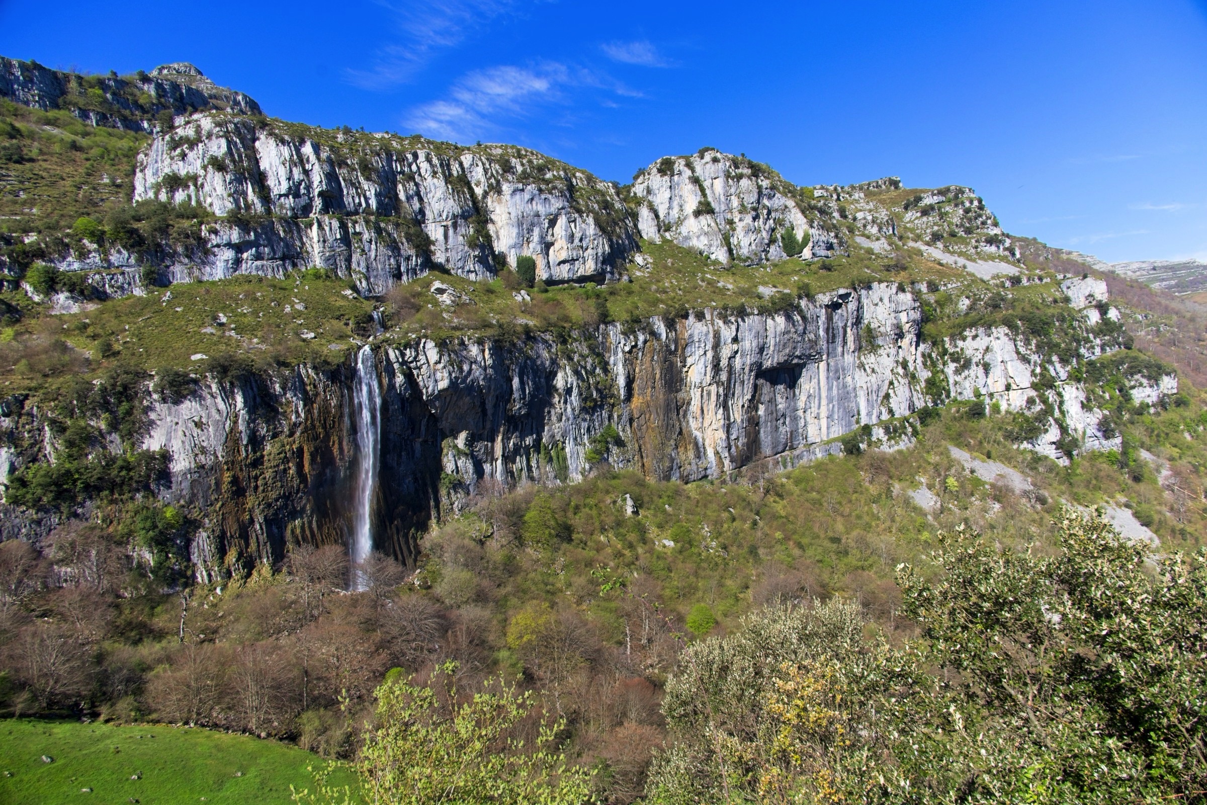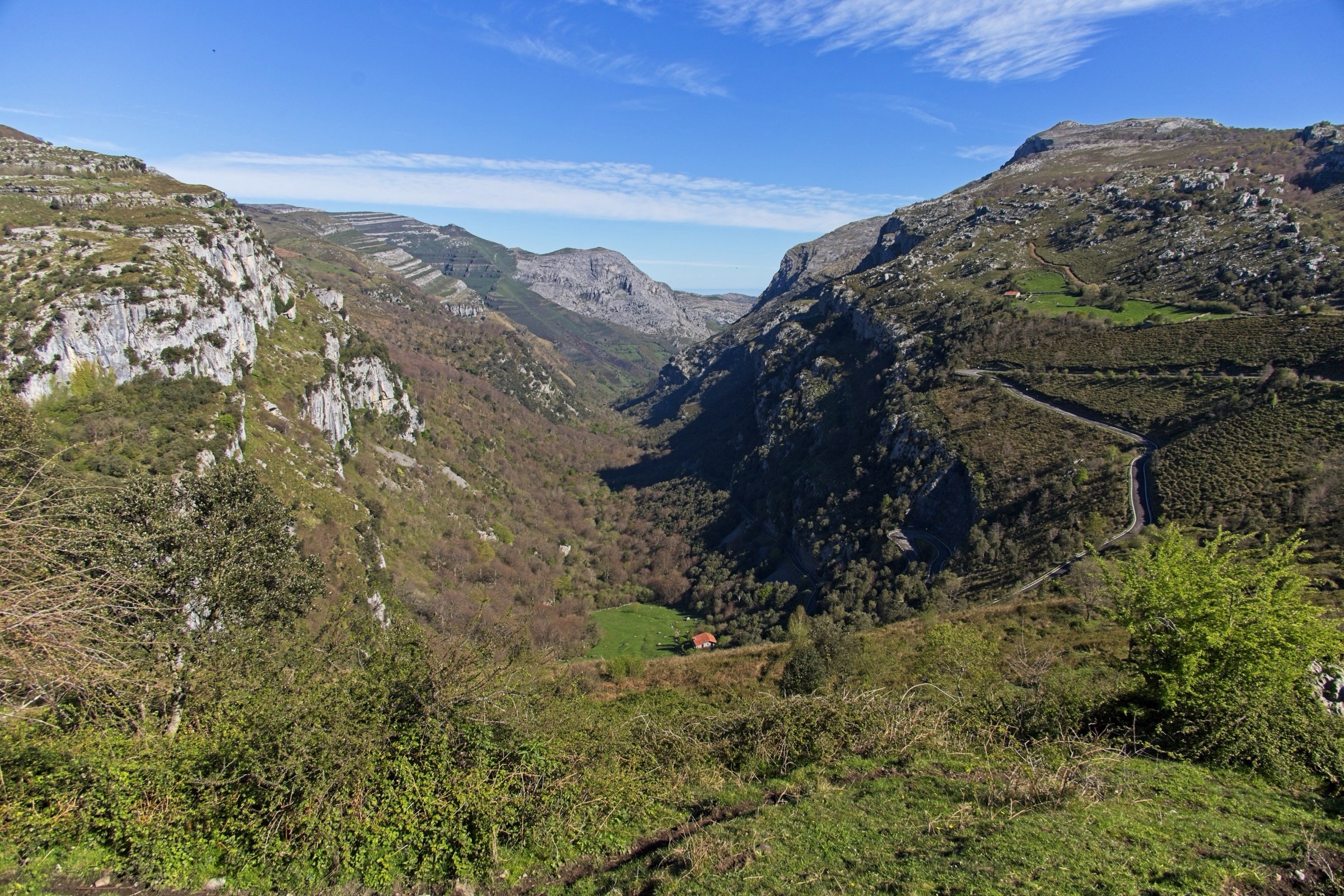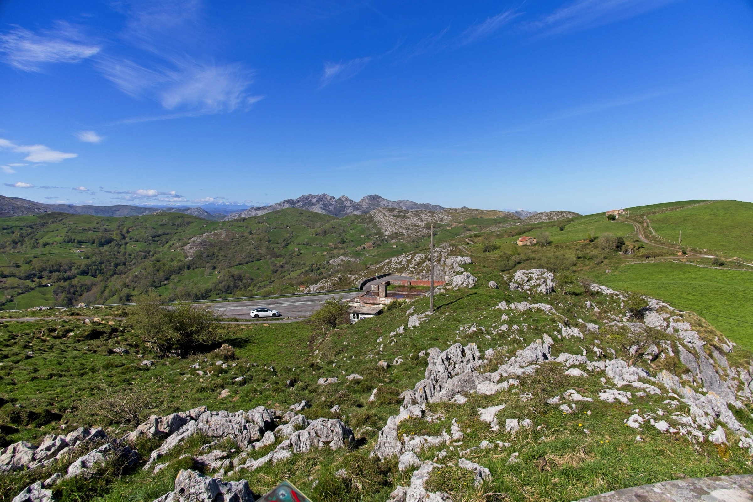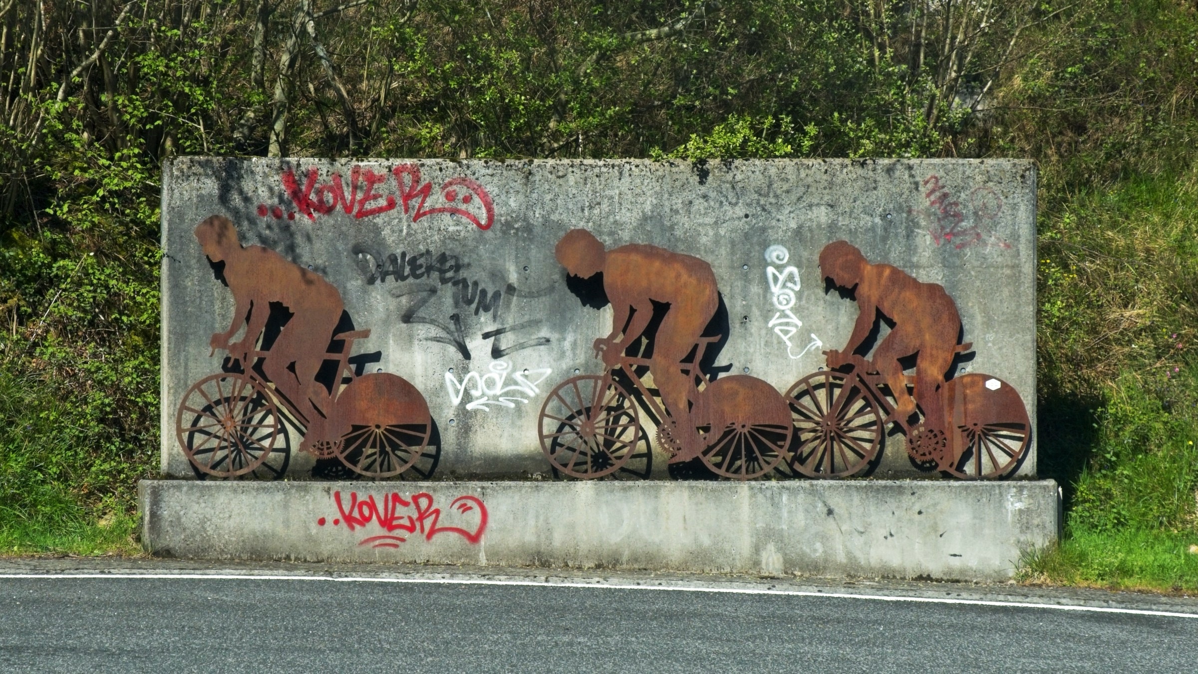 I spent the day flitting between Castille & Leon and Cantabria after heading into the mountains behind Bilbao, leaving Basque Country for now. The destination was in another region, Asturias, at Oviedo.The mountains that rise up are in places called Picos de Europa which is a national park. There are a series of mountain passes which define the border between the two regions and I chose one as a starting point for a run along the mountains to Oviedo. Although the road did get down to the ocean in places. The mountain scenery is awesome but you may have to take my word for it. The problem is most of the time there is almost nothing familiar to help give scale. The Portillo de la Sia is about the same height as Ben Nevis and it is quite a drive up. Similarly the amazing Collado del Ason is impossible to grasp from a photo as it is about 1000 ft deep and the waterfall in the picture I’ve included is a drop of about 200 ft. There are other sights along the way which are more photogenic and I have started with one of those. This is the Basilica of Santa María la Real de Covadonga in the Picos de Europa national park. Another interesting building is the Palace of Sobrellano just outside Santander. The mountains tend to encourage roads that follow valleys so wend back and forth from the mountains to the sea. So now the mountains starting at the Portillo, followed by the Collado and then another the Mirador de Alisas with its view down to Santander. I note that in places I saw more bicycles than cars. Now in Asturias I have encountered strange mounted wooden structure. I have not investigated them so no explanation, just a couple of snaps.