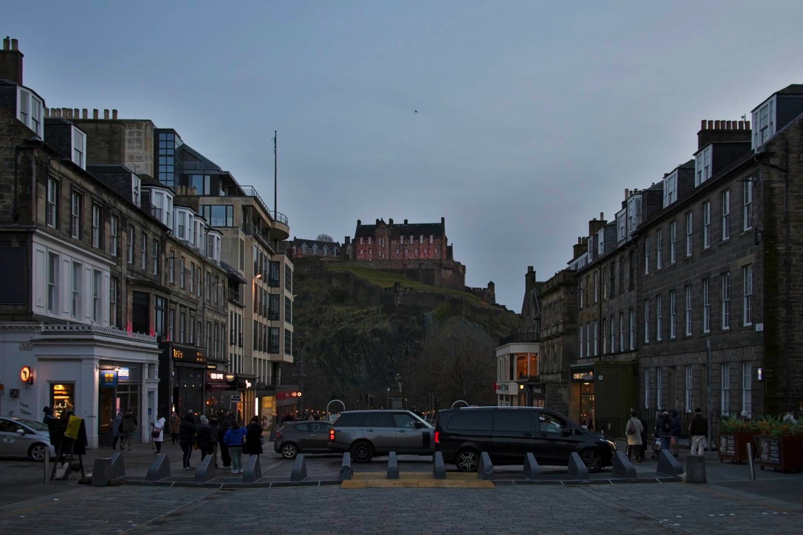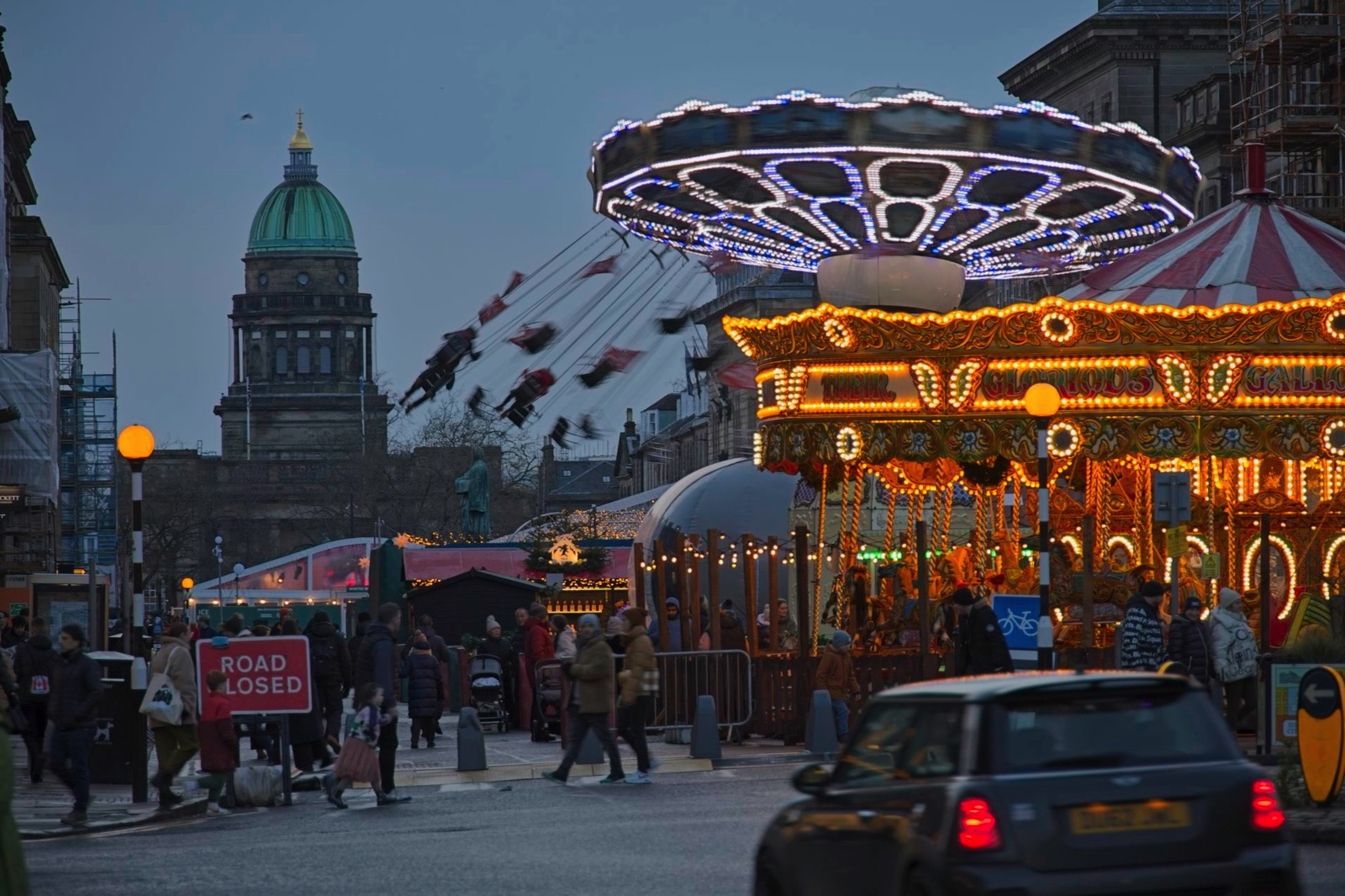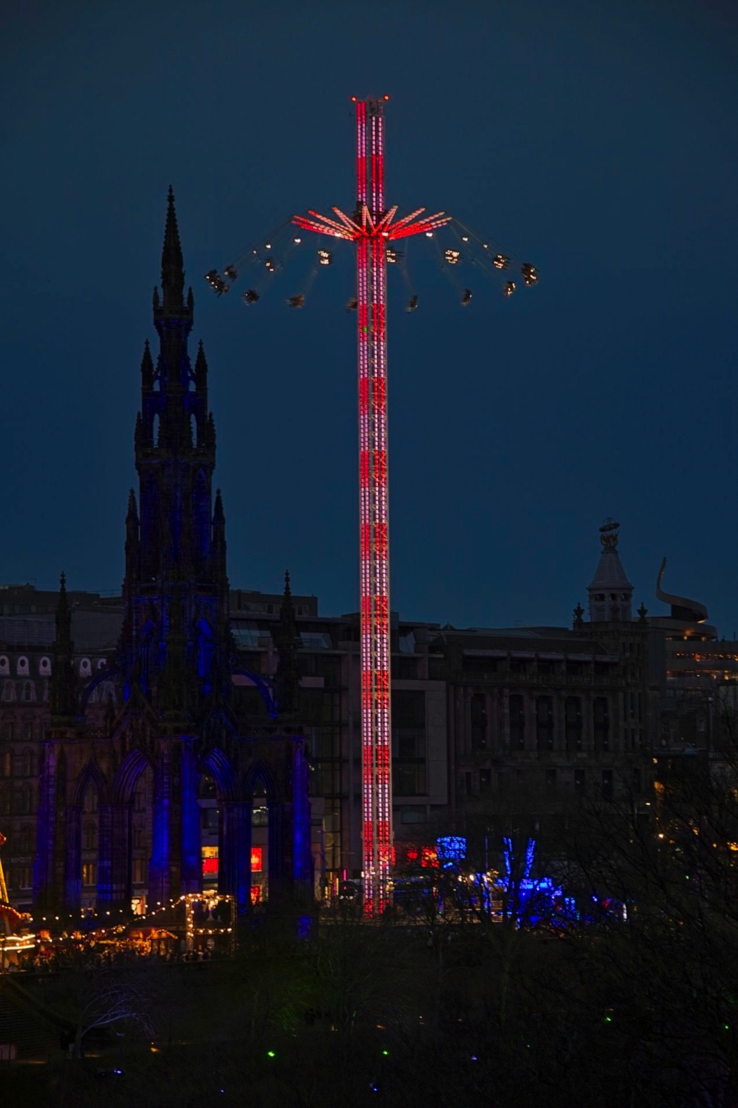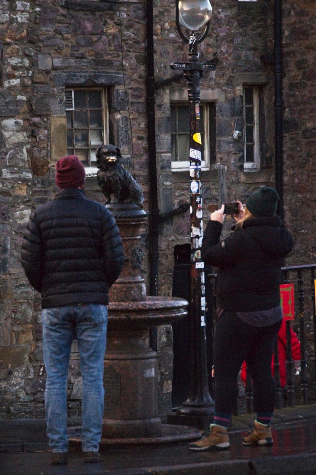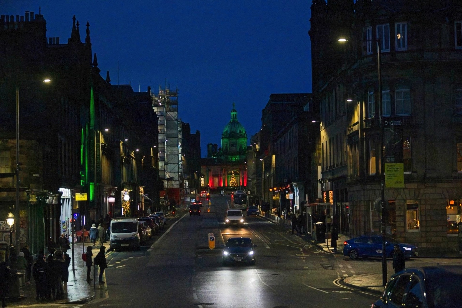 It was a nice clear winter day yesterday and Anne and I met up with cousin Alison and Alan for a stroll around the city centre to check out the lights and attractions. The city was pretty quiet as the vast majority of the shops remained closed for Boxing Day. We walked from George Square, past our old home, down to Princes Street and George Street, returning up the Mound as the light faded and, indeed, the temperature dropped. Here are some snaps from our stroll. The headline pictures is from Castle Wynd looking over the Mound towards Princes Street. Starting below you can follow our walk starting with look up to where we grew up on the top floor above the Doctors pub. Then past Greyfriars Bobby with his now abused nose, and along Bauermeister Strasse (George 4 Bridge). The bookshops are now restaurants! A quick look at the moon over the North British hotel and then down the mound past the National Gallery and on to Princes Street into the land of the thrill seekers. Along George Street, the Dome pub was well lit up and there were more thrill rides. Back to Princes Street we passed the gold post box for Sir Chris Hoy and then headed back up the mound as the light got just about perfect for twilight photos. The final shot is looking along George 4 Bridge to the Bank of Scotland at the top of the Mound. What a nice walk it was.