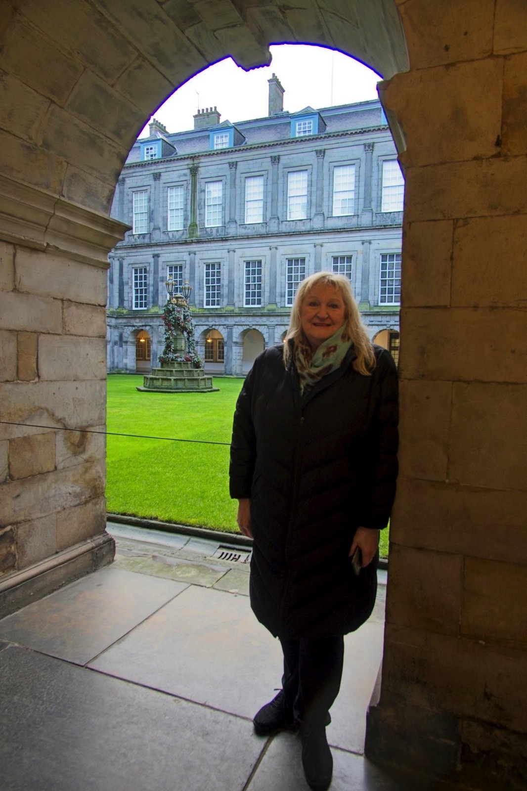 It was a nice way to spend this Christmas eve morning with a wander around Holyrood Palace. The public area has some cracking rooms and a lot of portraits of Kings and Queens all looking a bit grumpy! Anne and I went down and dodged the frequent heavy showers but you cannot avoid the strong winds. It is the first time I have been in the palace and it is certainly worth the visit. I bestowed an honour on Anne but it is sadly temporary. :-) We took a leisurely stroll around the house and then the extensive garden by the ruins of the abbey under Arthur’s Seat and the Salisbury Crags, almost dry.