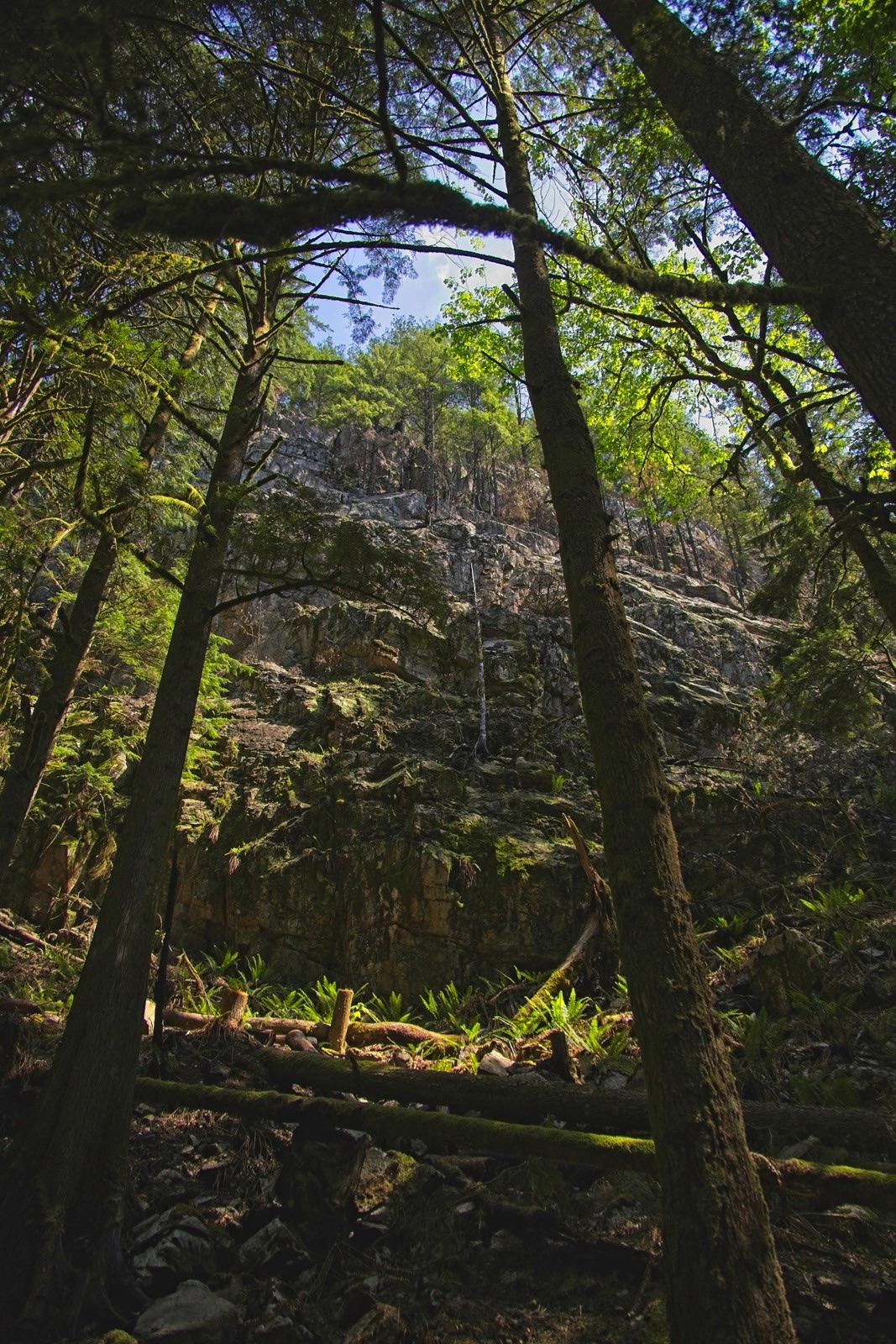 Across the middle of the park it was pretty steep and with very large cliffs above us. At one point it was not obvious where the trail went so Martin acted as scout. He was right.