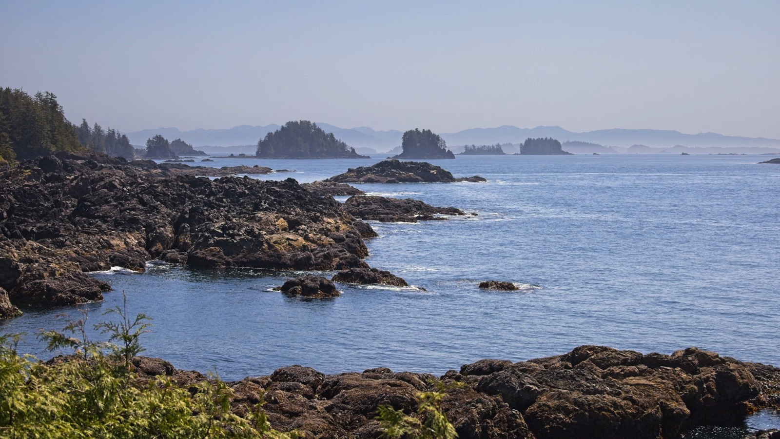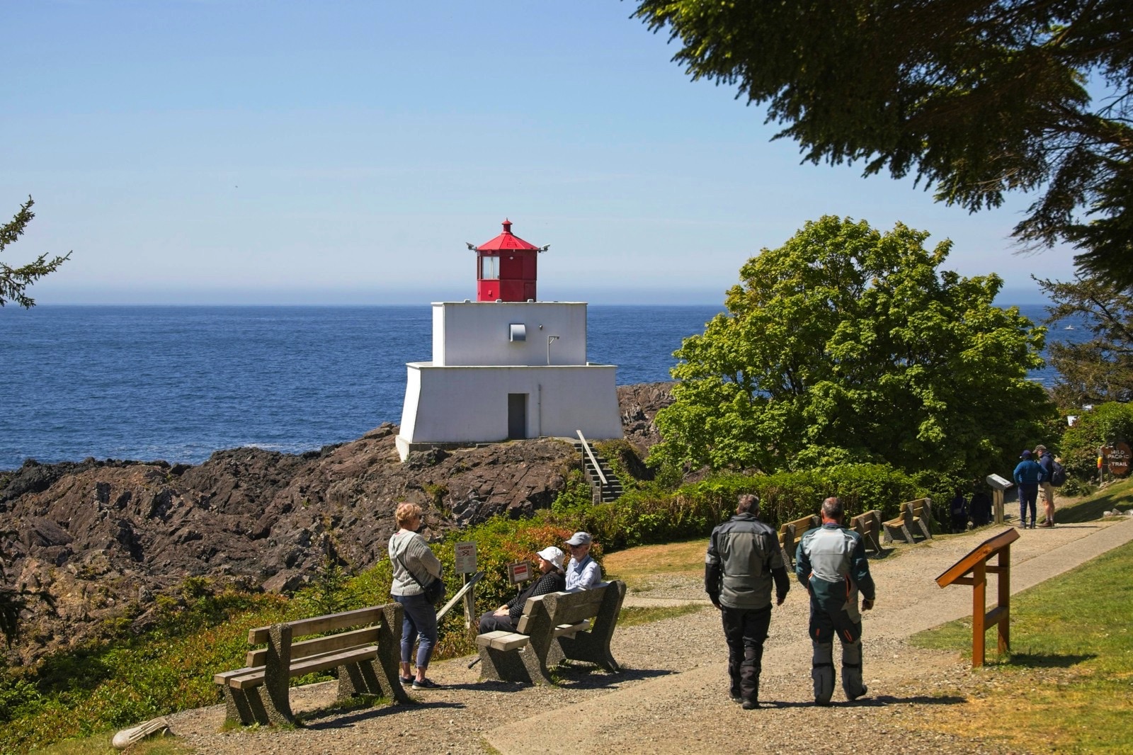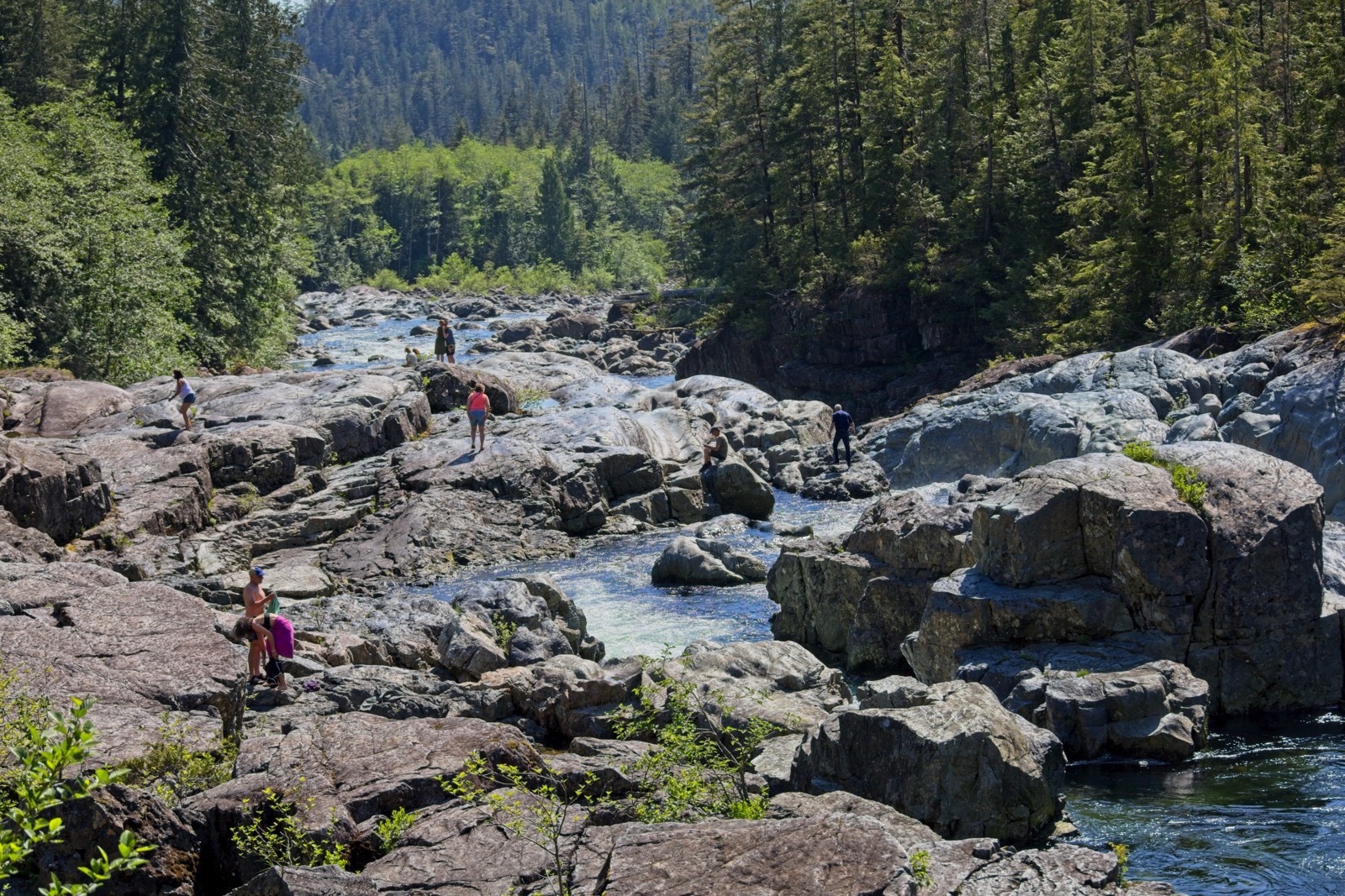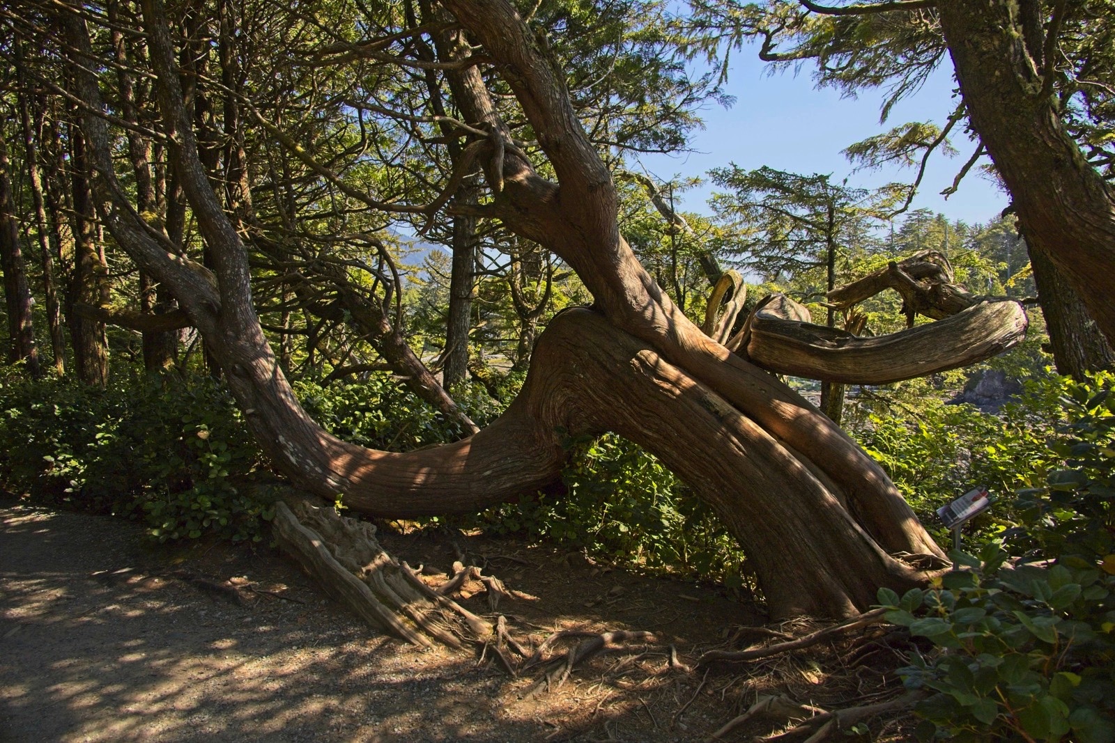 It was time to enjoy a glimpse of the Pacific Rim on Vancouver Island’s western shore with the next landfall being in the Kuril Islands just north of Japan. It is a rugged coast as you can see above, around Amphritite point and it's little lighthouse, but is also blessed with impressive beaches, such as Wickaninnish and Long Beach with the latter being busier with some surfers and picnickers. At the top of this peninsula is the small town of Tofino, a tourist mecca and, although not busy, it was doing pretty well. A good place to find a nice place for a snack lunch as I did. Seaplanes also seemed popular. I’ve added a few more pictures from Amphritite point where the well maintained loop trail was popular with plenty of opportunities to enjoy the coastal scenery and some crooked trees and beautiful plants. A nice way to spend an hour on a temperate day in the sunshine. At Wickaninnish beach there was a gentle mist blowing in of the ocean creating an odd softness close to the ground while at Long Beach the mist had somewhat subsided as the sea had become more active attracting some surfers. These beaches are in the Pacific Rim National Park and a ranger was patrolling Long Beach on an e-bike. An odd sight on a beach. Both beaches are very wide and only gently shelving but most people set up camp in amongst the driftwood. At Tofino there was a bit of coming and going of float planes which were offering sightseeing tours although with only a few takers. Tofino is a bit twee with themed inns, cafés, shops and the like as is typical of a summer resort. On the pier by the DHC Beaver float plane someone had left an unfinished can of drink. A crow spotted it and I watched it knock it over and take a drink. I think it was beer! The road to and from Tofino from Port Alberni is impressive, winding its way between mountains along rivers and lakes but, as is often the case, there are almost no places to stop at the most interesting places such as lake shores as they are covered in private houses preventing good viewpoints. I have included a grab from my in-car time-lapse camera which gives a flavour of what is seen through the windscreen. There are a couple of places to stop at Kennedy Lake and on the Kennedy River in the Provincial Park so I’ll finish today with snaps from there.