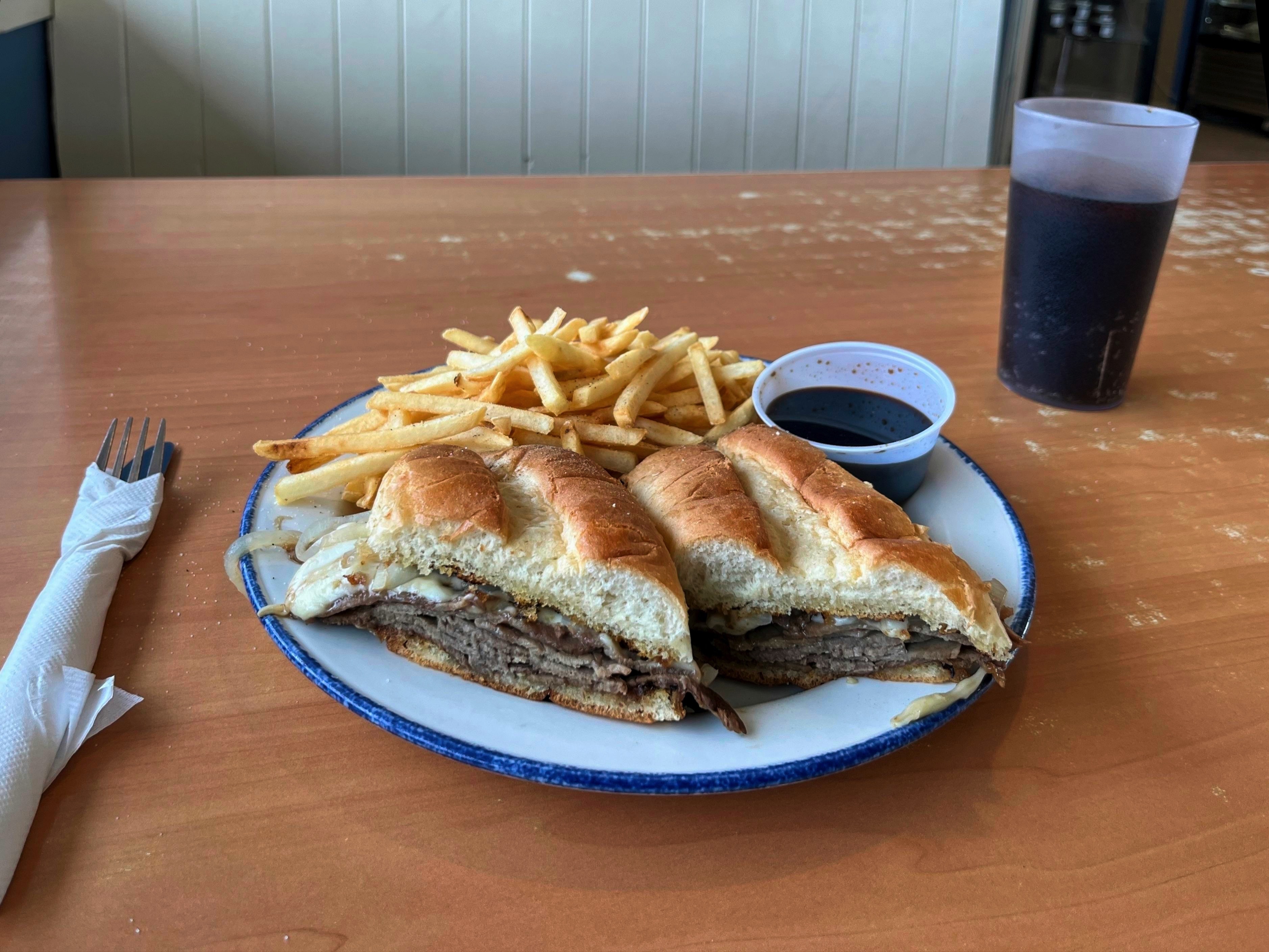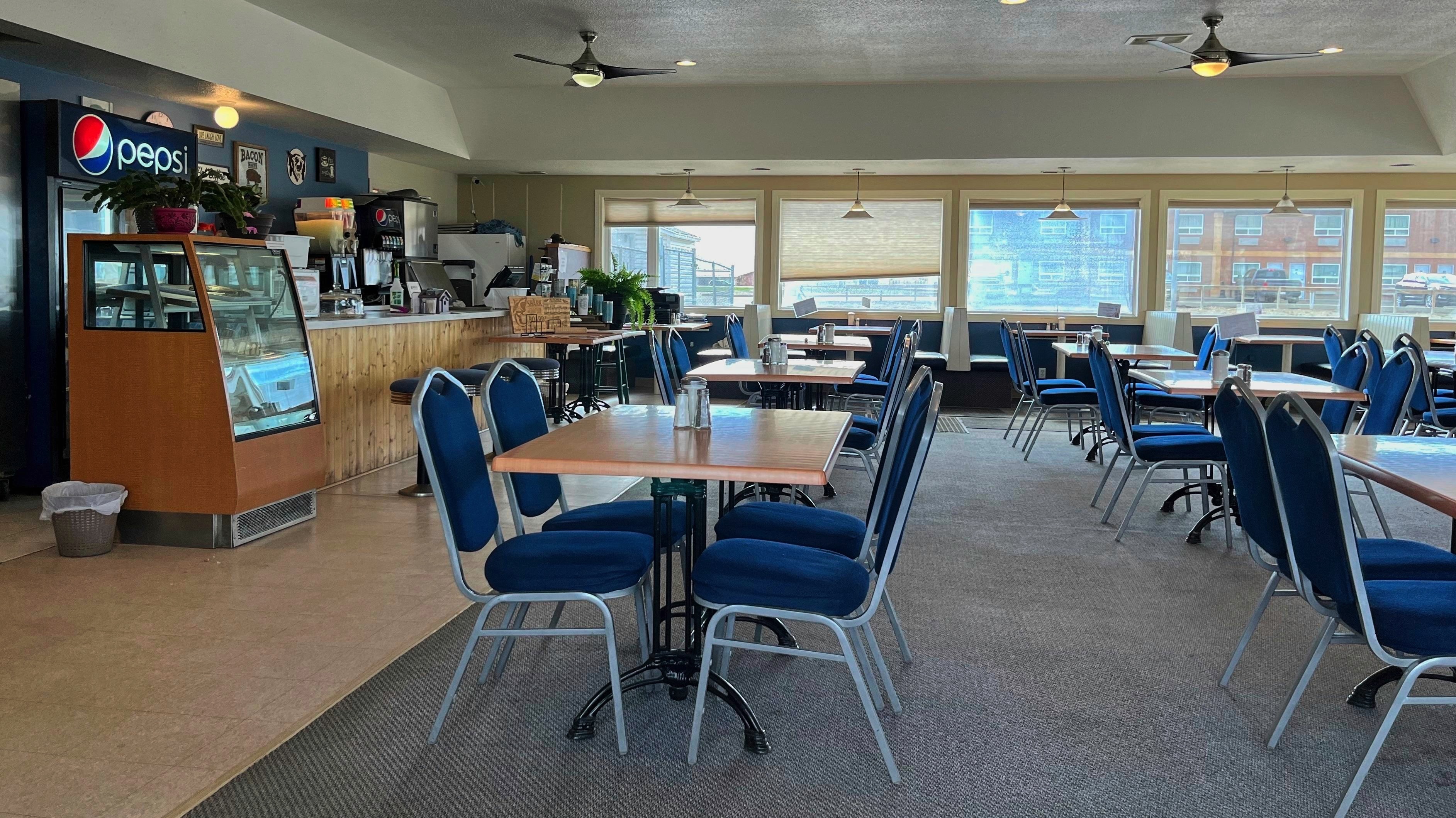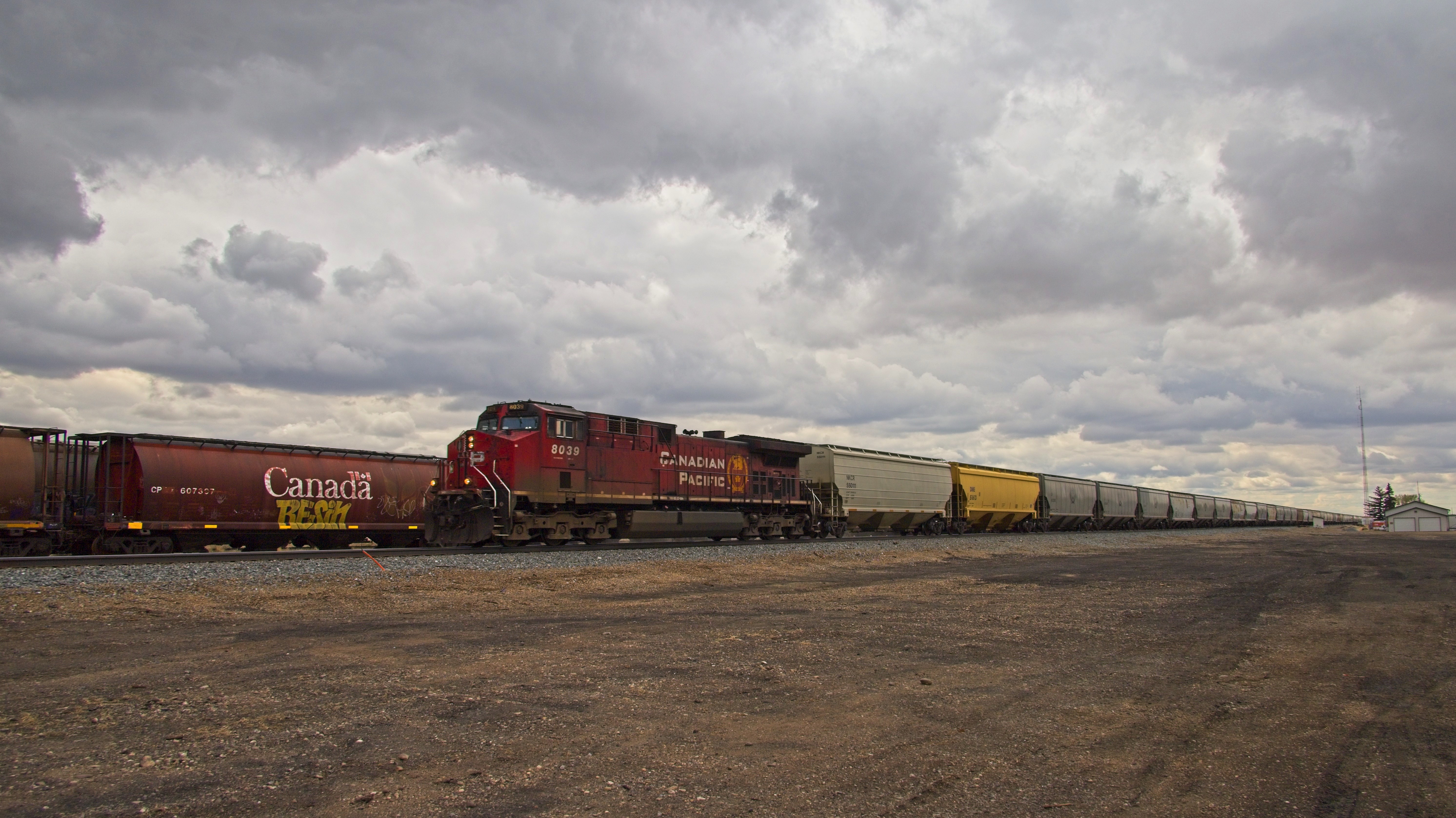 After a comfortable night with a reasonable amount of sleep I made an early start to visit the Dinosaur Provincial Park, about 65km East of Bassano. Empty roads again and not a hill in sight. The park is in Alberta’s badlands which is an area where the prairie has been eroded away exposing the many layers of ancient sediment, typically where fossile are easily found, as is the case here. The headline picture is from the Badlands Trail and I walked each of the trails in the park until an early afternoon lunch in the park cafe. I have tried to pick a small selection that convey the landscape including images with people for scale. A feature of the park are small hoodoos, columns of sandstone. There are a couple of dinosaur fossils in neat display buildings on the Fossil Hunter Trail. The Cottonwoods by the Red River are still recovering from a fire here in 1989! An overlook at the park entrance gives a great introduction to these badlands. On the roads to and from the park you pass many oil wells and large fields both for wheat and for beef cattle, some of whom caused me to stop on the beautifully named Short Cut Road. At Bassano the evidence of the wheat trade is evident on the Canadian Pacific railroad. The mule deer just came wandering out of the slightly rundown tiny town of Bassano and patiently waited for a freight train to trundle by. The eating options in Bassano are somewhat limited with a choice of walking to the diner at the Esso Station or driving to the farthest end of town to the other option. I chose to walk across from the hotel. The diner was not posh but the waitress was very nice, service quick, reasonably priced and the French Dip and fries was well cooked and tasty.