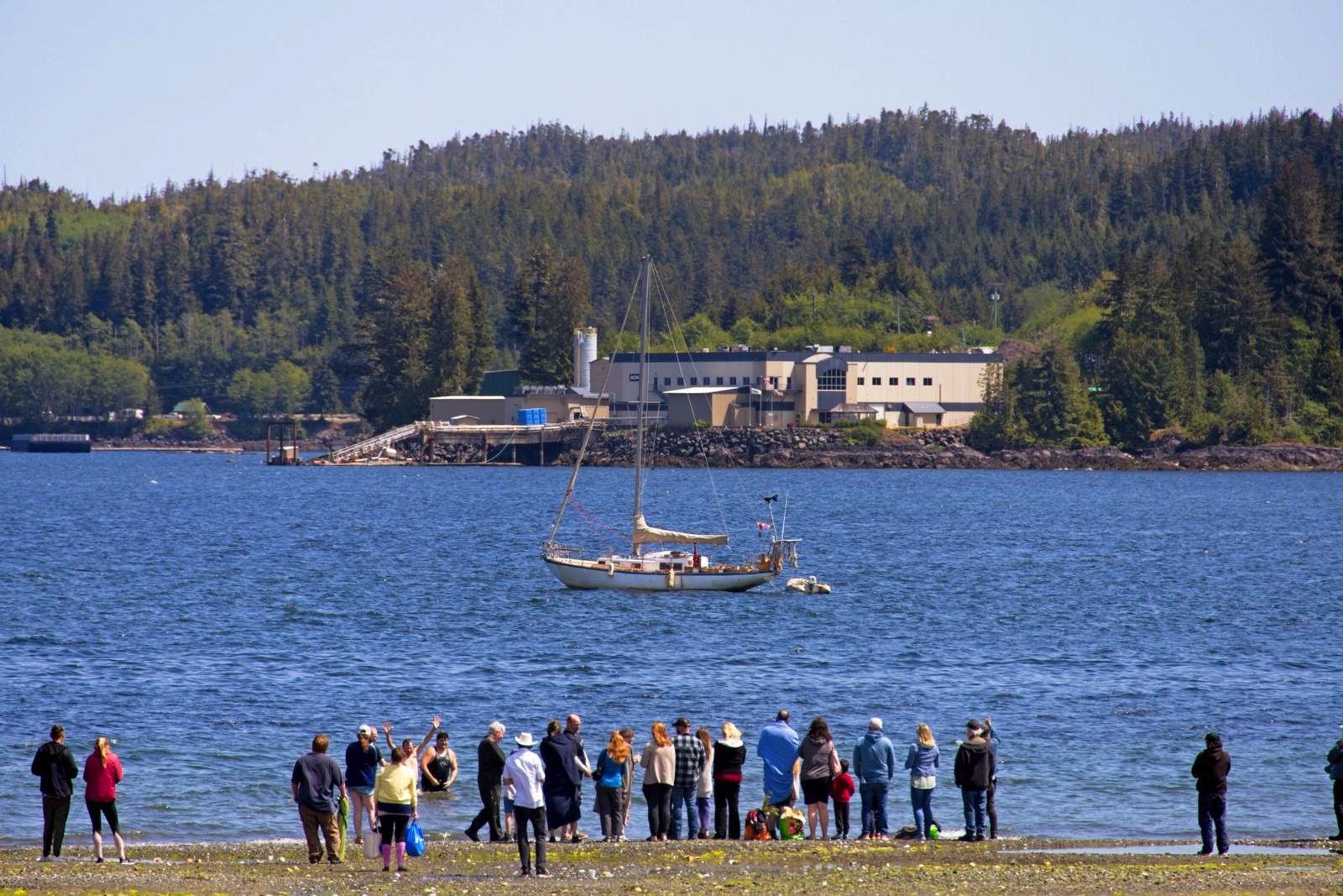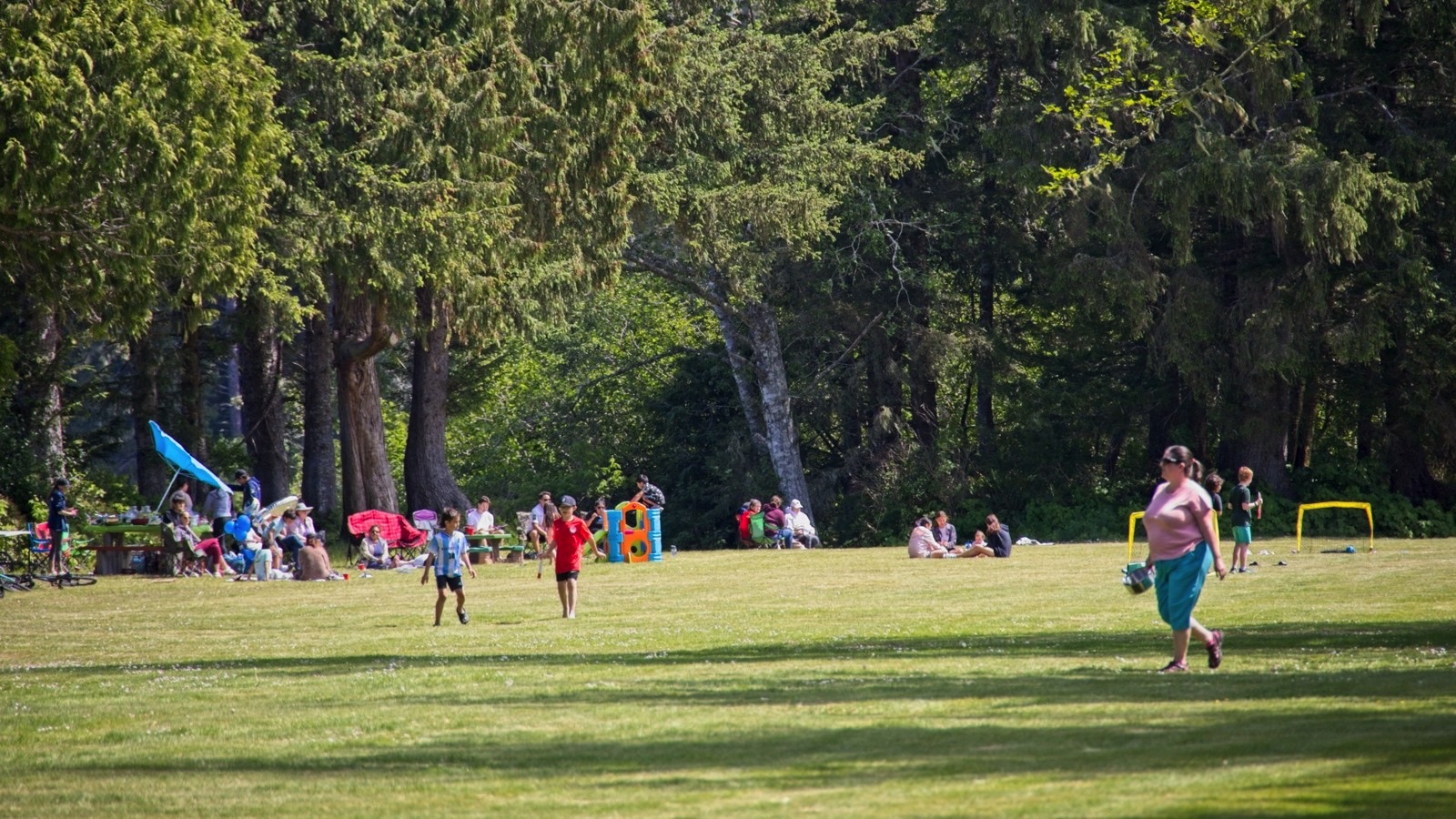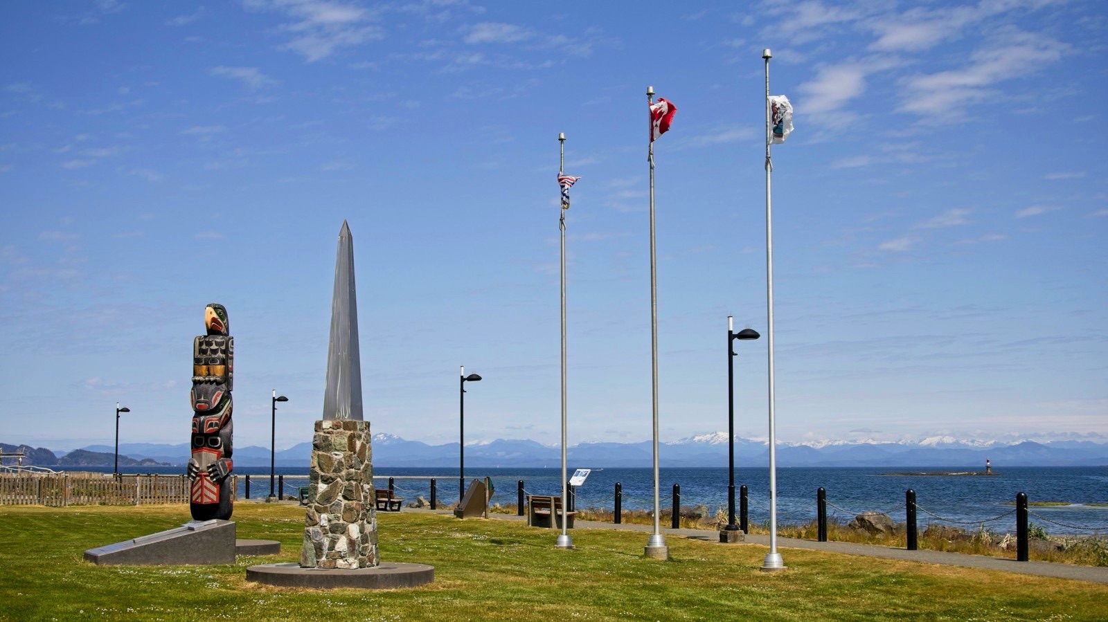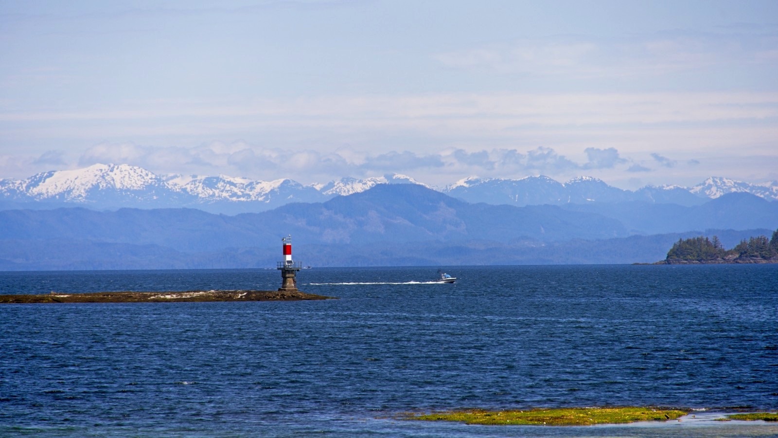 Today has taken me as far north as I will go on Vancouver Island. Apart from a few backroads this is as far as the highway goes, finishing at Carrot Park where the story is it took a very long time from promise to delivery to provide a highway to Port Hardy, BC-19. This is where the ferries go to northern British Columbia but sadly not within my schedule. The headline picture is at Bear Cove in Port Hardy. There is also a pretty cool war memorial which includes a totem recognising the first nation volunteers from this area who fought in WW2. Another totem was looking a bit grumpy which can be explained by the power outage from 7am to, in the end, 5:55pm for maintenance. It meant Port Hardy was like a ghost town with nothing open. In fact there were two places there were people. First there were those being baptised! It is Sunday after all. By far the biggest group were at the scenic Storey Park enjoying picnics and games. A raven was having a little less fun being harried by crows. It is nice to see the two together helping recognise their size difference. The mountains on the mainland coastal range are a constant, including at stops along this very scenic highway. On the way up from Campbell River I took a punt and headed off to the coast at Sayward and its port of Kelsey Bay. Big logging country. The village of Sayward was well maintained but a little sad. The small shopping mall was empty and the hotel and bar had suffered a similar fate. Remote communities are a challenge the world over. I mentioned the highway, BC-19, and it was a joy to drive. Almost no traffic, beautiful surface and views at every turn with cruise control on and favourite music playing on CarPlay, not a bad way to pass a couple of hundred kilometres. I finished my day, with still no power, at the little town of Port McNeill, jumping off point to a couple of the islands in the Broughton archipelago. My small motel is just above the harbour. No super-yachts here, Along the ferry terminal fence there is a delightful art installation, Stream of Dreams, where painted salmon are on the chainlink fence creating a wonderful shadow pattern in the afternoon light. Someone thought about this. As I finished my walkabout a ferry headed off to Alert Bay, one of the Islands, with a handful of vehicles on board. After the long power outage there were questions asked about whether anywhere would be open to eat and gladly Gus’s Pub did their bit and it quickly filled up with grateful diners and drinkers, most of whom seemed to be locals.