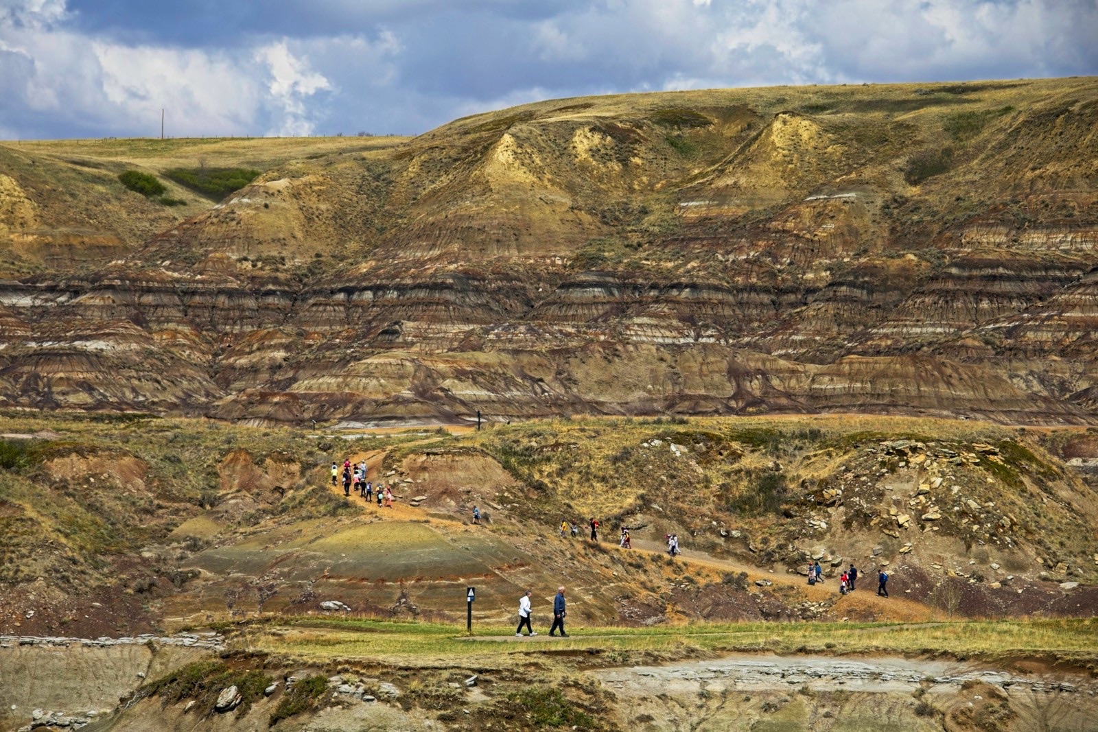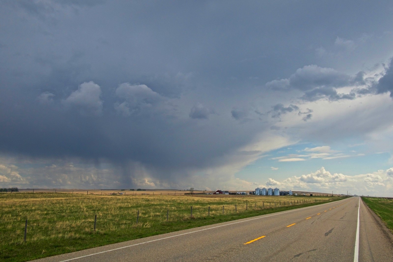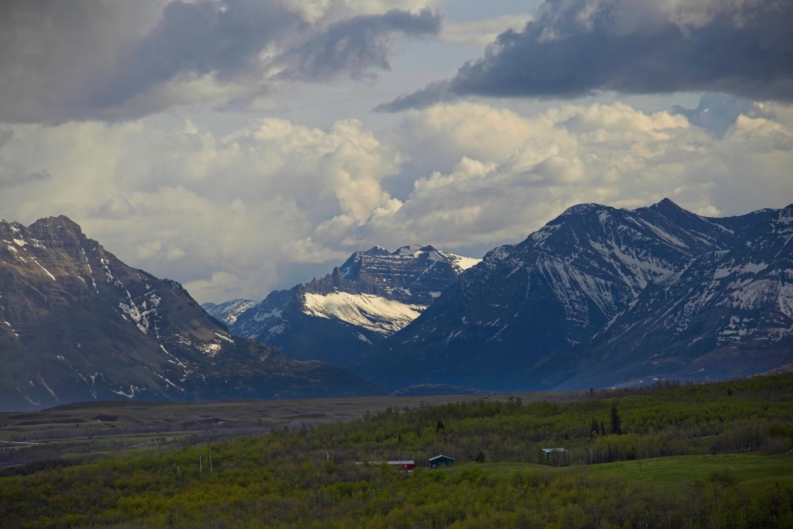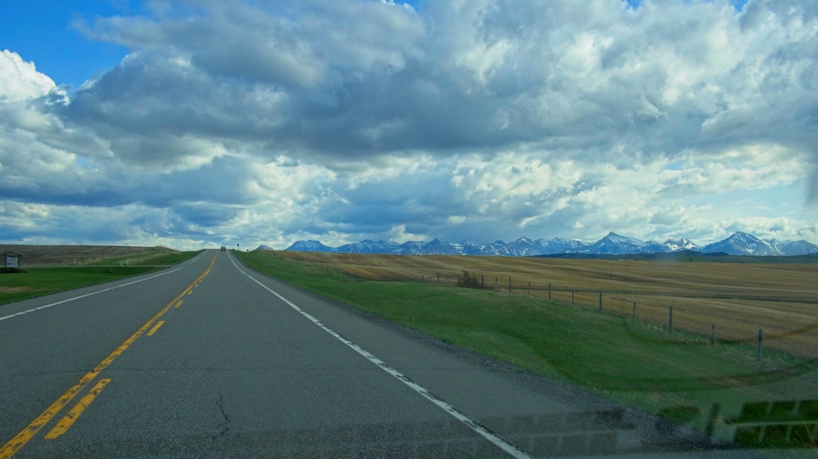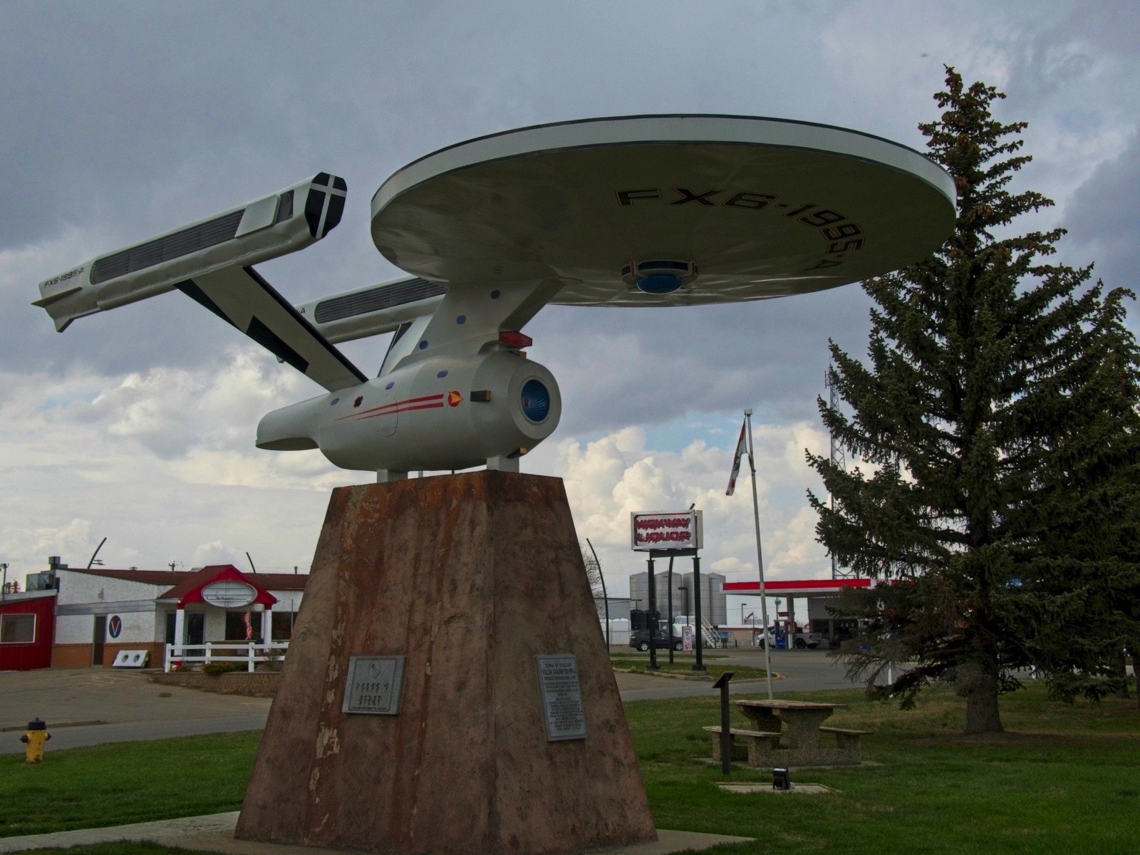 When I plan a trip I start with a list of must visit destinations in the general area and try to fit them into a workable itinerary but there are always days that are tricky. My original plan would have had today just be a long drive, over 600 km to get from Edmonton to Waterton Lakes but the Royal Tyrrell Museum in Drumheller threw a spanner in the works. My plan was to visit there on Monday on my way to Edmonton but they are closed on a Monday so the result was a bit of a detour and 1 1/2 hours in Drumheller resulting in 675 km and a 10 hour day. Fortunately the roads are empty and the truck is comfortable. A decent, if expensive, steak and a beer awaited me here as a fine restorative. So to my post. More dinosaurs in a spectacular museum, sharing the visit with about 100 school children, who were not a problem. Alberta has one of the most varied collections of fossils on earth and the Drumheller area and the perviously visited Provincial Park have contributed a lot to the museum and paleantology as a science. I will just let you enjoy a selection of images from the museum which I hope conveys what a wonderful facility this is, from the entrance diorama, via “be afraid. be very afraid…” to the beautifully presented galleries, following the geologic time stages. How about a sabre-toothed tiger taking down a mammoth! I took the steps up to the view point where you can get the scale of the facility and its location and there was a school pary off fossil hunting to boot. As you can see, early afternoon was sunny and warm but the sunshine was not a permanent fixture with rainy squalls a regular occurence as the afternoon progressed. Strangely for all you Star Trek fans Vulcan was on my route and the Enterprise was there at the time. There was a magic moment just south of Fort Macleod when one minute the Rockies were suddenly on the horizon and I knew I was nearing my destination. I stopped at an ideally situated view point before I dropped down onto the lake at Waterton and my extremely comfortable lodgings for the next couple of nights.