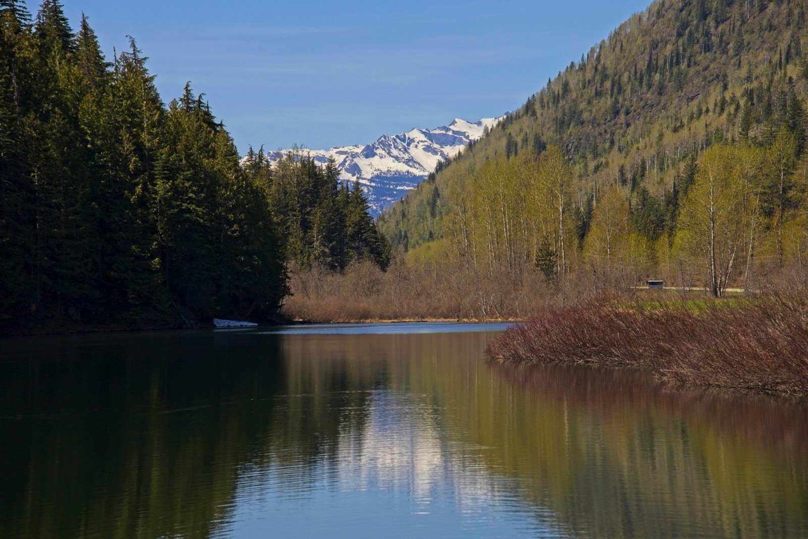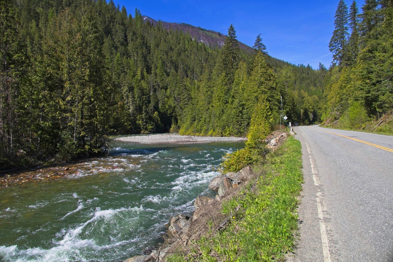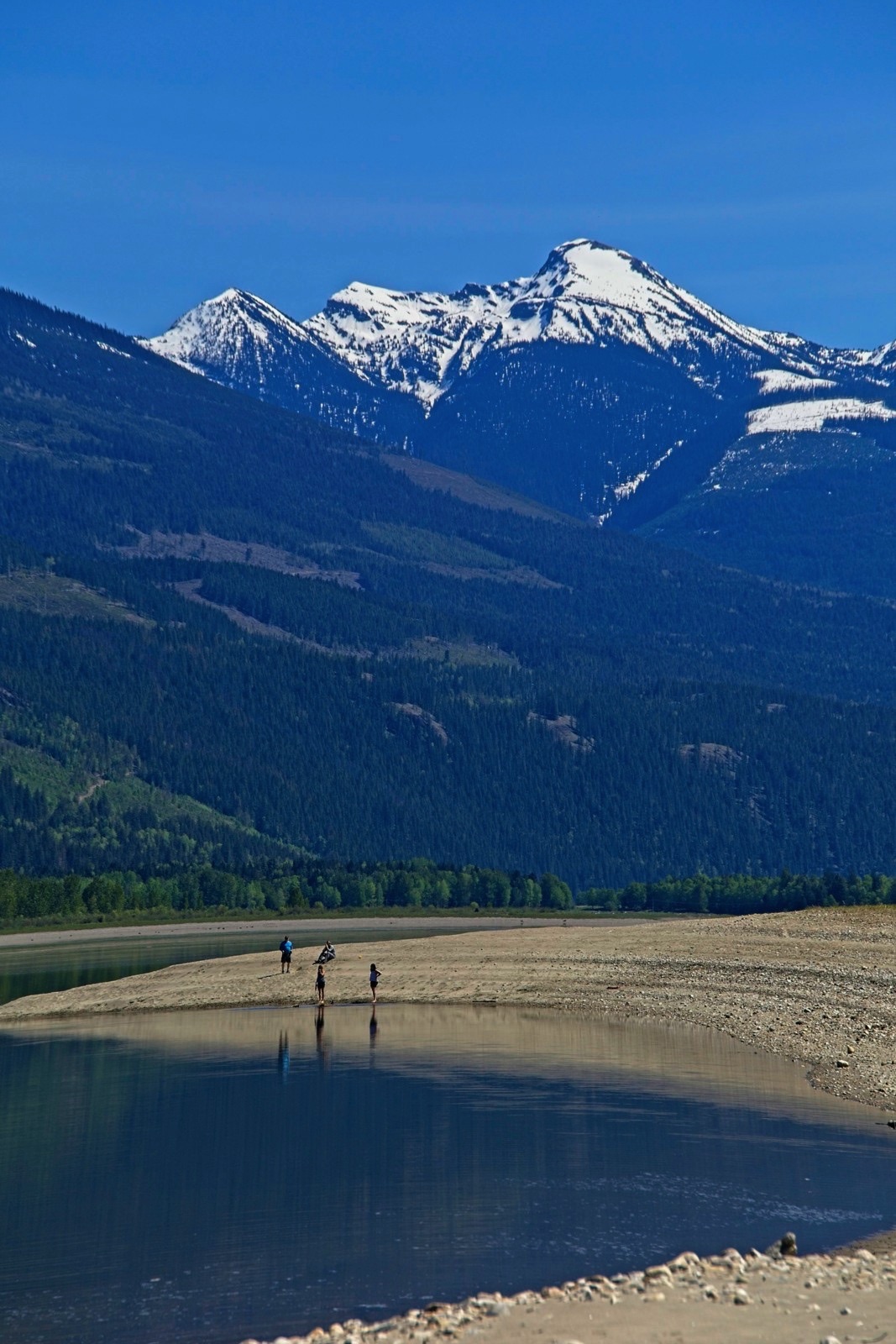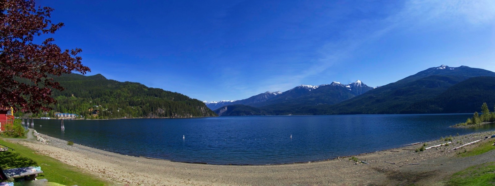 The weather is certainly warming up but I am glad to be in the Rockies rather than the planes of Alberta where they are experiencing a heat dome. I was pleased to note that the Upper Arrow Lake ferry was running today after maintenance kept it out of action for the past two days. This is not academic as the alternative was a detour of over 200 km! As it happens I was able to follow the road untravelled through the West Koots, along Kootenay Lake, over the mountains and along Arrow Lake on the mighty Columbia River, overall a short hop from Nelson to Revelstoke. The latter on first inspection was not impressive along the Trans Canada highway but a visit to the downtown for dinner revealed a quite vibrant little town considering that we are seriously out of season. I dopped into a Provincial Park just south of Revelstoke and encountered two rangers having a kick about in an empty car park I quipped that it was not too busy to which they told me no-one visits at this time of the year. Not strictly true as there was a family down by the lakeside. I always enjoy a ferry ride particularly a scenic one and today’s was no exception and I could not have planned it better arriving just as the incoming ferry docked. Rather than show a few more snaps I have created a short video to music of the crossing here. I did see another ferry at the dock at Balfour on Kootenay Lake and below are a couple of snaps from this nice little town. At Kaslo I took a final panorama of Kootenay Lake before heading over the mountains following sparkling streams and by crystal lakes. A real treat. I had planned to visit a mountaintop fire monitoring station with apparently spectacular views but common sense prevailed when I saw the state of the road, boulders and gravel and overgrown and looking like the last time anyone ascended M. Trudeau’s dad was in power. After crossing on the ferrry I mentioned a Provincial Park, Blanket Creek, so I’ll finish with a couple of snaps from there with the aforementioned family and a panorama looking towards Revelstoke.