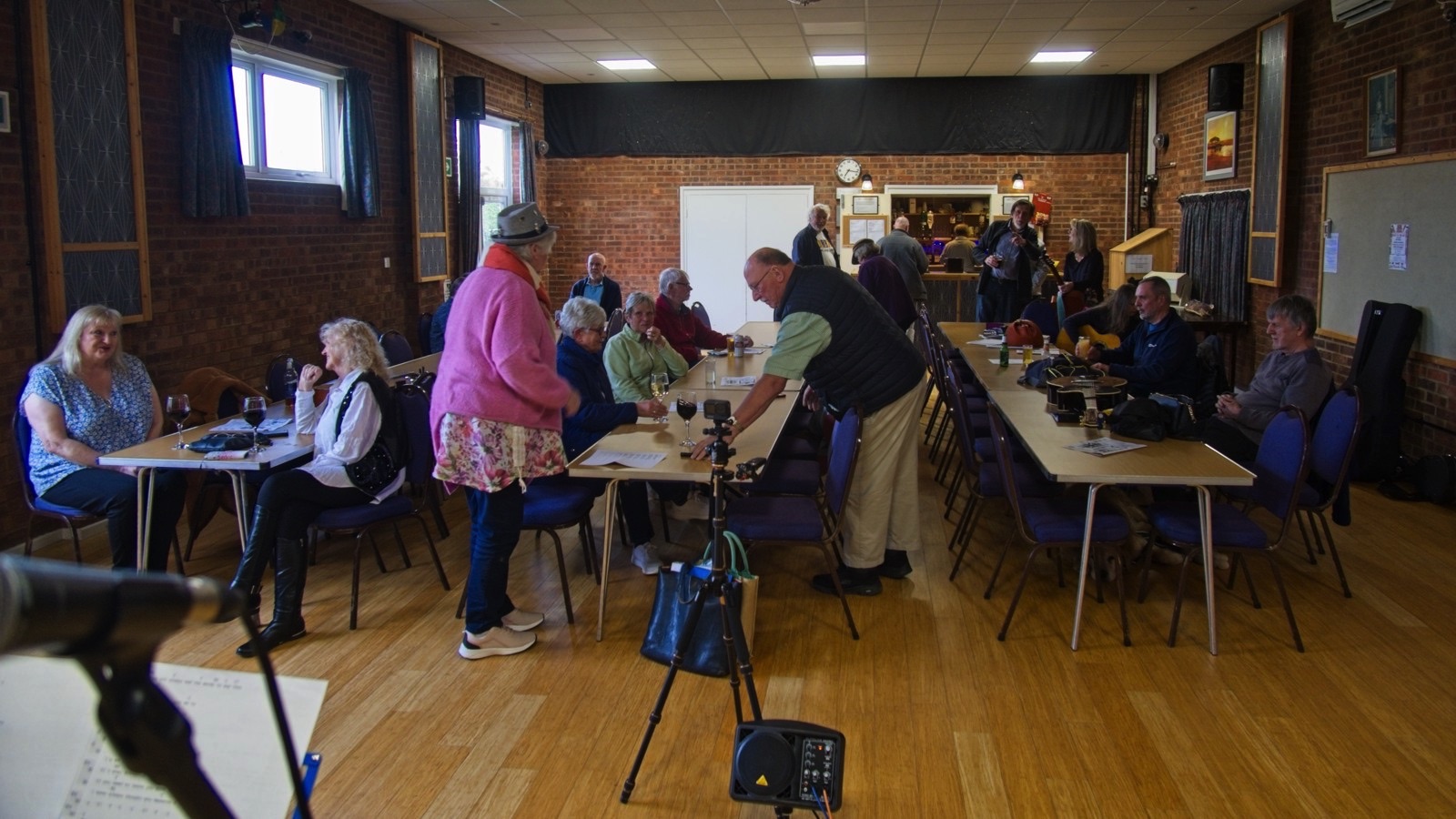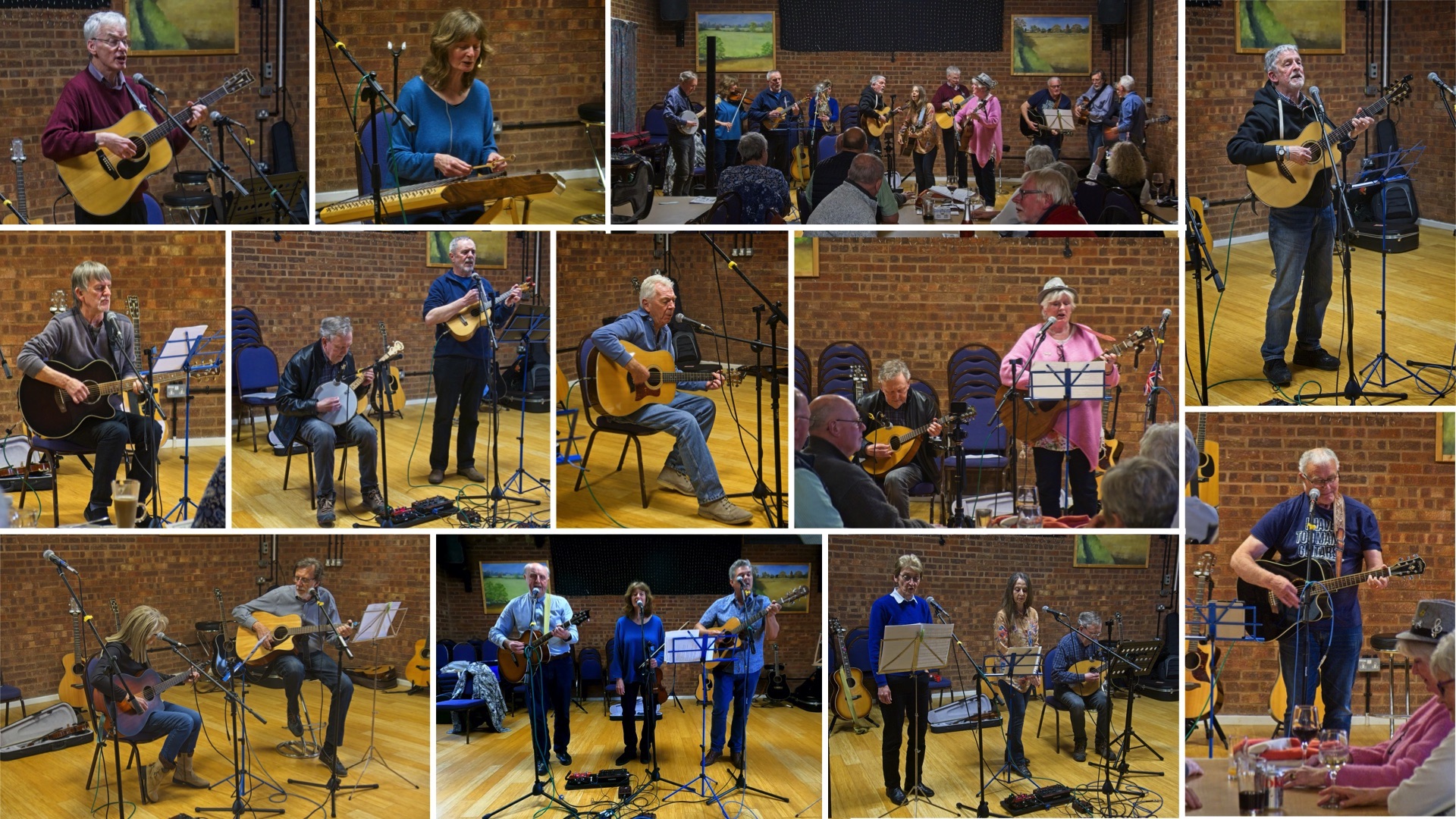 It was another good turnout with Linda trying a new layout to accomodate slightly more people. Here is a snap of the new layout and the final “thrash” with the majority of the musicians on show. The GoPro captured a nice picture of our Moggies Band playing Harvest Moon for my sister Anne on a rare visit to this neck of woods in recent years.