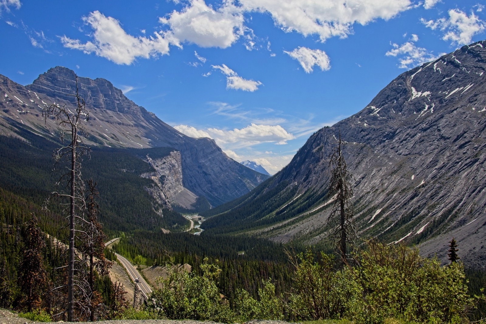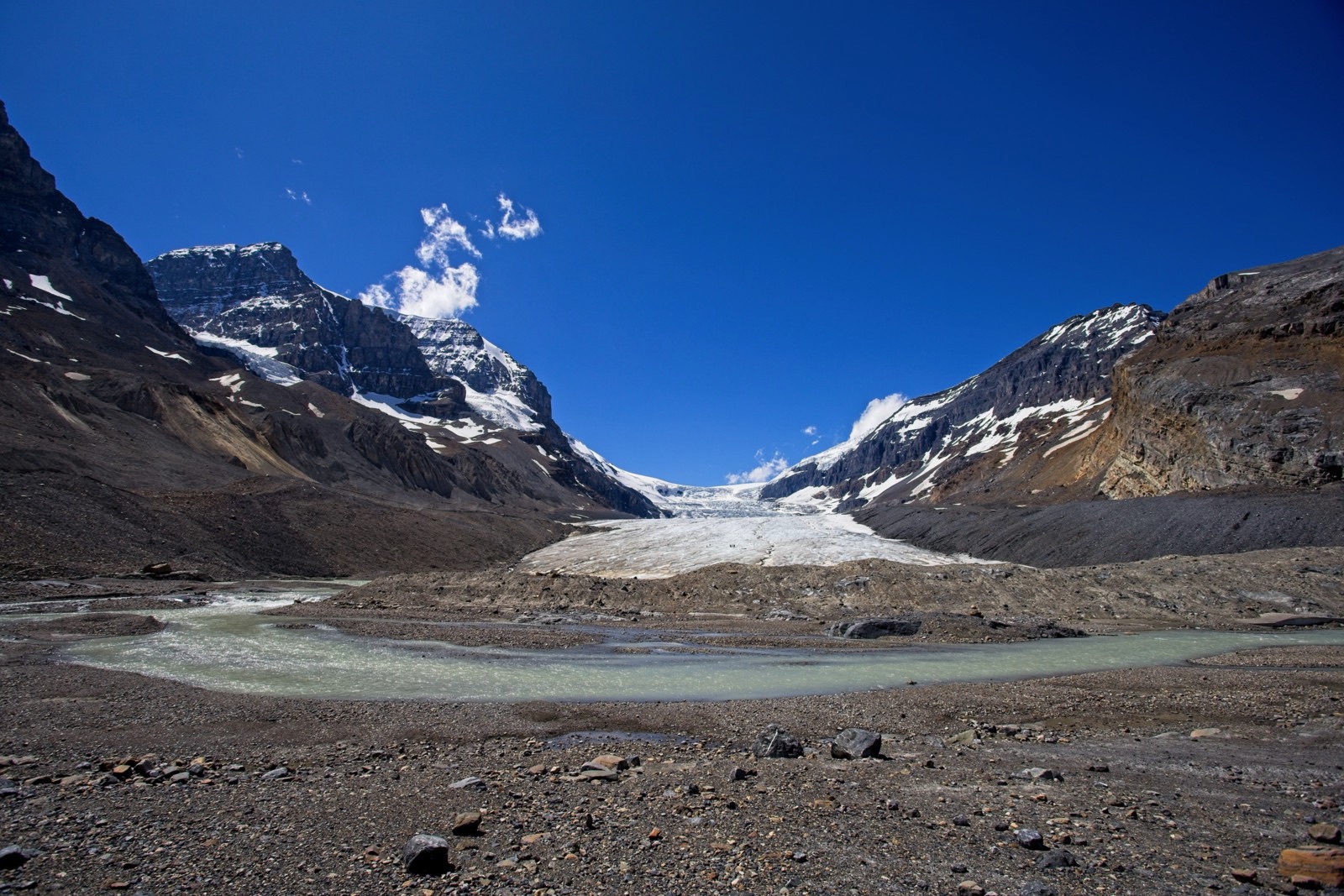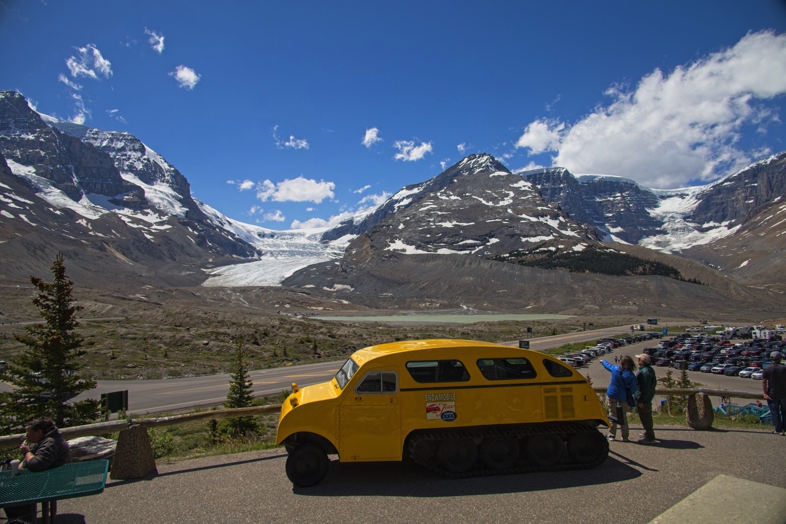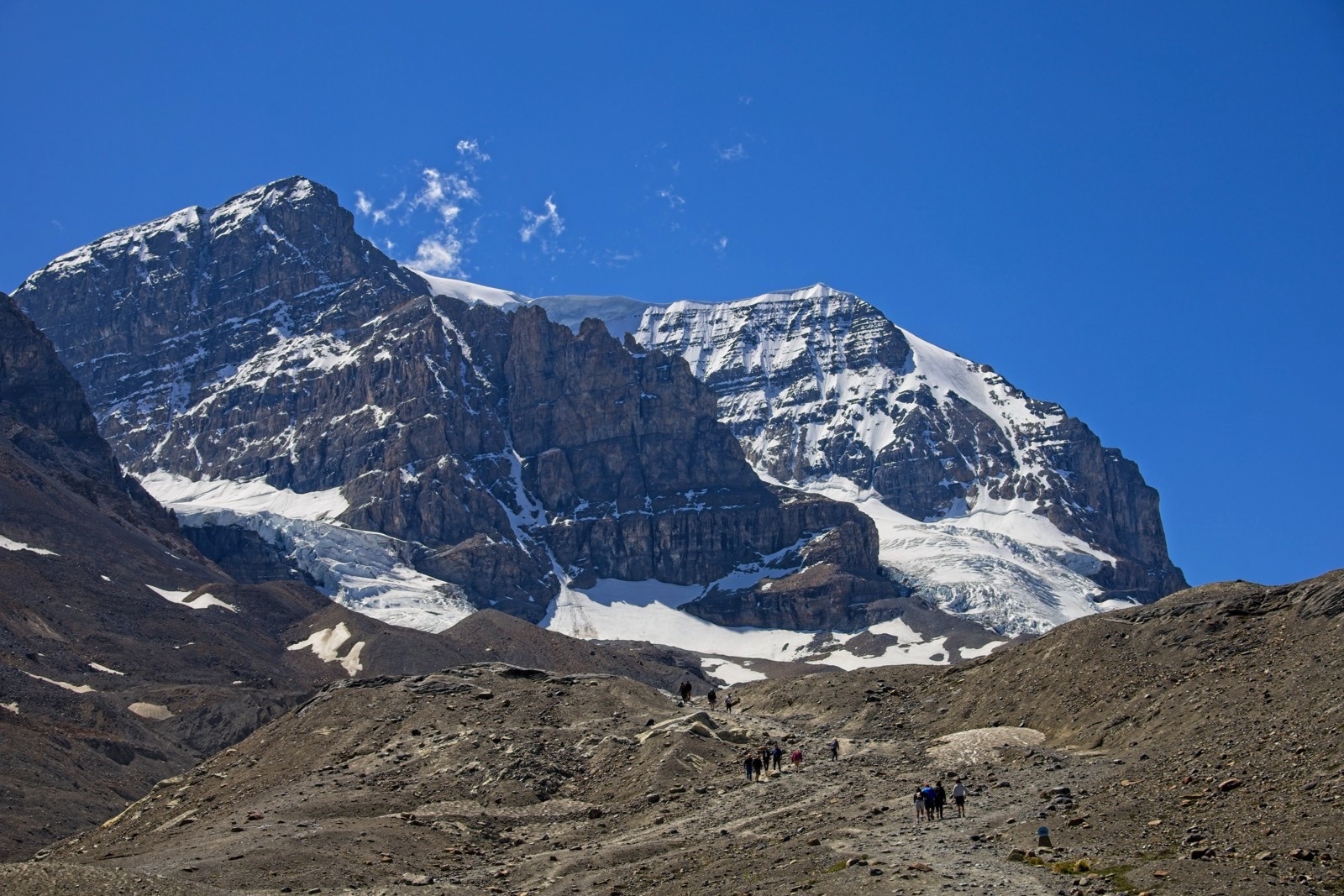I have just enjoyed one of the most scenic roads on our planet, the Icefields Parkway from Jasper to Banff. The road climbs from Jasper following the Athabasca River with a must stop at the falls then on up to the Columbia Icefield, the largest in the Rockies with a few glaciers rolling down towards the parkway including the accessible Athabasca Glacier. The road then drops down with more glaciers to the right and down deep canyons before another small climb at Peyto Lake for one of the most spectacular views in the Rockies. One of the features that makes this road so good is that much of the road is either straight or around gentle curves allowing the driver to enjoy the scenery, the weather today helped. The headline picture is on the short hike to the toe of the Athabasca Glacier. In fact where I am standing to take the photo was under ice when mum and I were here in 1999. I will go a bit chronologically along the parkway with a stop at Athabasca Falls. There will be a video one day when I have more time! It was busy so I anticipated that despite being an out of season Monday I was not going to have the place to myself. The next photo is typical of the northern part of the parkway, that is now the Sunwapta river. The guy in the next photo was on a fools errand trying to prop up his phone on a little tripod as the glacier winds were strong. I did not wait to see the inevitable damage. Now we are at the Columbia Icefield with a few on the trail to the glacier. The close up is from about the same place as the headline image. I had thought I might take the trip up on the glacier but the queues were pretty long. I should have guessed when I had to search for a parking spot and the size of the fleet of buses that were there and arriving. I took the trip with mum all those years ago but we walked straight onto the Brewsters purpose built bus. There are markers along the way and the glacier was almost at the road in 1903. Next is a typical view of the parkway heading south and on to Peyto Lake. They have built a nice viewing platform but that does not seem to be enough for some. I’ll finish with another grab from in car and the wildlife for the day, mountain goats.