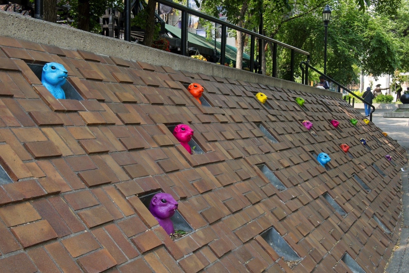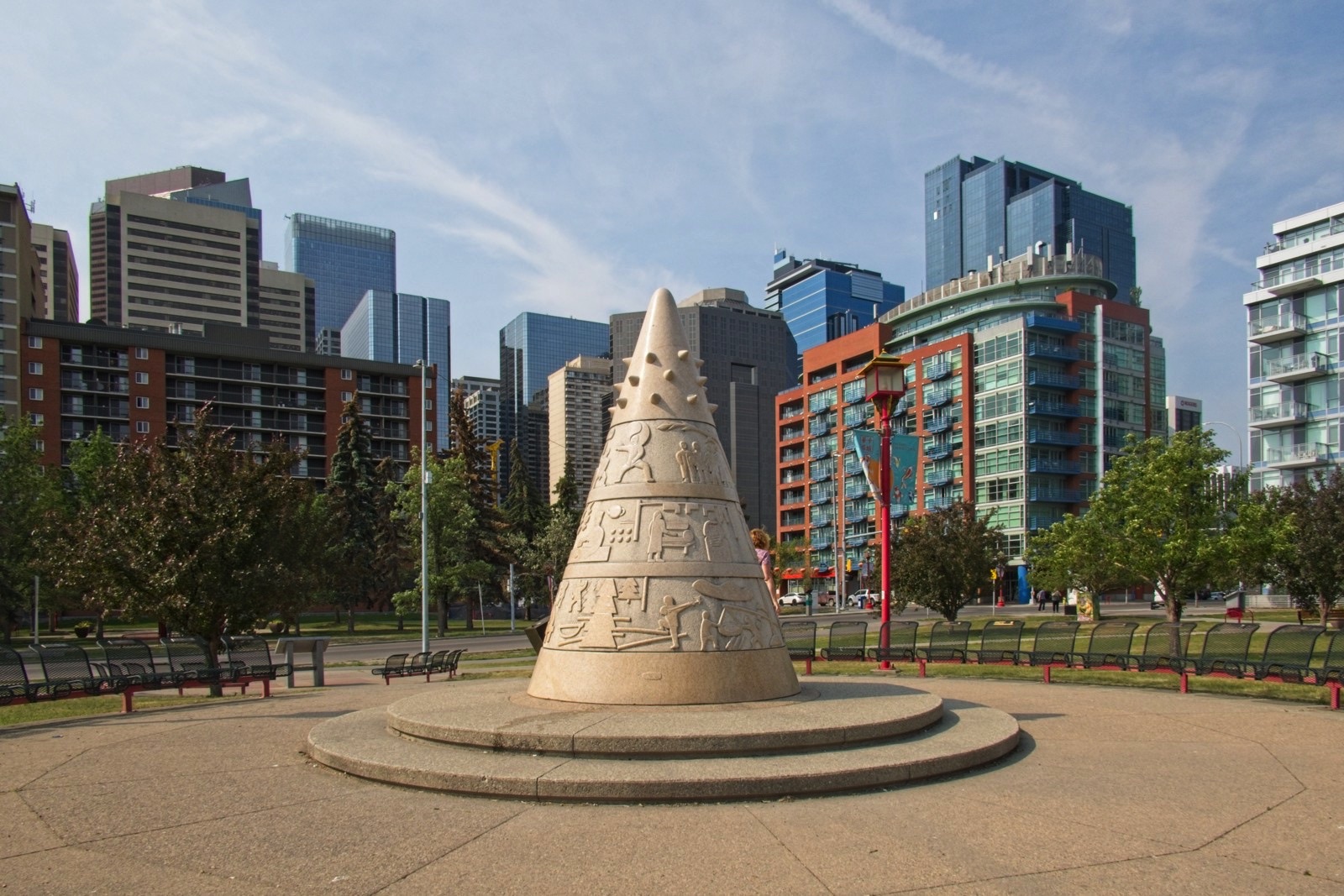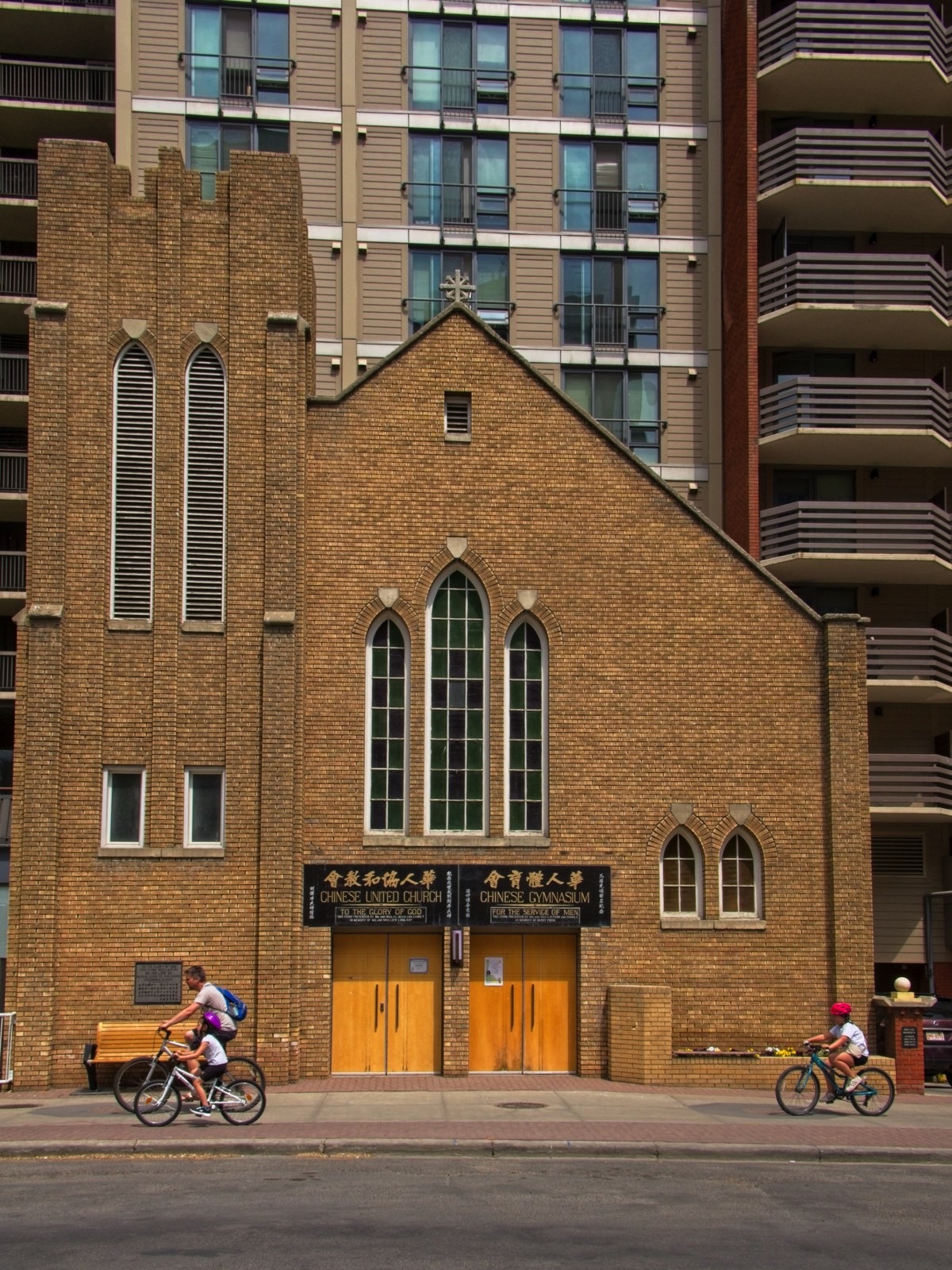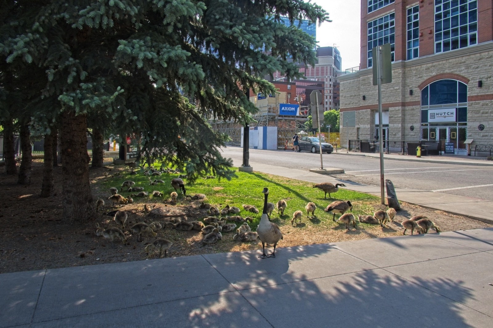 I am not a real cities person, there are exceptions, but my contingency planning for weather allowed a sacrificial day in Calgary and as the weather was remarkable it became a real day. It was a nice day out in this modern city along the Bow River with its tower recognised across the world. My hotel is on the boundary between downtown and Mount Royal Village on an easy bus route. So off to town in the 13 bus to start the day on the riverside walk from the Peace Bridge to Fort Calgary. A nice way to spend an hour or so. The headline picture was taken towards the end of that river walk. It started with a mass of Canada goslings. Amongst the cyclists and runners were families animal and human. There were plenty of riverside apartments available. Some were even protected by dragons and coyotes. Sien Lok park has its own pyramid. The red chairs gave way to green loungers here. From the Easy Village it was time to head into town to the Olympic Plaza and then to Calgary Tower. There is some interesting and also thought provoking art in the Olympic Plaza as well as fun stuff for the kids. The Calgary Tower is not the tallest structure in the city but is a symbol of both the city and the province of Alberta. It is still pretty tall! I am not a great fan of transparent floors but I decided to check this one out. The heart is still fluttering. Others were less cautious. You get a great 360º view of the city and it was pretty clear. City Hall by the Olympic Plaza looks a little out of place amongst the glass and steel. I loved the little pink heart on a tower block looking north. Down at street level 8th Avenue was busy with people in all of the restaurants and bars seemingly having a good time. There is some very accessible street art around. I finished my exploration of Calgary with a loop through the small China Town district before eventually getting a bus back to my digs. I say eventually as finding a working bus stop proved to be a challenge after two mis-directions by drivers of other route buses! The problem being that my route was following a detour to avoid construction. Never mind got there in the end.
