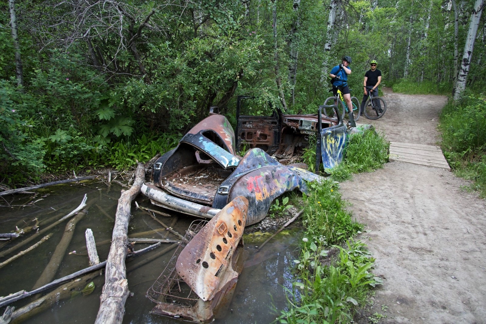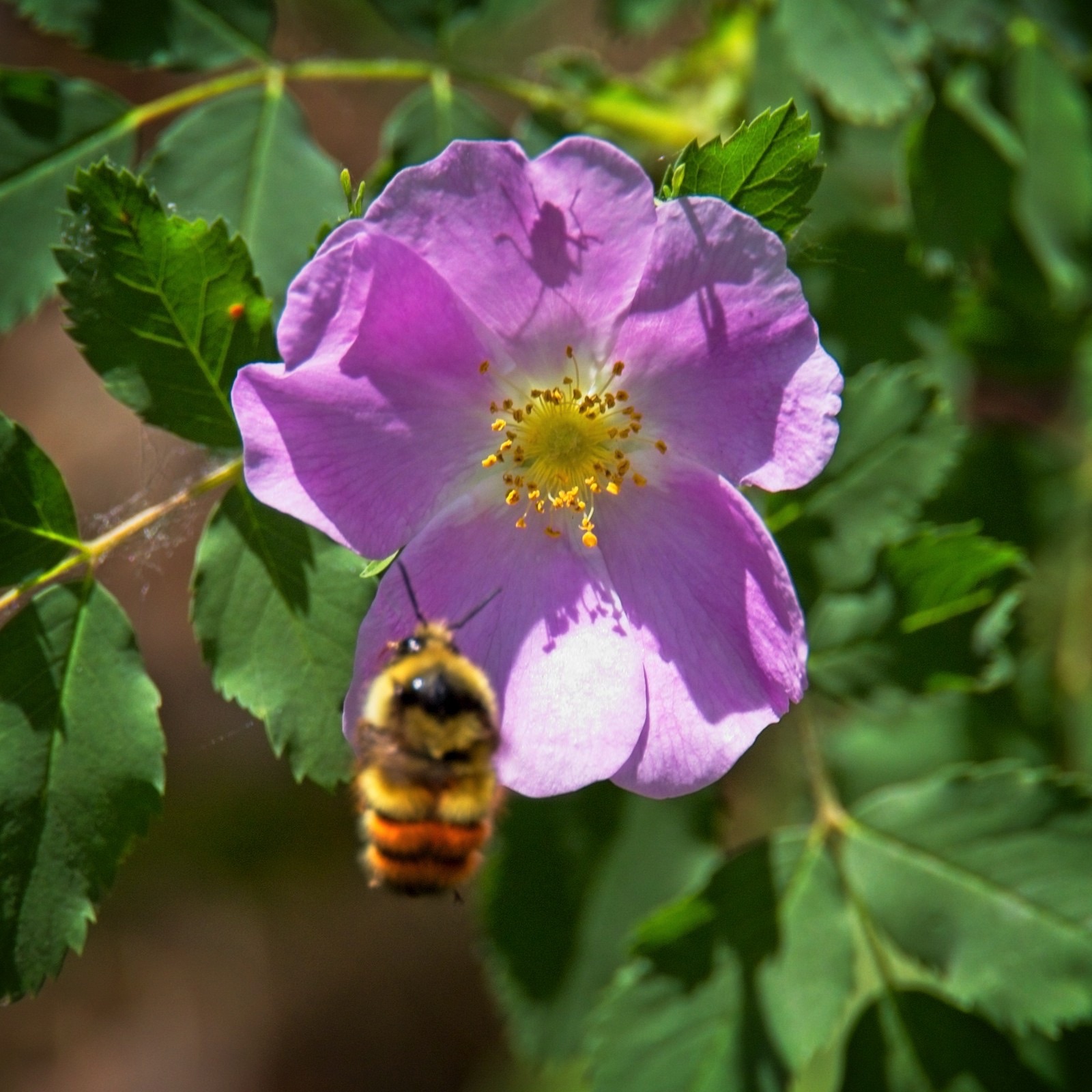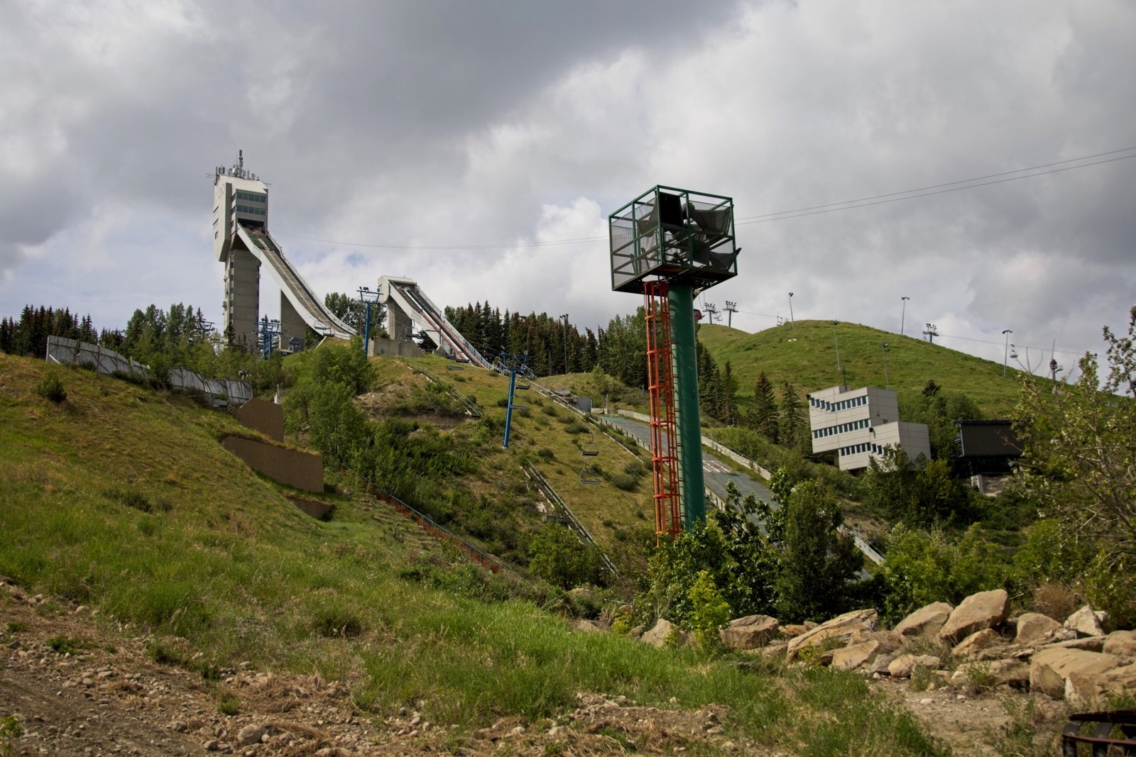 No that is not my rental although it has taken a bit of a battering along the way after just over 8,000 km. It passed check at the Hertz return. It is in fact on one of the biking/hiking trails by the Calgary winter Olympic Park on the western outskirts of the city. With the temperature in the high 20s it seems strange thinking of this is a winter sports destination when you are less than 4000 ft above sea level. They tell me that -30ºC is not unusual in the winter. The ski jumps are all that you can see of the Olympic facilities. The trails are really more biking than hiking as you are in woodland for most of the time so not much in the way of views. I asked a couple on their mountain bikes if there were any good views of the city from the trails, answer no! Never mind it was a pleasant way to take up some of the time before my flight this evening. There were plenty of insects and this bee decided to take off as I took the picture. I drove to the north of the city to Nose Hill where there was a contre-jour view of the city and indeed a view over the airport, where I am writing this, to finish of my Western Canadian odyssey.