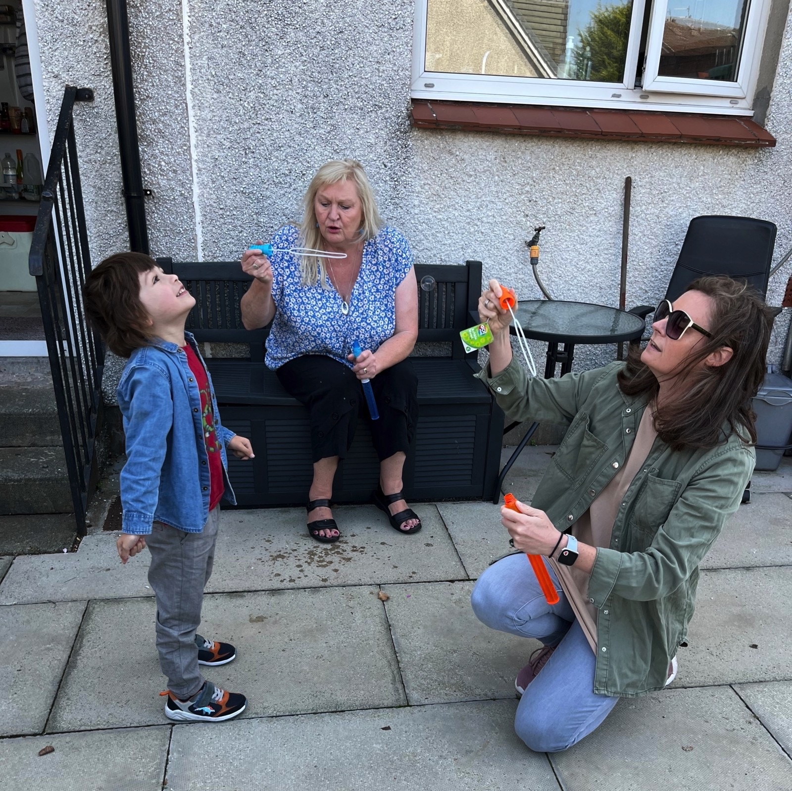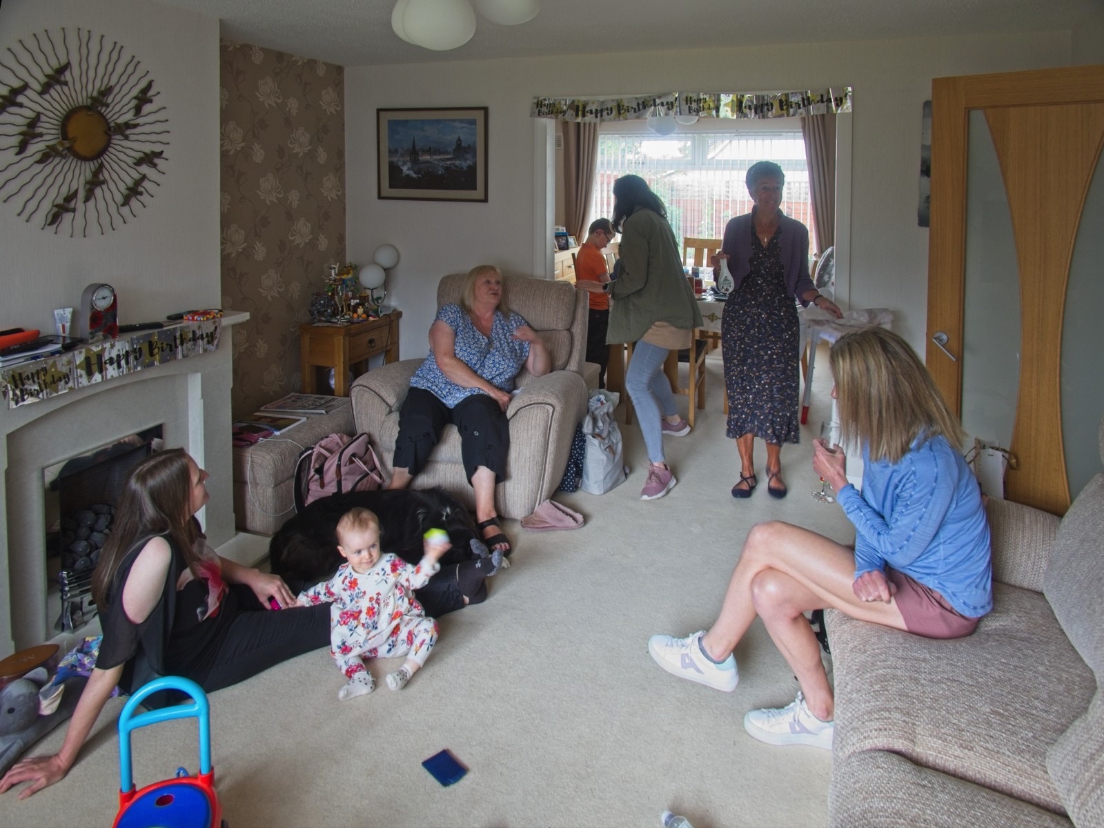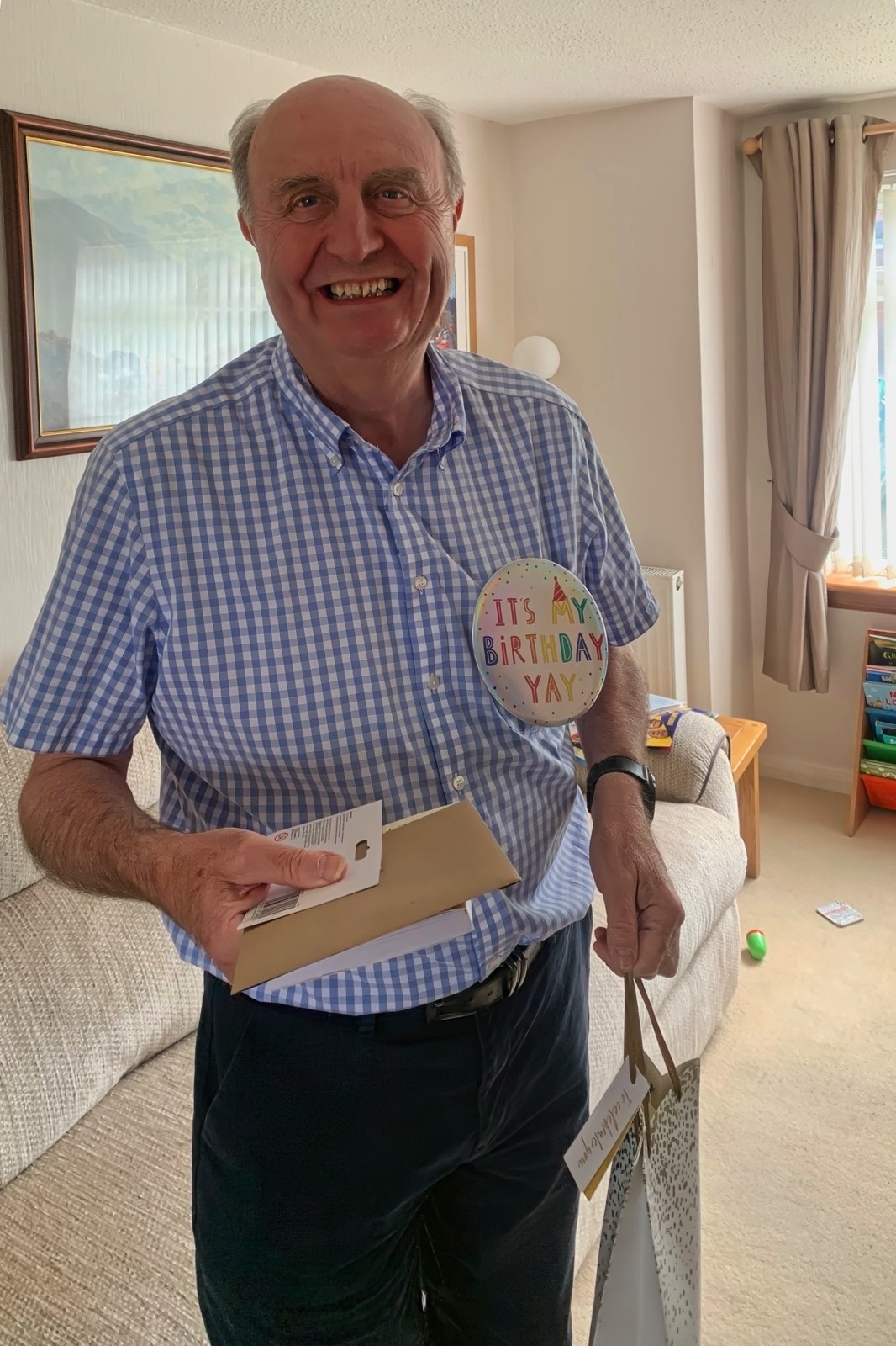Time to add a part two from my long weekend in Scotland with family and friends. After a fine day at East Fortune next day was a lovely family get together to celebrate a big birthday, mine actually! Winding down the following day Anne, Douglas and I took a ride on the “new” Edinburgh tram from the Gyle to Newhaven which was interesting and encouragingly popular. The headline picture is us at the Gyle station about to get on the tram and dodge the oncoming shower of rain. I runs from the airport to Newhaven and was pretty full already when we got on. Below is the Newhaven terminal close to where we went to school. We popped in to see one of Anne’s closest friends at her new flat and what a view. See the short panorama video here. Wow. I have added a few snaps from my birthday celebrations thanks to Anne for capturing some precious moments. Three generations together having fun and food and even some bubbles. A real treat.