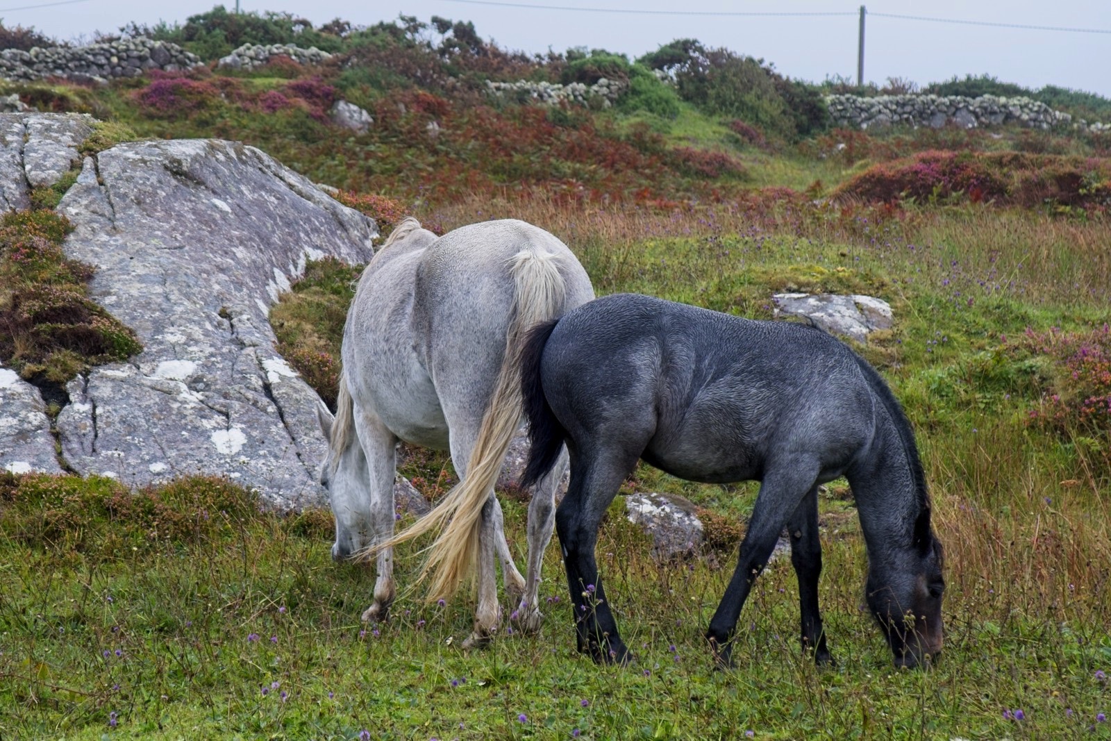 Taking an opportunity in a gap in the rain I stopped at Coral Strand at Carrowroe. The only person there was an elderly gentleman who had just been in for a swim! The horse and foal seemed to be fine with the weather