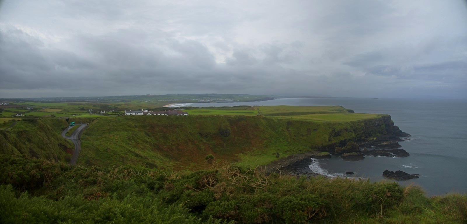 As you can see from the panorama looking back towards Portrush it was a grey and misty start.
