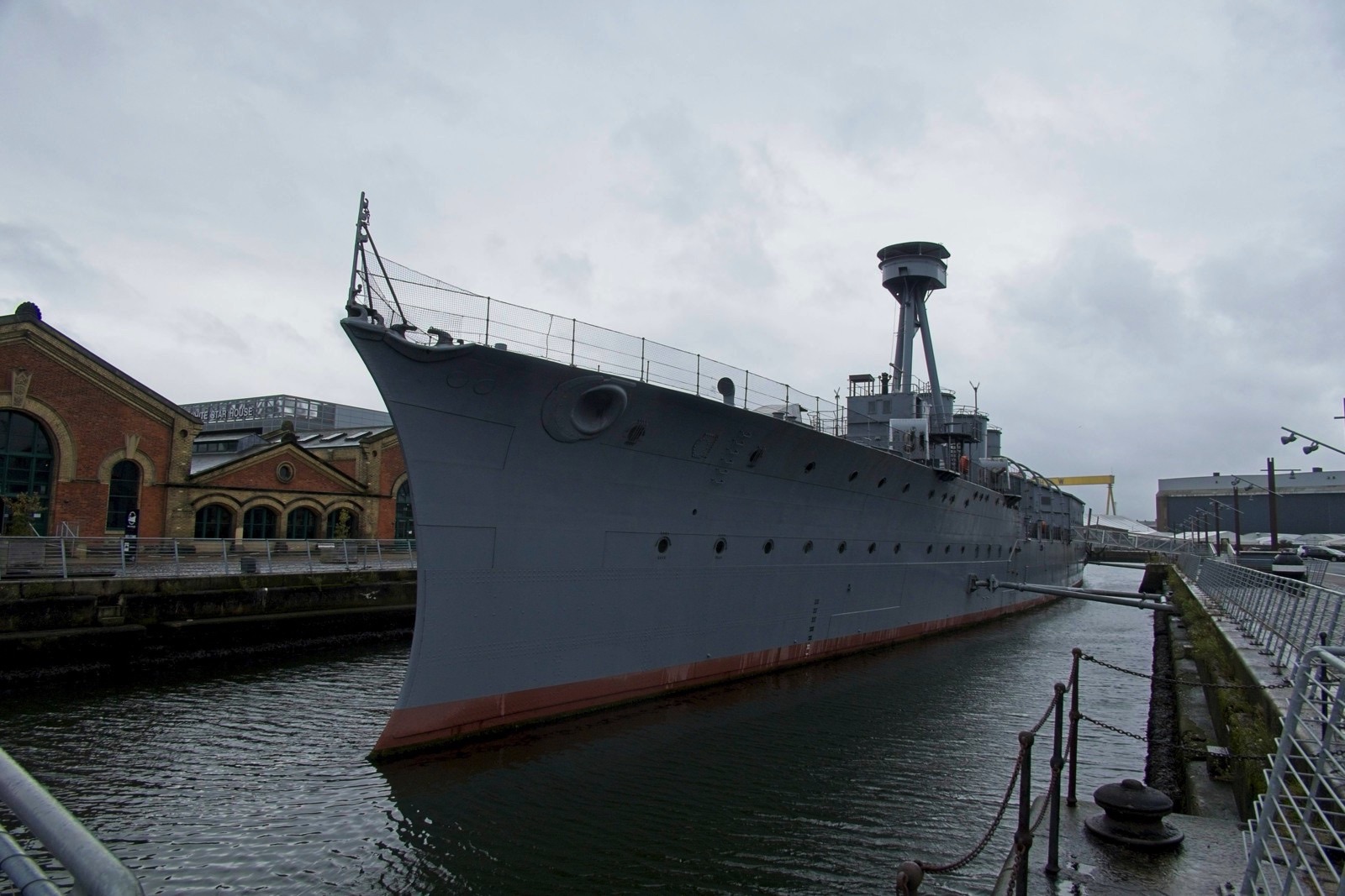 HMS Caroline was built in 1914 and the reason it survives is between wars it became permanently sited in Belfast as a training base and for operational control in WW2. It is located within site of the great Harland and Wolff cranes and on the edge of the Titanic Quarter.