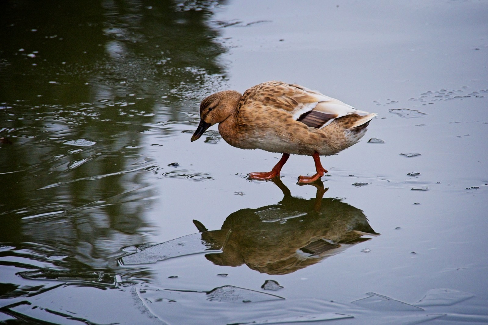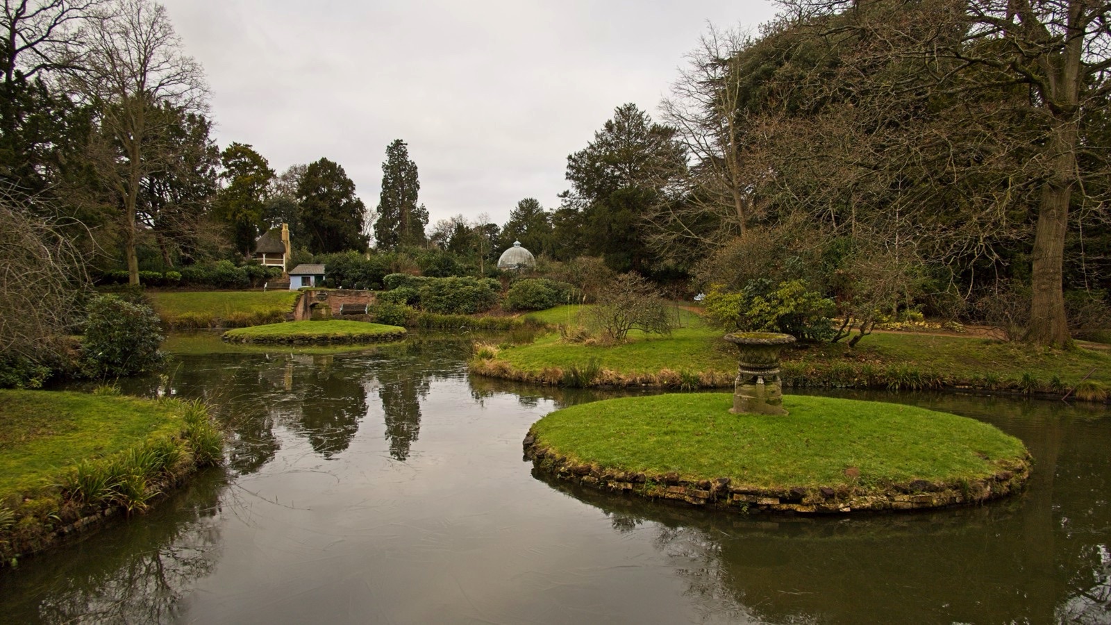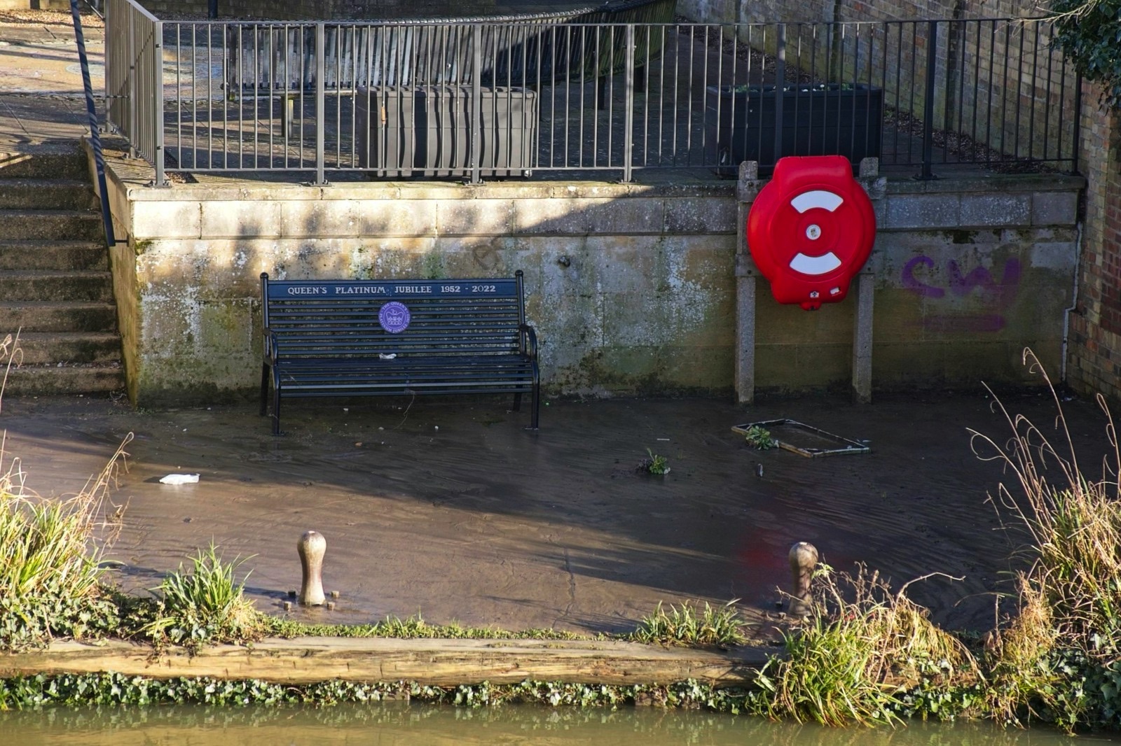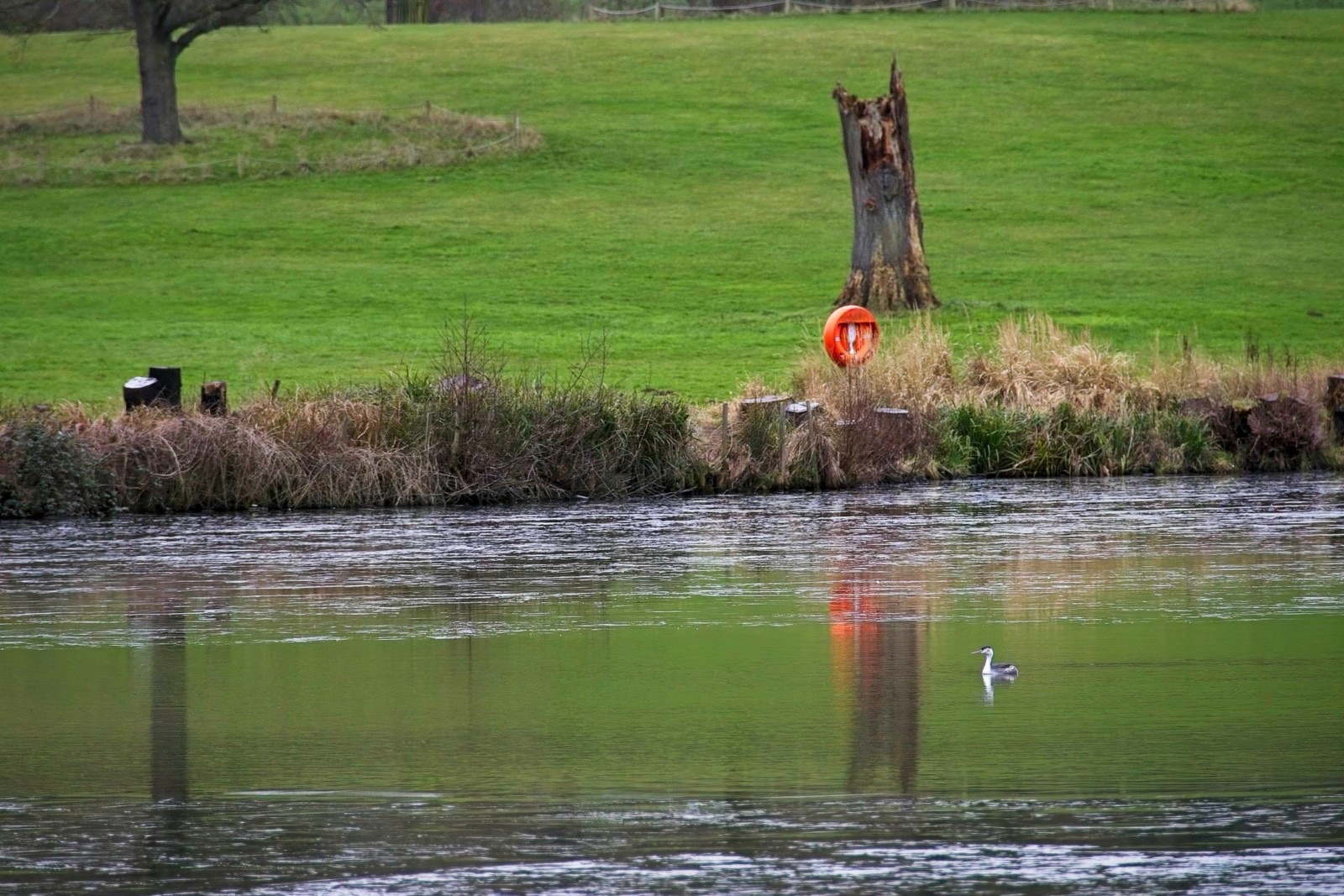 I took a stroll around the Swiss Garden at Old Warden yesterday and it is in its winter clothes, including a little thin ice on the ponds and lake. I am pretty sure that the bird on the lake is a juvenile great crested grebe. There are always things to see in the garden at any time of the year. To complete the post I have added another snap of the receding floods in St Neots.