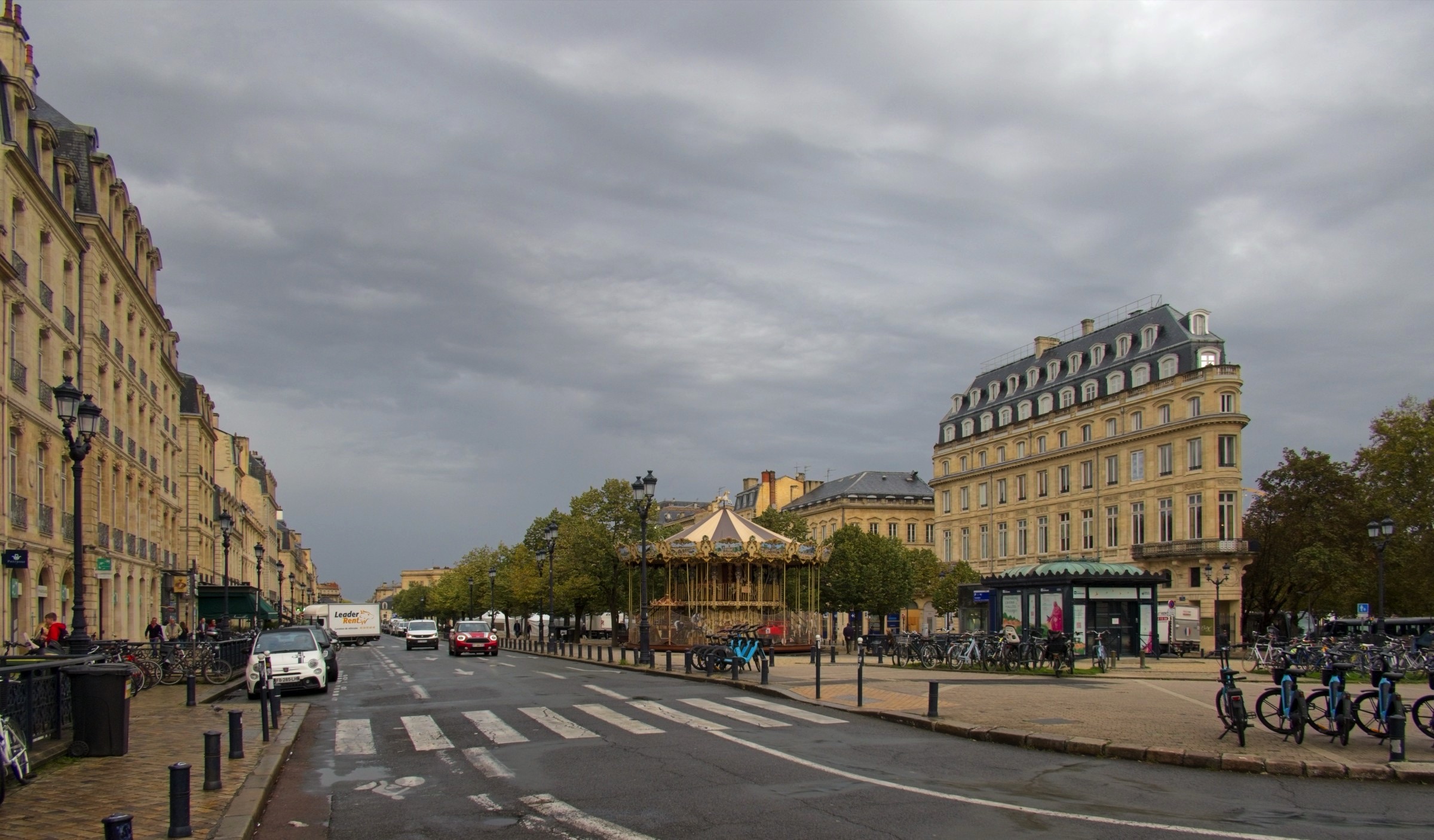 Another city, another very long walk but I had a little assistance from the Garonne ferries and a tram after picking up a day ticket at the hotel. The public transport is extensive and seems to work well from e-bike hire to trams, buses and ferries easily managed with a single app. Well done Bordeaux. It was a day that started with an umbrella and finished sweltering under a hat as you will see in the photos. As with my other city jaunts I picked a network of places that about covered the area I wanted to visit and then simply wandered around connecting each focal point. It is the first time I have stayed in the centre of the city and got on “Shanks’s Pony” so was immediately impressed by its scale. Boulevards and large buildings could have been in Paris but were interlinked by narrow almost medieval lanes. I like it. I could explain where all of the pictures were taken but that is really unimportant as I just want to give sense of place rather than a city tour. My hotel is on the east side of the mighty Garonne hence the ferries and the bulk of the day was on the west side. The headline picture is for a bit of comic relief. The funfare is on from October to March, the monument a bit more permanent. Of course there are carousels. The final two shots are here in Bastide across the river while out for an excellent pizza at a local restaurant. A good day and I now have a sense of the geography of central Bordeaux.