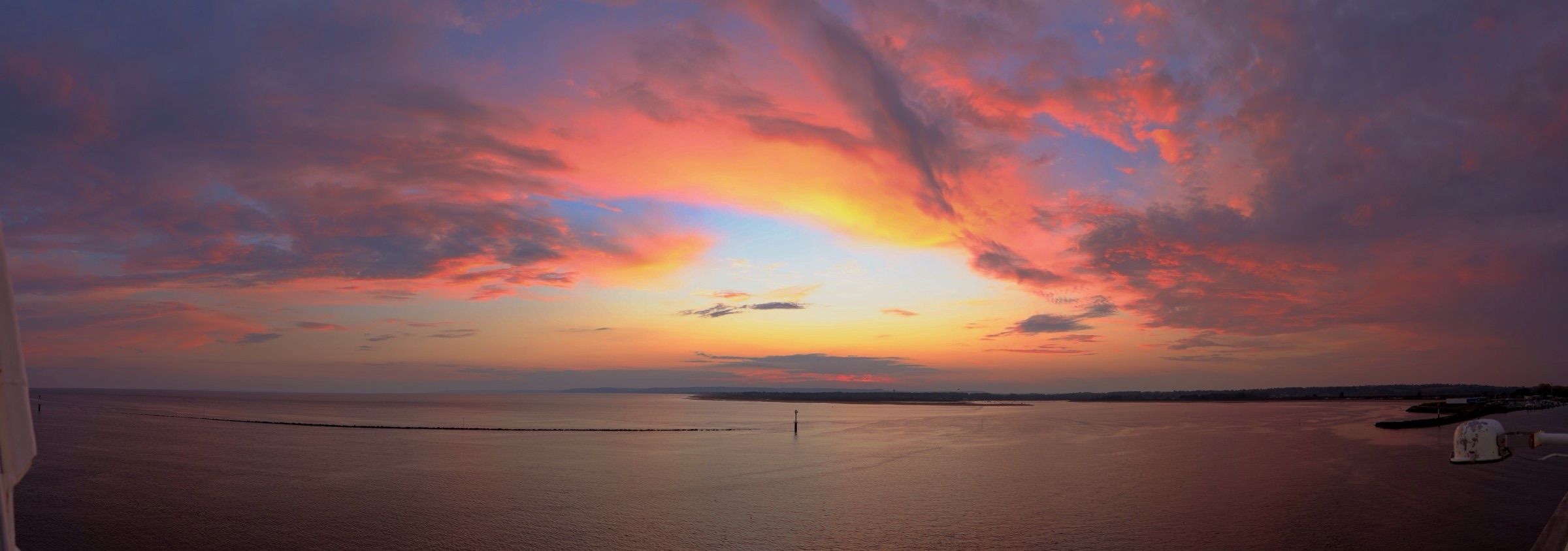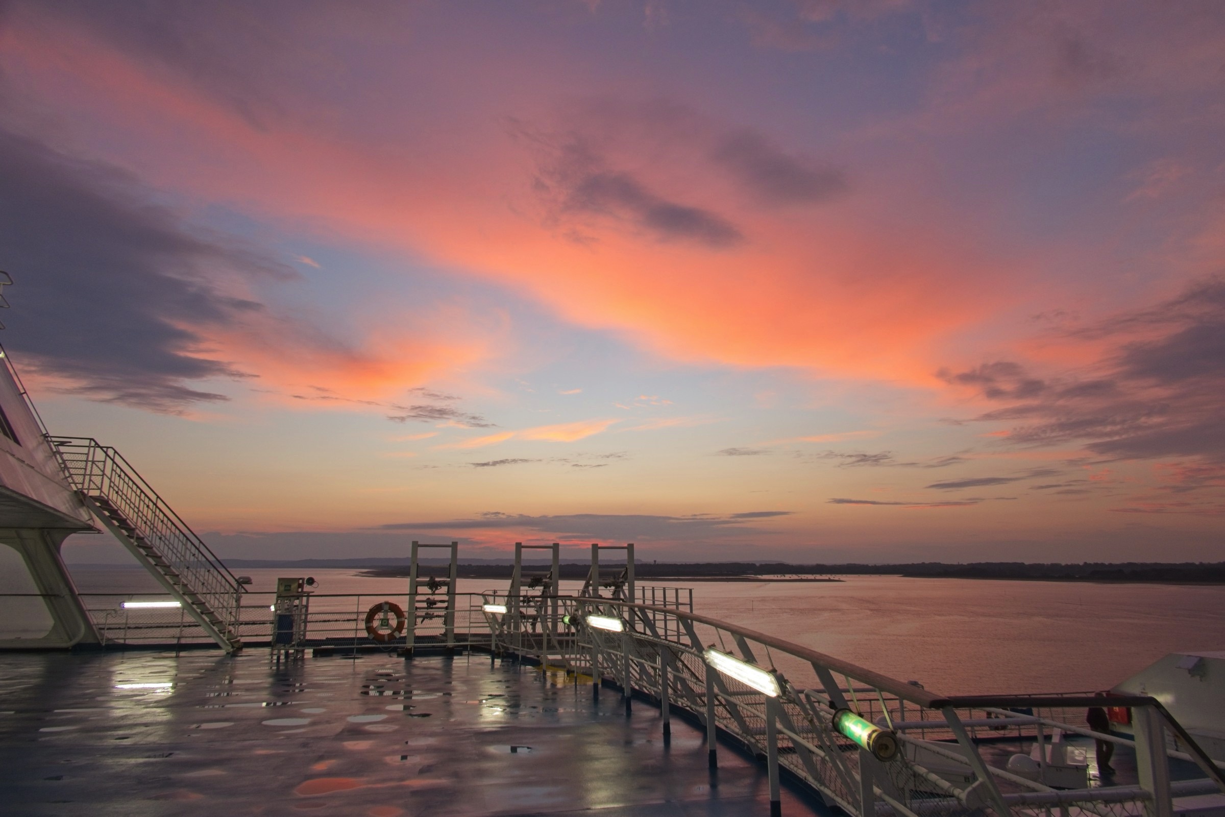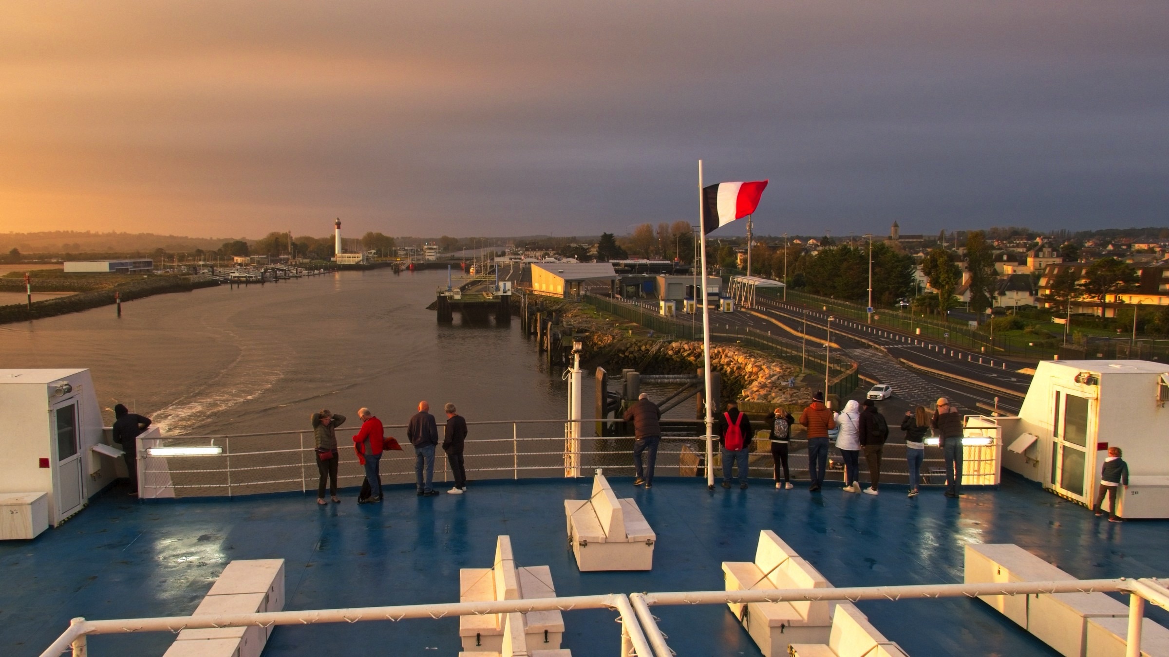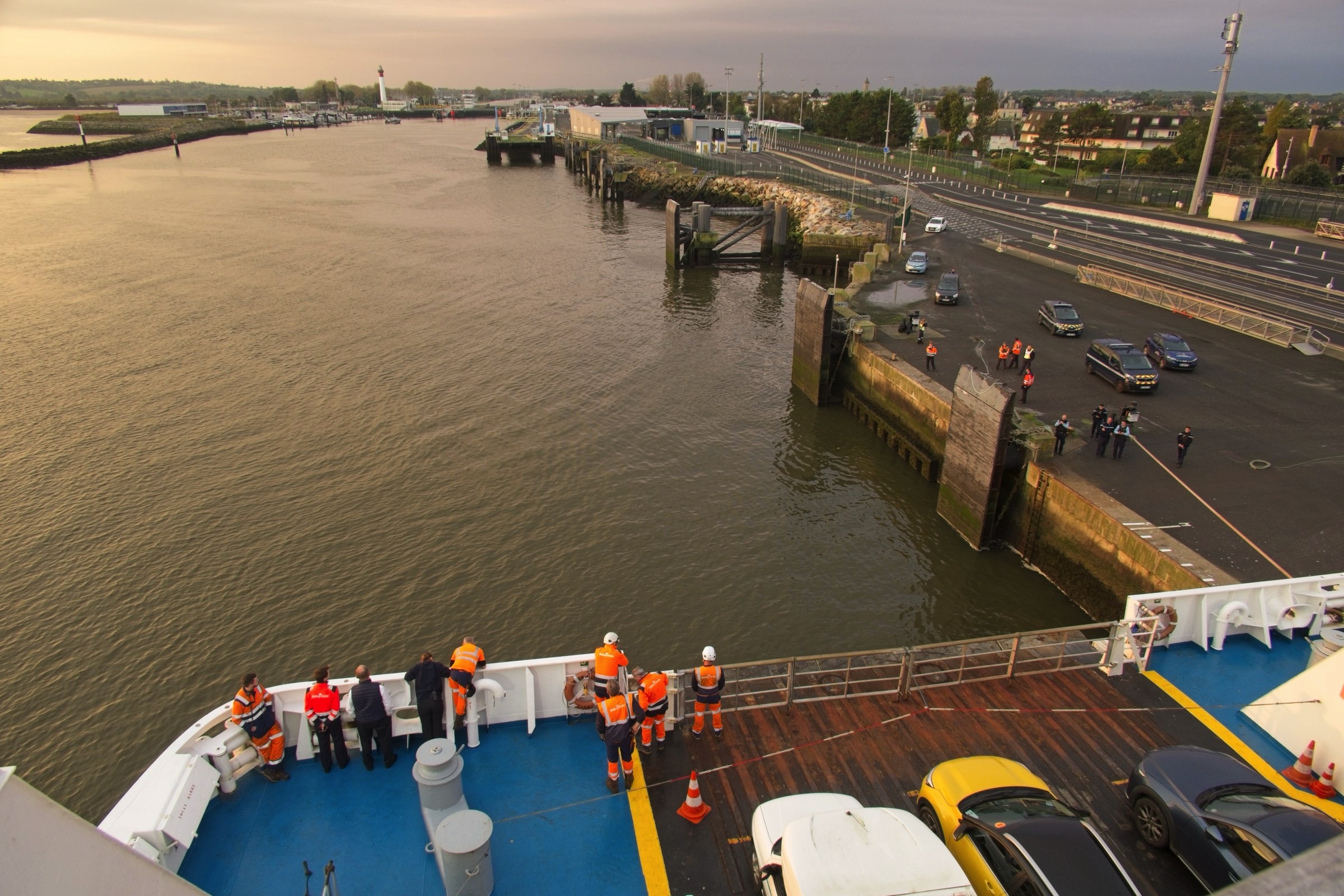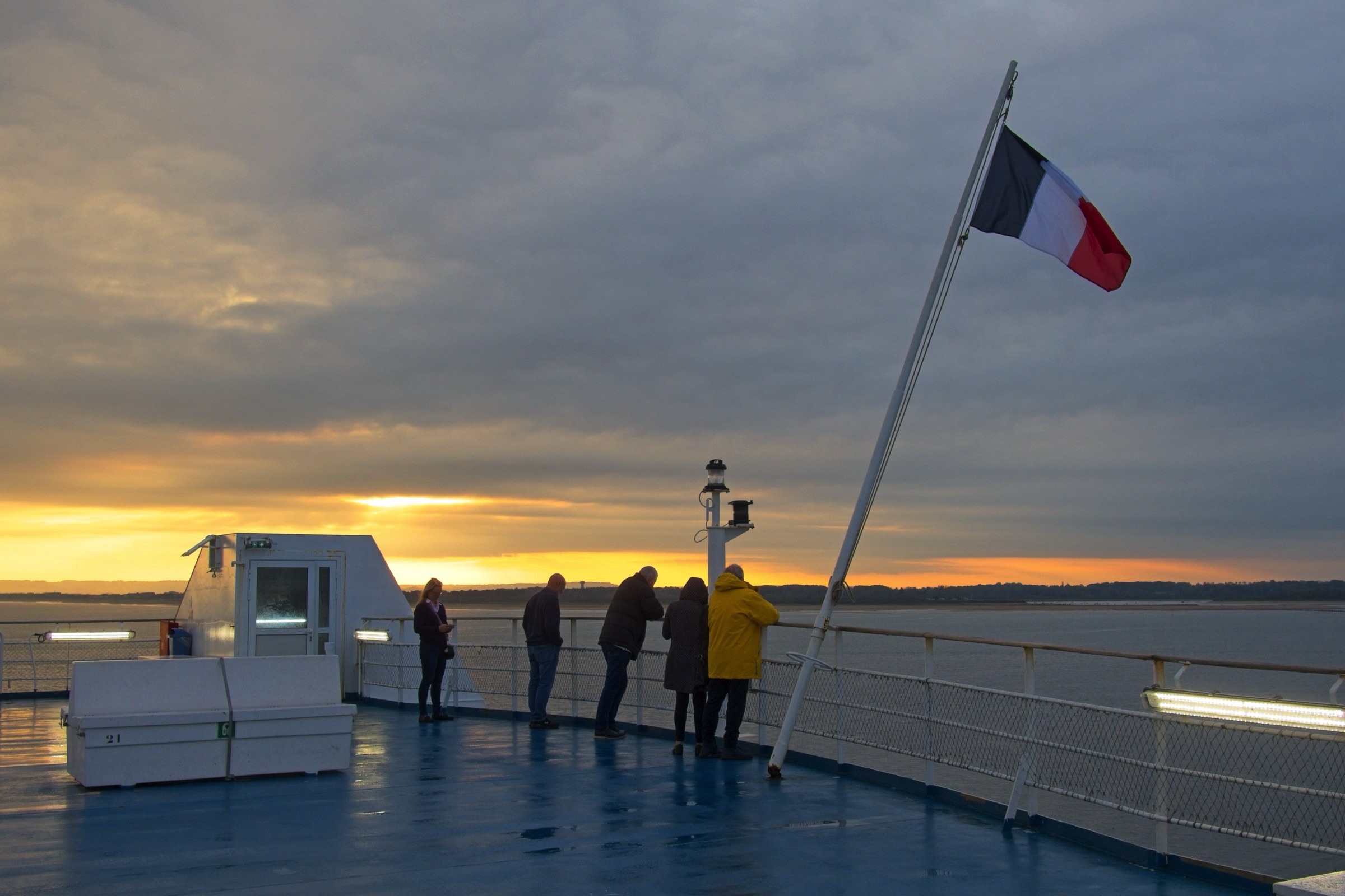 I write this while getly rolling along a couple of hours into the voyage on the ferry Normandy. It was not the slickest of starts as we were delayed by about 45 minutes as there was a problem at the stern. If I am guessing, something was wrapped around a propellor or appeared to be. Here is the story as I saw it as the sun rose on what will not be a sunny day for long.