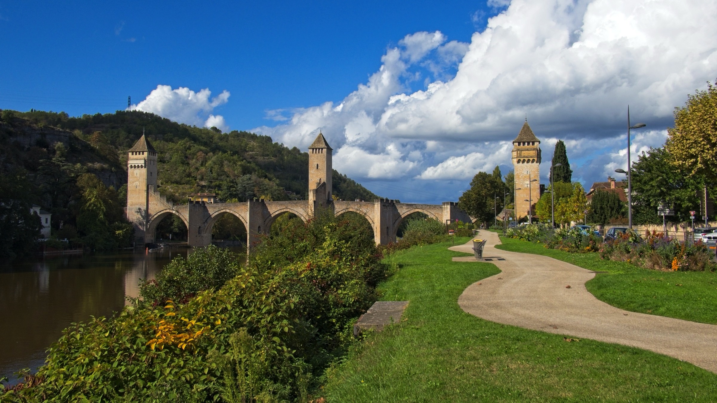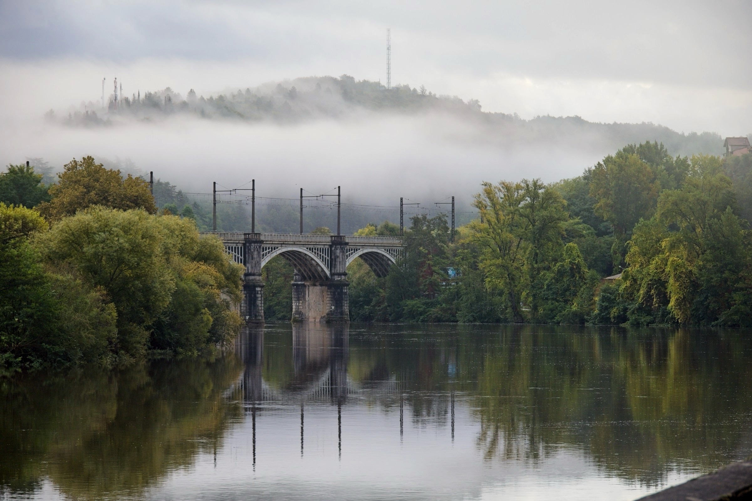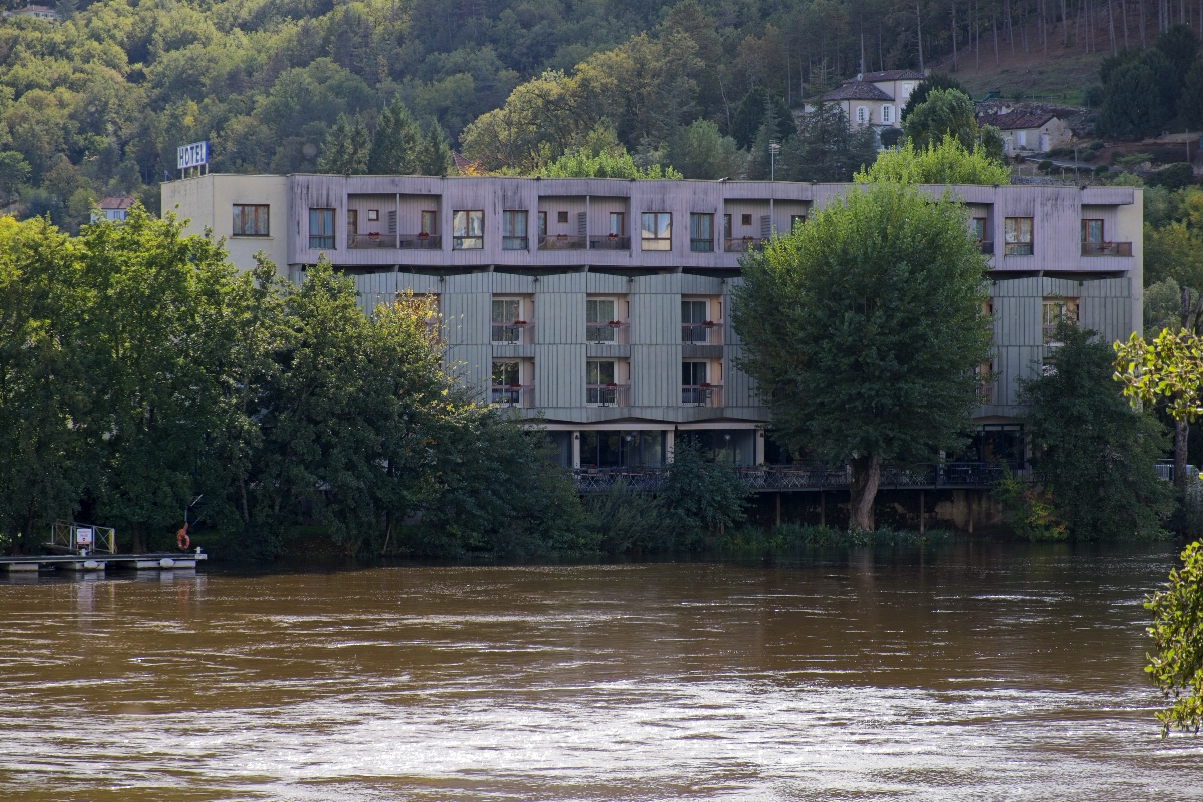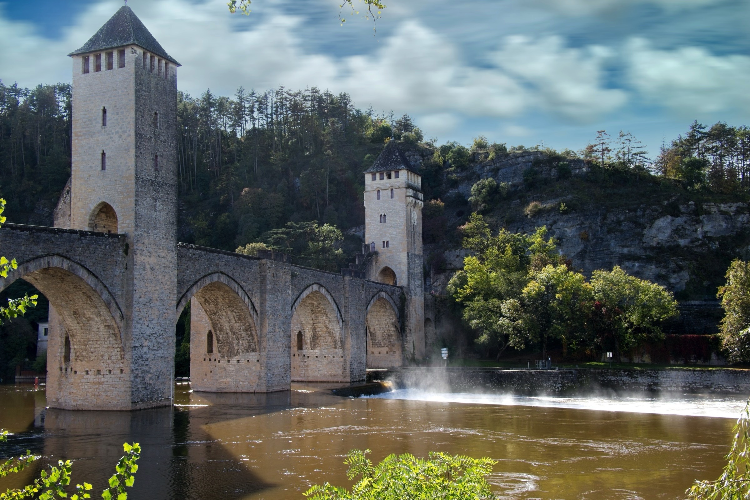 No it was not a miserable day, weatherise, although I was not upset to see mist on the Lot from my balcony when I got up. A quick change of plan and a walk up to the Valentre Bridge in the mist avoiding death from the commuters along the very narrow riverside road. This is the wonderful Valentre Bridge, more of which later. With mist it is all about luck and timing. The view back to the railway bridge was gone in 10 minutes and a look back at the Valentre quickly sharpened. After this unplanned walk I headed off to the wine country to two key locations, Luzech and Puy l’Eveque, both down stream from Cahors. How about vines in the mist. I actually made two stops in Luzech, morning and afternoon, which were very different. It sits inside a tight bend in the Lot and is famous for its tower and its vineyards. So here we go out of sequence morning mist with umbrellas and afternoon sunshine on the vines and a nice little chapel. Puy l’Eveque as its name suggests is a rocky promontory above the Lot and has an upper modern town and lover mediaeval town a good 240ft climb down and back. (Thank goodness for an excellent local patiserie to replenish energy). A pretty flower grabbed my attention but then I realised it was alive with little bugs. I will need my horticultural experts to advise on the plant species but lets just call the bugs, bugs. I got back to the hotel early afternoon had a little rest and then took a walk up the other side of the river to the Pont Valentre. Much less risky than on “my side” of the river. The predicted cloud cover was approaching but there is nothing that diminishes the spleandour of this construction. Although dating from the 14th Century the current restored version dates from the 19th Century. I came here many years ago and was impressed and thought I should return. About 30 years later I did and then twice in one year. There are also lovely buildings along the river creating perfect refletctions. There is another reason to come here, as noted in some sligtly intoxicated Facebook posts, and that is the Hotel Restaurant La Chartreuse which I finish the post with. It is in the classic Logis de France tradition of a restaurant with rooms, although in this case the rooms are pretty decent. The Logis philosophy ensures that food and drink of the locale are offered and I am in my element here with a soft spot for Malbec wines and French cuisine full stop.