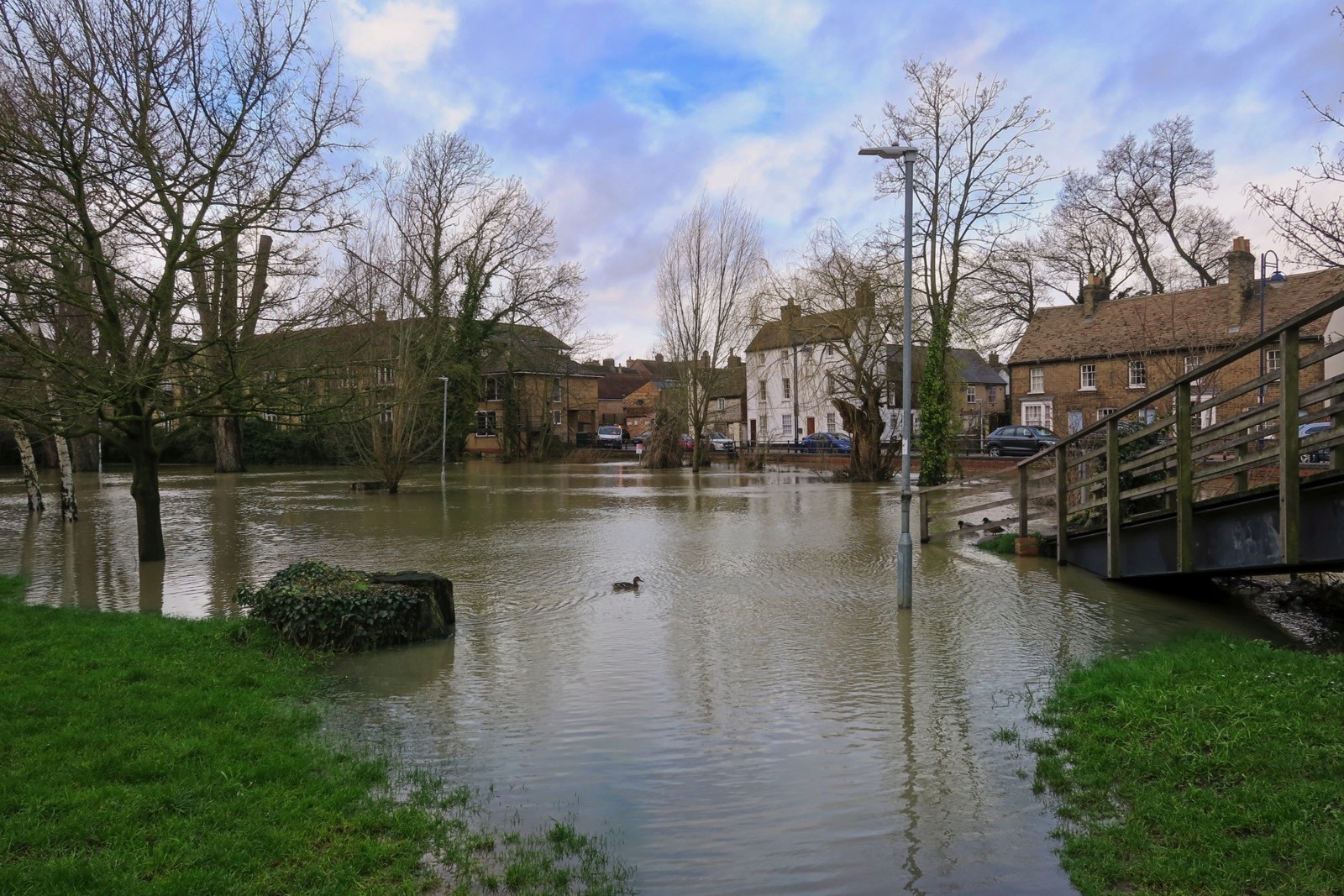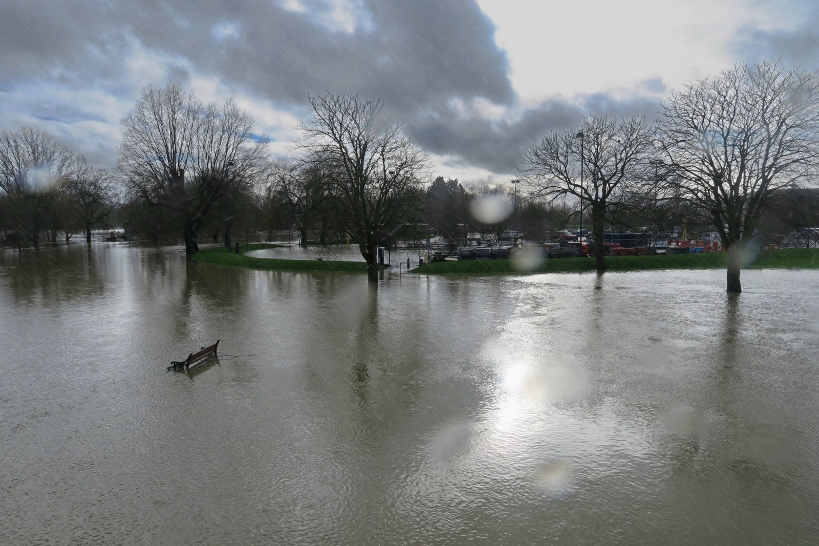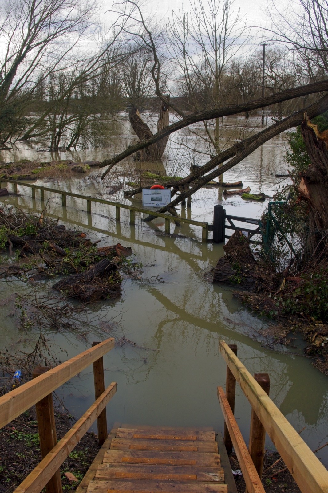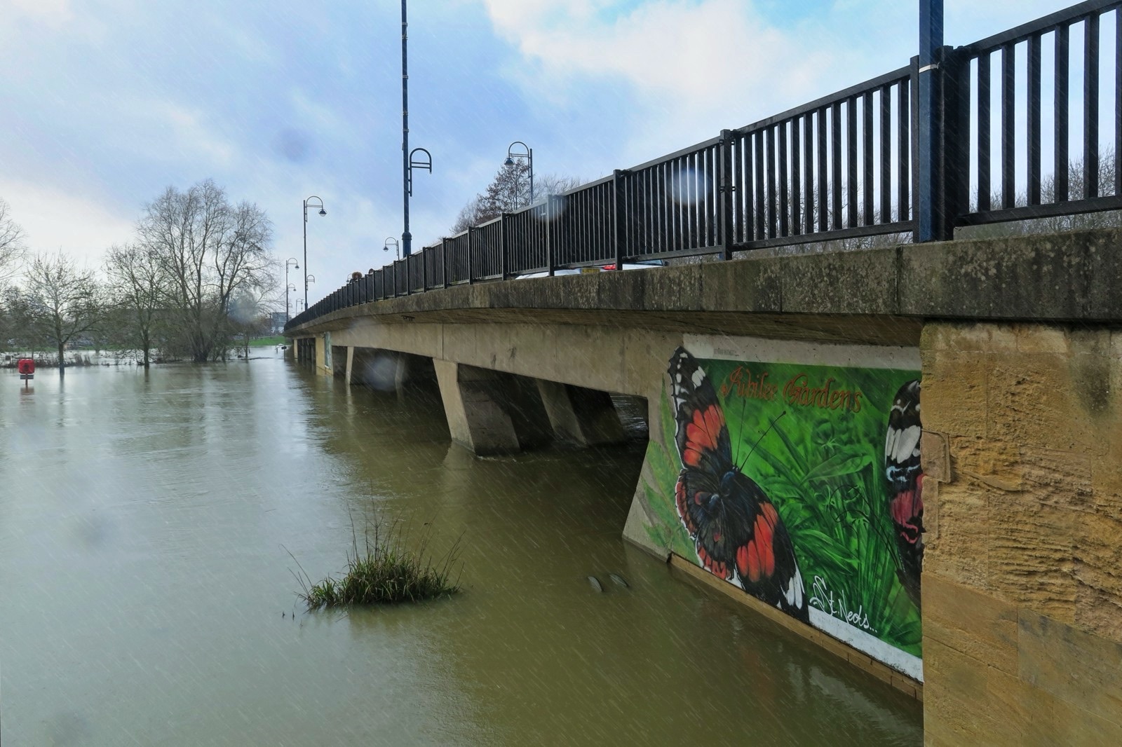 Yes we had a day of rain and now our second flood in a month. We are lucky that there is a flood management system in place for the town and I am personally lucky that I live a little bit above the flood plain (just). The water level in the main river is not quite as high this time but the level of Hen Brook is about as high as I have seen it as it drains local ground and this time we had more local rain than in January. Here are some snaps which can be compared with some from the January floods here. I did get a nice dowsing of rain while on the town bridge but managed to keep the camera almost dry.