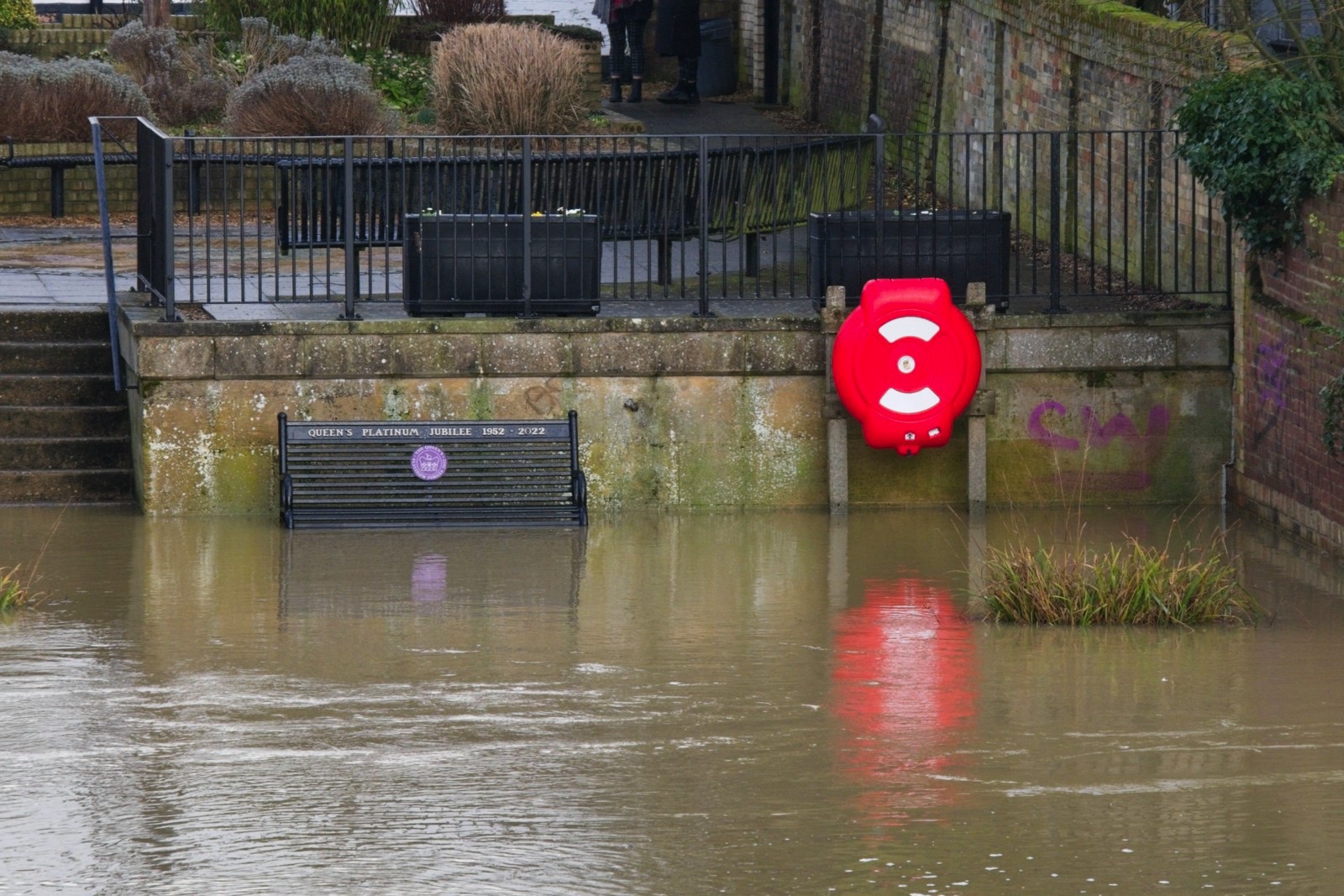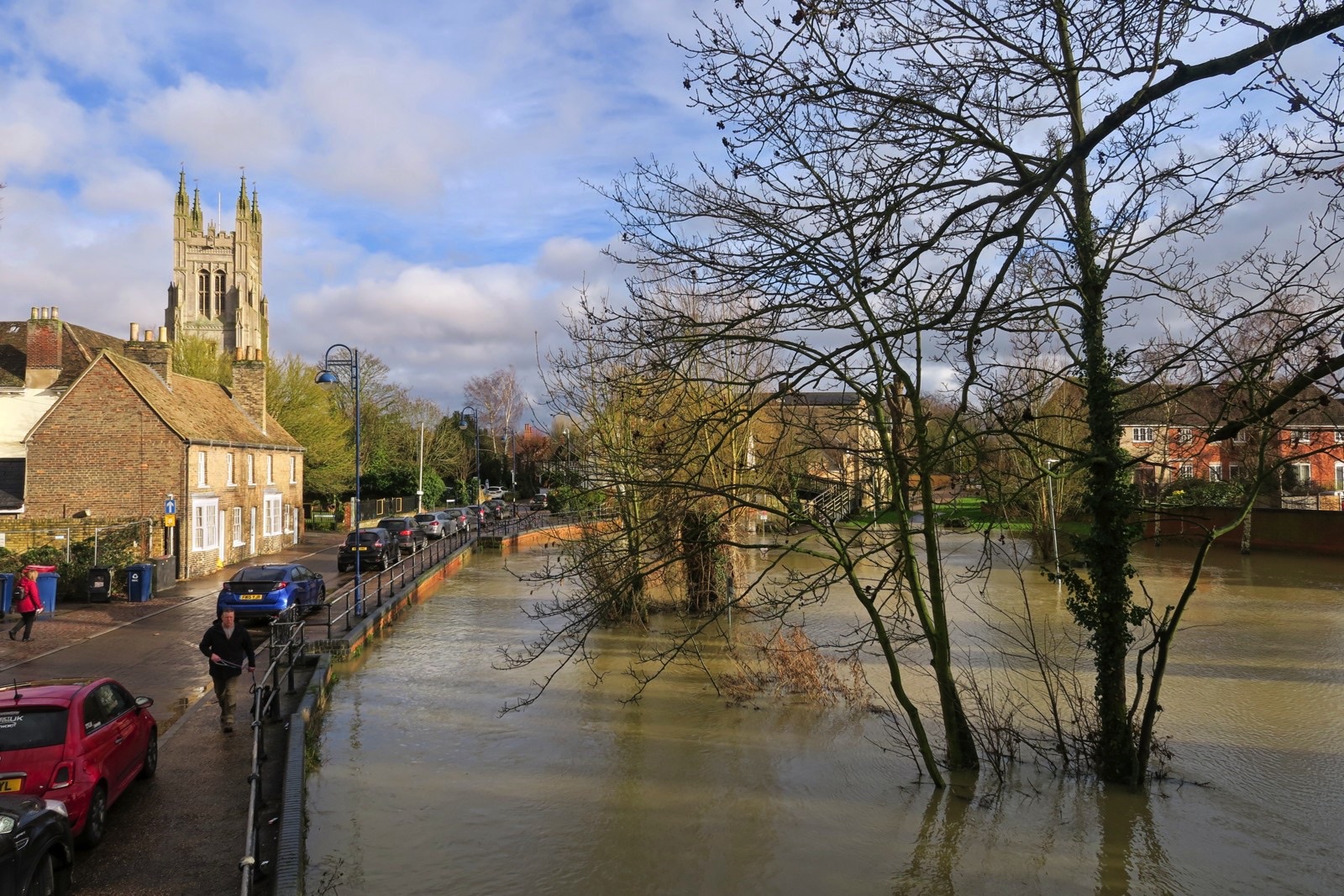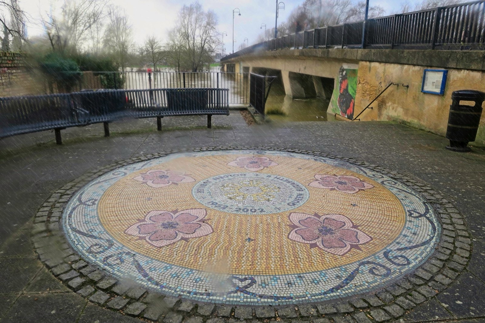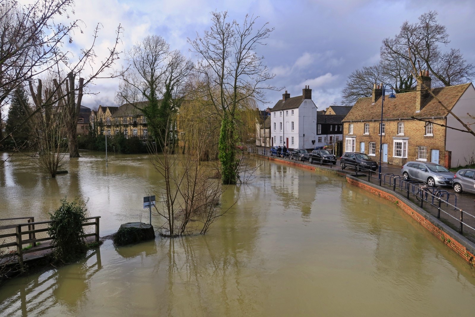 Yes we had a day of rain and now our second flood in a month. We are lucky that there is a flood management system in place for the town and I am personally lucky that I live a little bit above the flood plain (just). The water level in the main river is not quite as high this time but the level of Hen Brook is about as high as I have seen it as it drains local ground and this time we had more local rain than in January. Here are some snaps which can be compared with some from the January floods here. I did get a nice dowsing of rain while on the town bridge but managed to keep the camera almost dry.