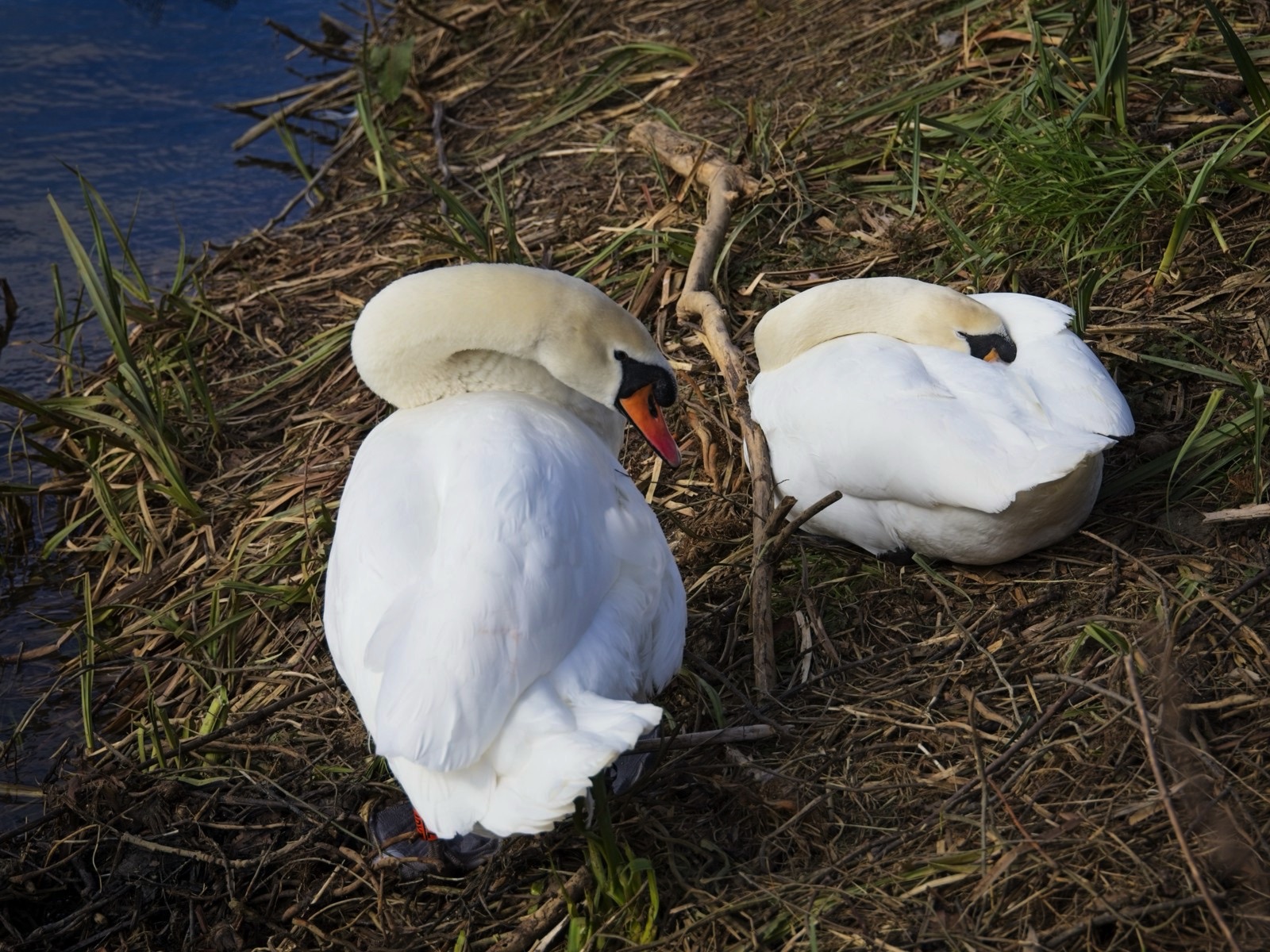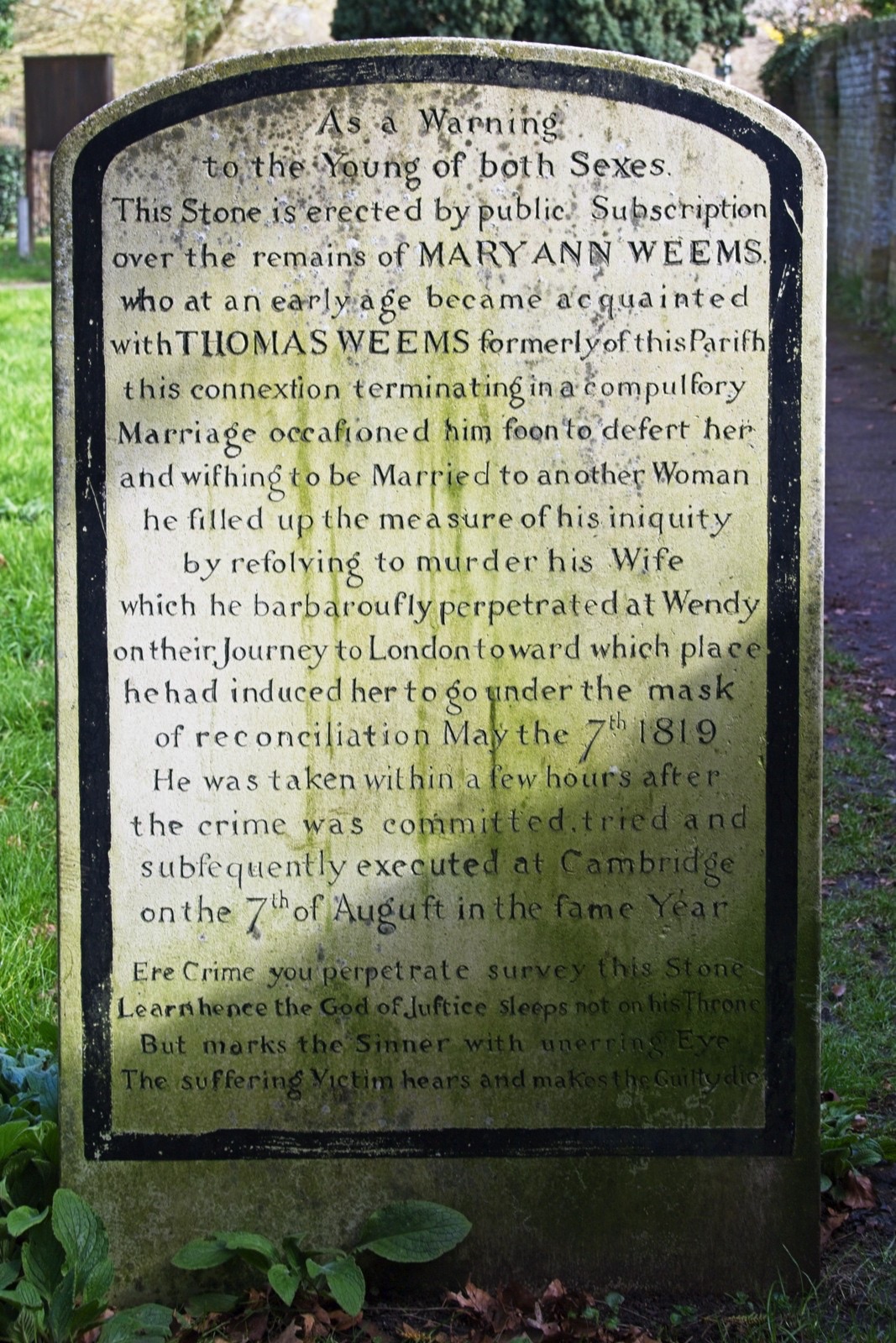 It was a lovely, mild sunny morning yesterday and I thought “I haven’t been to Godmanchester for a while”. A quick check of the flood notes confirmed that the river levels had dropped to around normal so off I went. My ‘normal’ walk around Godmanchester starts with parking along or near Causeway, heading over the Chinese bridge up river as far as the lock at Portholme Meadow (the largest in England). There remains evidence of quite extensive flooding on the meadow. My walk would then follow the little canal created below the sluice which was still running fast. While on that leg I chatted with a local chap who was feeding swans and he suggested I go over to St Mary The Virgin church where there was a fascinating gravestone. He remembered the story but not the unfortunately lady’s name, Mary Ann Weems. It was a good tip. A walk through the, overgrown in places, churchyard revealed many ancient graves and I managed to find Mary Ann’s. A salutary tale indeed. The mute swans are pairing up for the spring and don’t seem to mind that a potential nest site is right by Causeway.