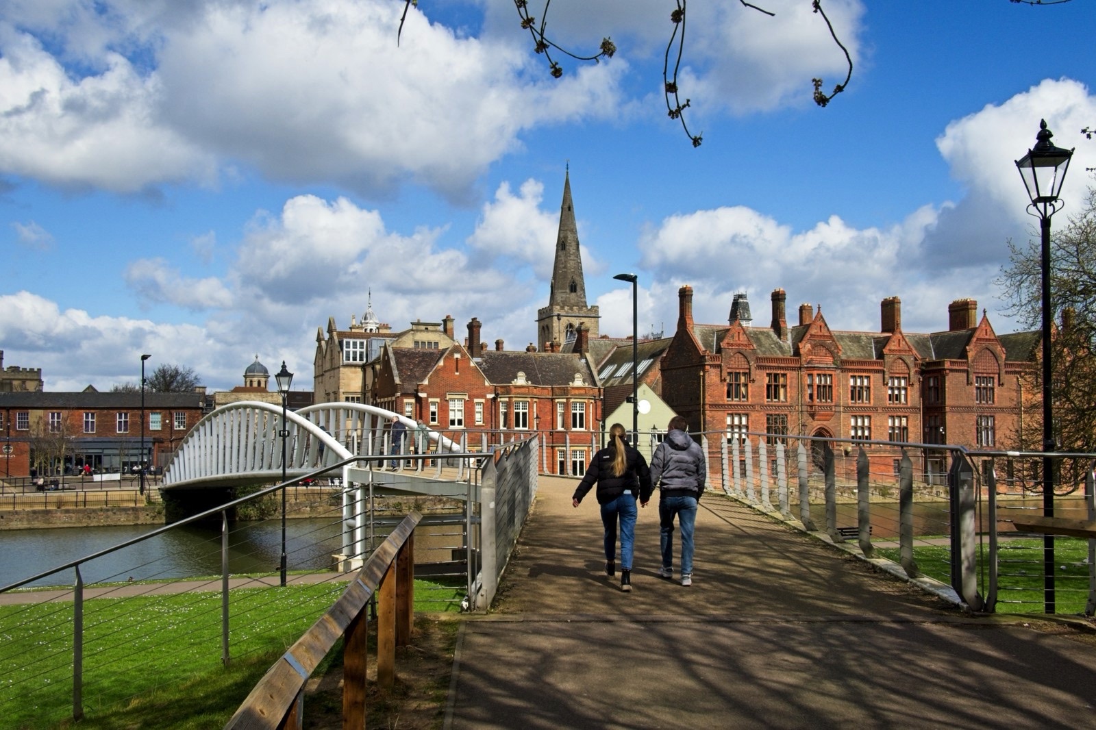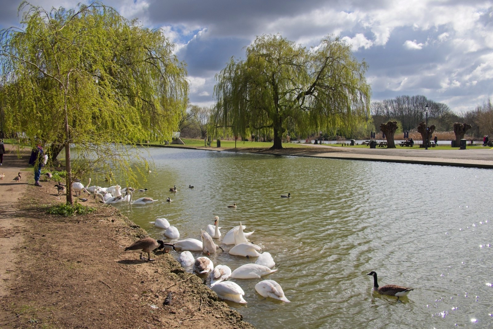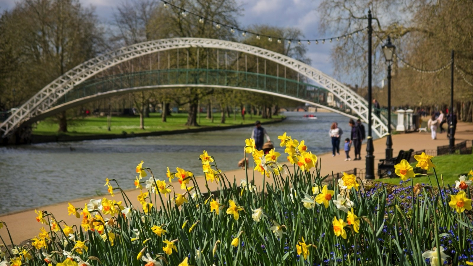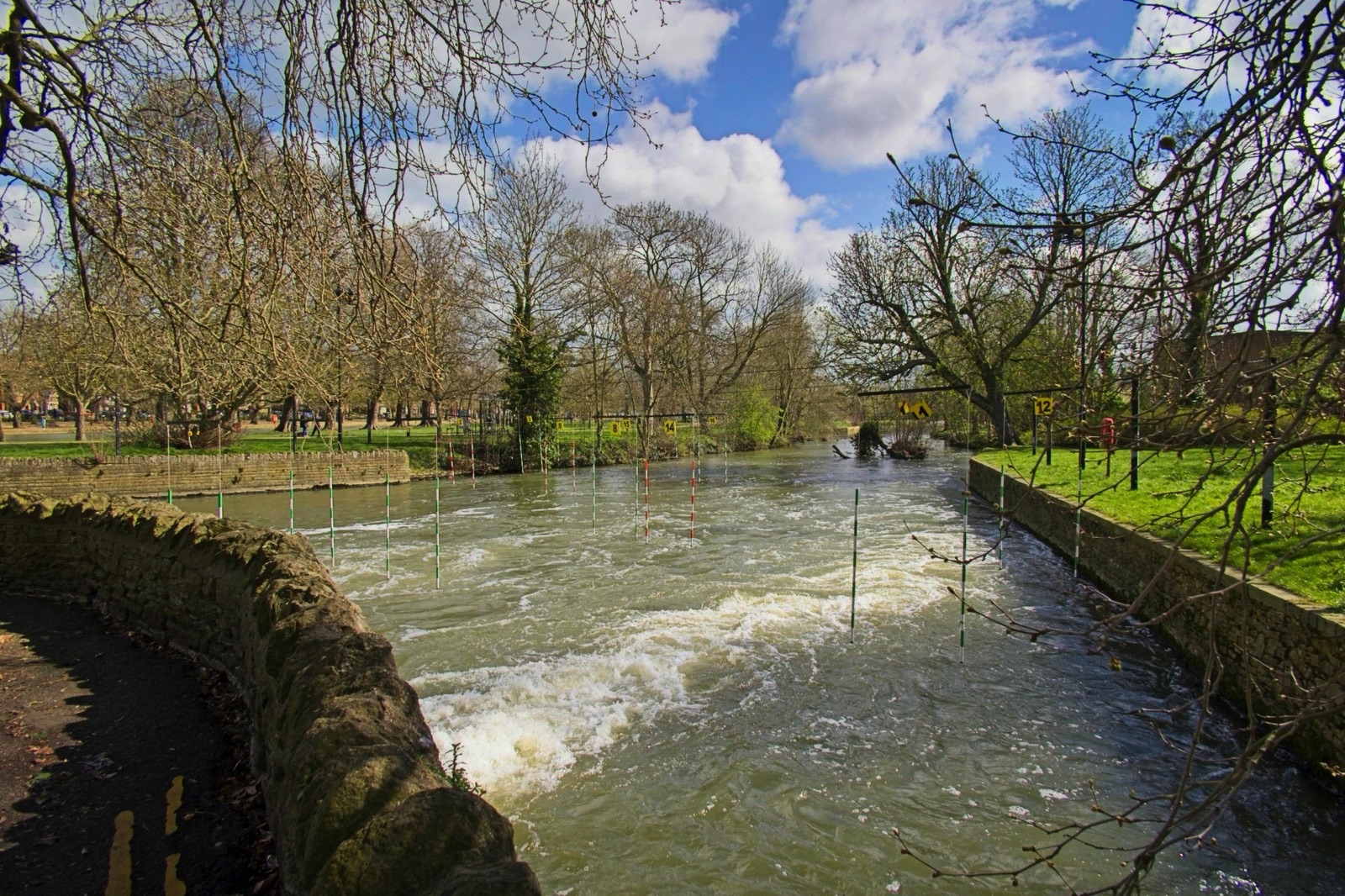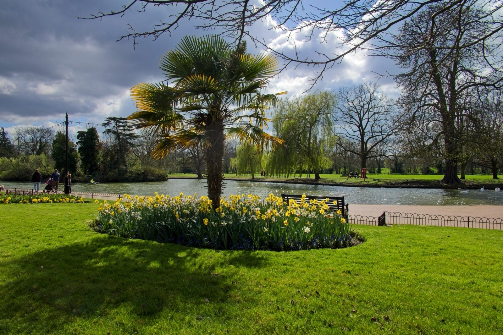 A sunny Sunday morning along the Embankment in Bedford makes for a lovely spring walk. The town always puts on a display of flowers through the year and the spring blossoms are popping out, including my first tulips of the year. I assume the gardener responsible for the tulips has been fired for allowing a rogue pink blossom in the orange bed. (I hope not!) I was pleased to see a few people out enjoying the day and feeding the swans. I have commented before about Bedford and the fact that a small provincial town has such a wonderful and expansive riverside embankment. The main river drops down to the South and this stretch along the Embankment is managed and used widely for rowing. There is an additional water sports facility at the weir where the river drops, if you like your canoe slalom, named for local boy Etienne Stott. He won a gold medal in the 2012 Olympics and his gold post box is tucked around by the town hall.