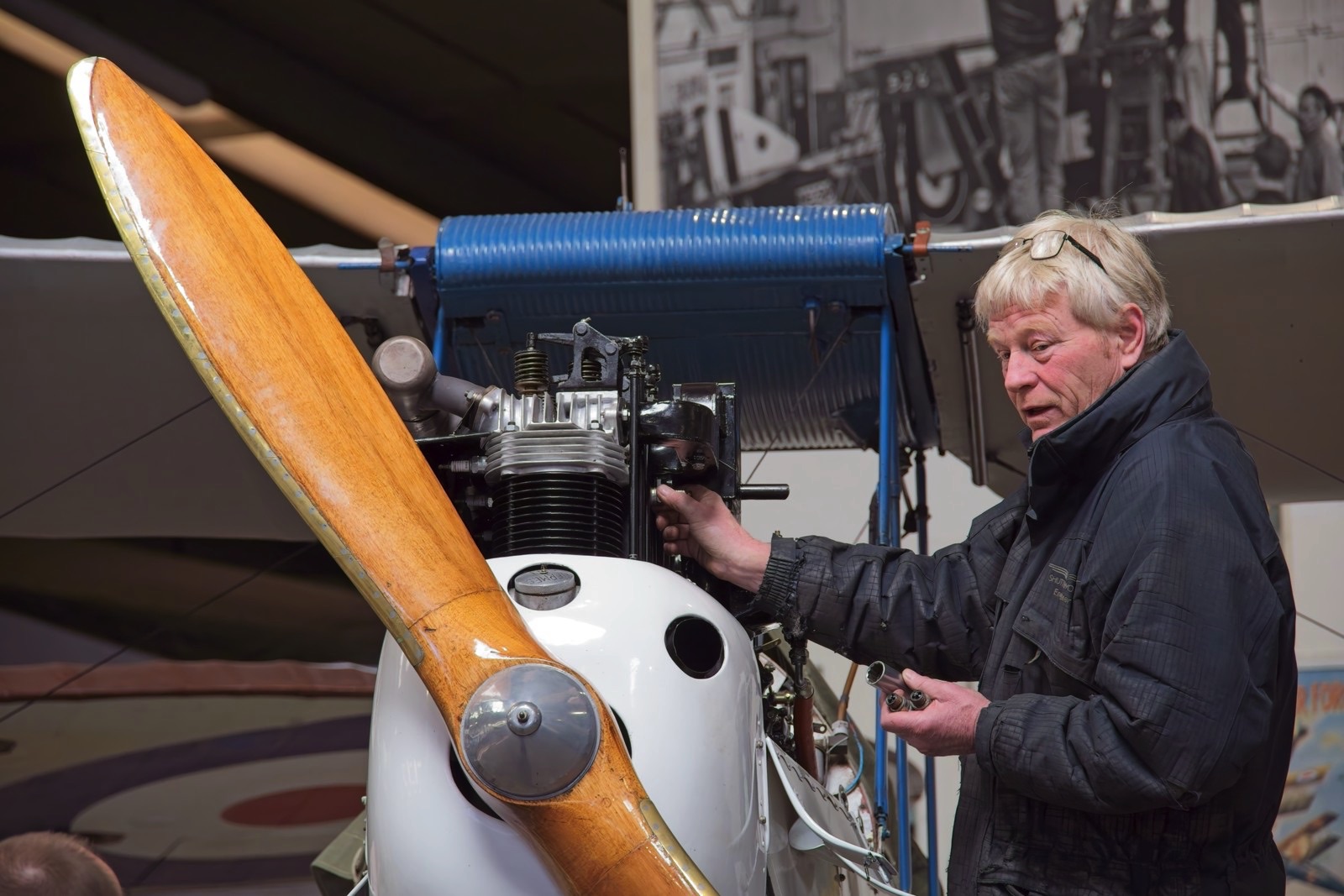 It has been a slow return after my dash home from Toulouse but all is going in the right direction so I took a quick walk at Old Warden yesterday. It was nice to be back in the Swiss Garden with its ever changing flora. It was also a pilot training day providing distant glimpses of the DH-88 racer and Avro 504k. I’ll finish with one of the dedicated engineering team working on th DH-60.