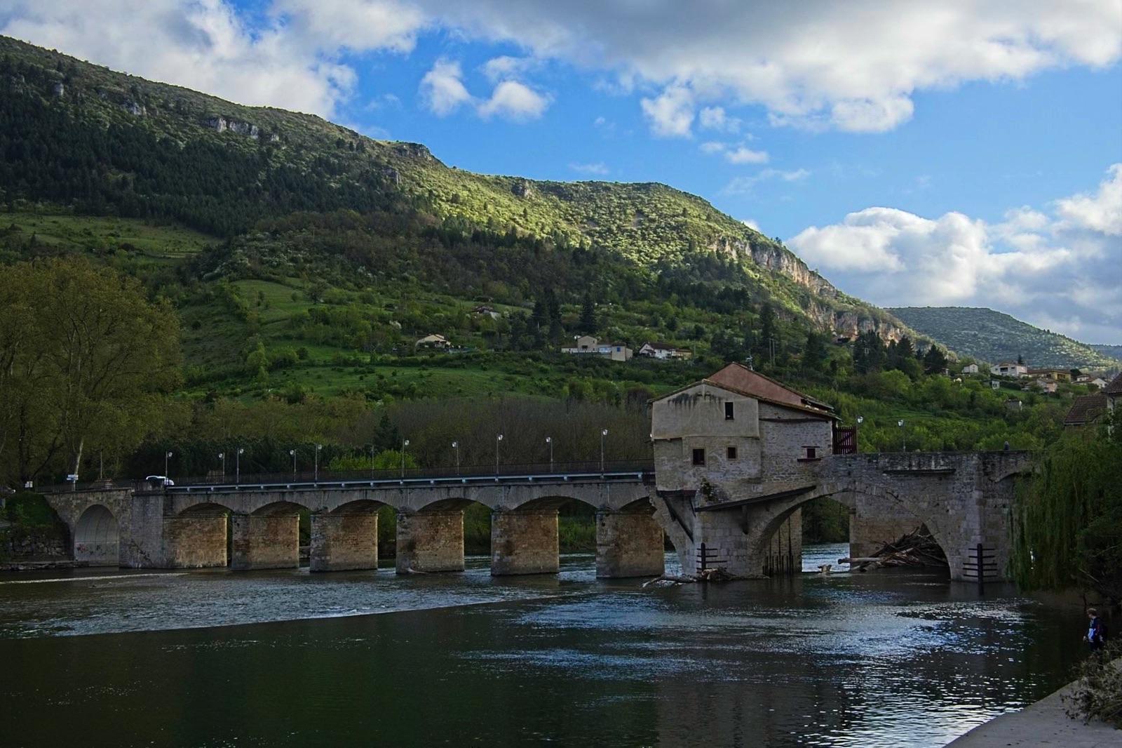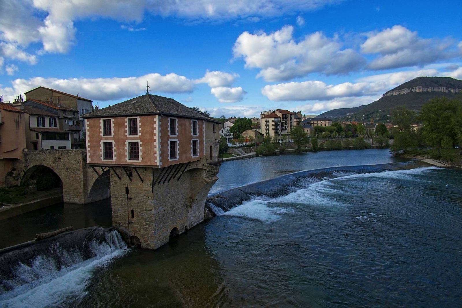 Here are a few shots in Millau on the river with the 12th century mill and the distant viaduct