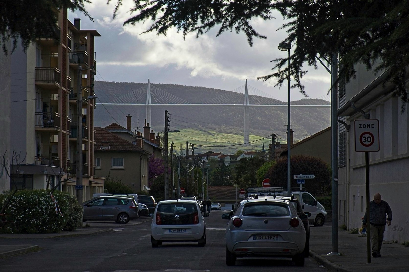 The early part of the day could have been any place as I rolled along main roads, bypassing all of the interesting places with a stop for electricity at a Supercharger near Rodez, serenaded by the sound of frogs on a nearby pond. I was able to do my civic duty helping a local Peugeot e208 driver get his car charged. He was looking for a way to use a bank card and when he asked me how the system worked I was able to explain in French that he needed the Tesla App, assuming this charger was open to non-Teslas. After a walk over to the pond to hear but not see the frogs, I got back and he was set up and charging and came over to thank me. A job well done. The reason for this uninteresting drive was to give me the afternoon in the Gorge du Tarn. I have passed it twice in the past but never entered so it was time to put things right. I have not included many photos as they all look pretty much the same, but I hope they give a sense of place. Sometimes you may need to look for a car or a person to help with scale. They will also give a false impression of the weather. Sunny and with broken clouds sounds nice but 9ºC and blow-you-off-your-feet winds made sure it was hat and gloves weather. It was wonderful to see this gorge and to ascend its 600m (almost 2000ft) side to get a panoramic view. There were occasional 3 point turns along the way. As with many places there were very few other visitors. I descended the gorge to Millau for the night in the shadow of the famous viaduct or as Kevin would call it a canny bridge. I had time for an early evening wander before dinner so have included a few snaps from around town. The headline shot is at Saint-Chely and its cascade an impressive sight.