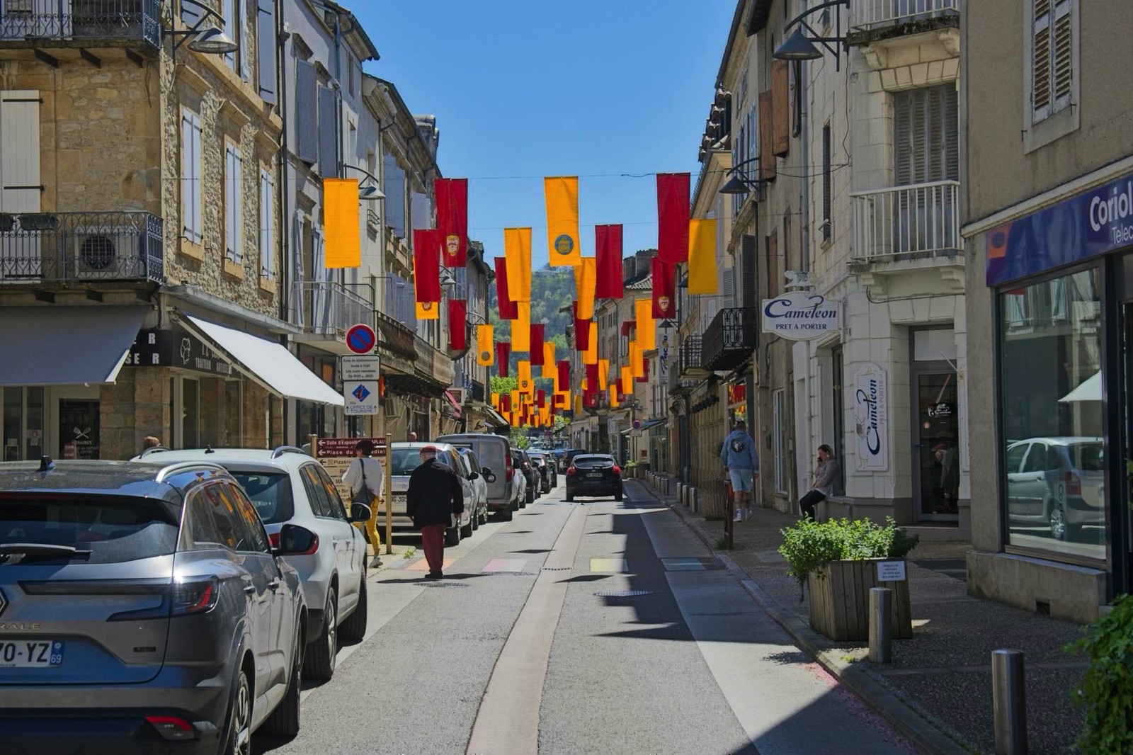 I had a selection of places of interest today from view points along the Dordogne to Medieval Towns, closed chateaux, a massive waterfall and a very big hole in the ground. I am not really a caves person but the highlight of the day was most certainly the Gouffre de Padirac. It is a 60 metre hole with a river running through caves accessed from the Gouffre. It is very well organised with a suitable audioguide telling the story of the discovery by Mr Martel and includes a couple of boat rides. Fortunately there is a series of lifts to get the lazy ones like me back to the daylight. It will take me a week to edit the photos when I get home so I have just picked a few at random, hopefully creating the right impression. I actually started the day at the medieval town of Martel, a coincidence. It was lovely to walk the streets in the earlyish morning while the temperature was still cool. That did not last! A couple of viewing points on the river followed and then I was denied at both Chateau Castlenaud and Chateau Montal as they both effectively could not be accessed between 11:30 and 14:00. I checked out the exterior and both are impressive. A lunch in St Cere got me ready for a little exercise at the Cascade de Autoire. It was hot and a bit of a climb but worth it. It was then into the pleasant all year 13ºC depth of the Gouffre before rolling back to Brive for a top off charge ready for tomorrow. I note that the aircon is both effective and efficient in the Tesla. After a less than fine dining experience in a pub last night I booked a table at a classic French restaurant for this evening and it was a fine meal with good wine but it took 1h45m for my three courses. I am not complaining as it was part of the experience shared with a cross section of diners but it means a late night to get my blog written, in fact the next day! The headline picture was taken during the descent into the lower reaches of the Gouffre de Padirac but I will start with the medieval town of Martel.