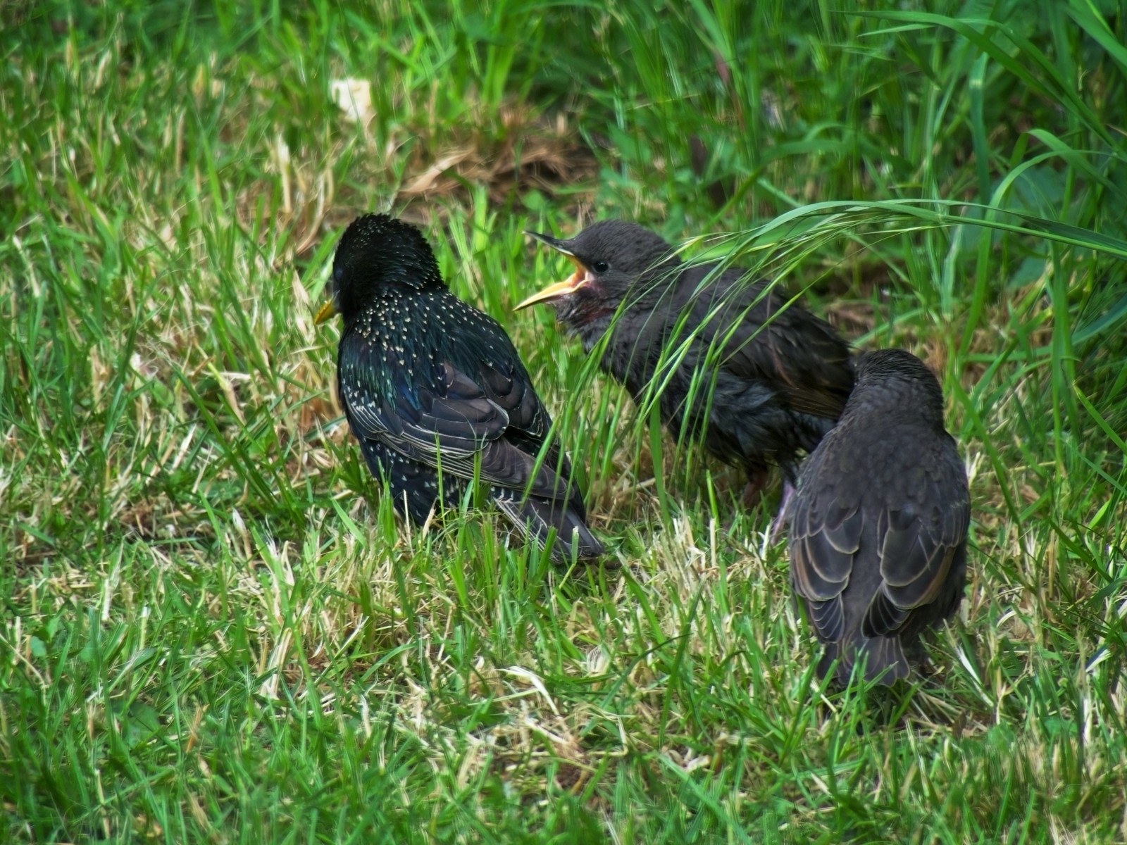 It was a sunny Sunday in St Neots yesterday and that brought out plenty of families. The mini-railway was doing a roaring trade. I questioned the lady driving an empty train and she told me as she passed that she was going off shift. The mallard families were also out and about. I will top of this post with some snaps from the garden this morning of the first of this year’s starling chicks getting feed by their parents and a rare visit from a jackdaw.