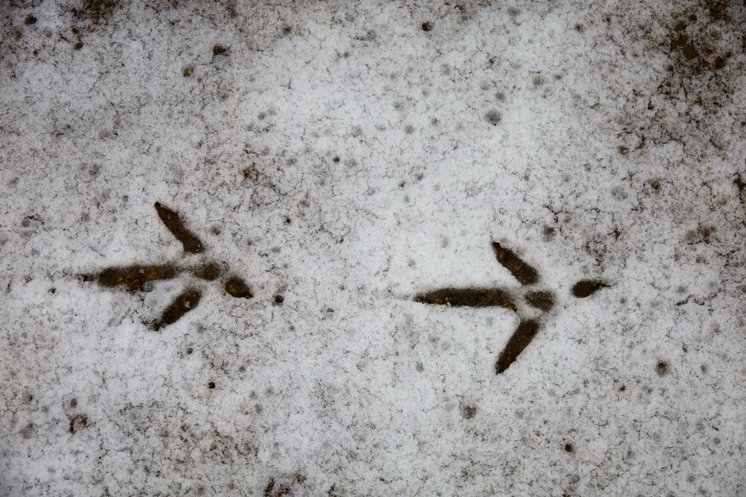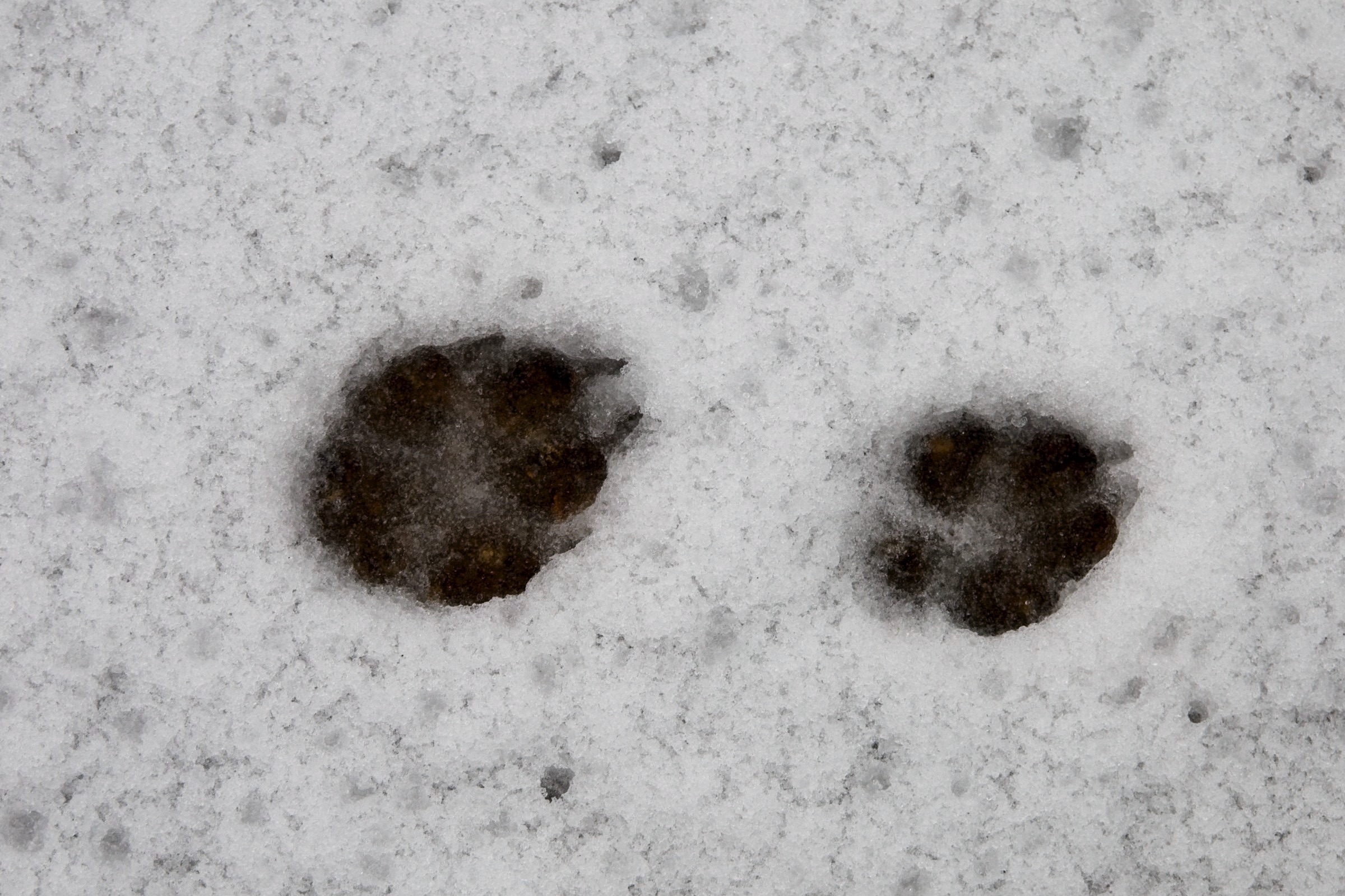 Winter came and maybe went a couple of nights ago. I followed the weather forecast and was aware that what snow we would get would not last, so I challenged my GoPro to capture the snowfall overnight. Follow this link to see what the GoPro captured. Not BBC standard but OK. The weather has been flipping back and forward from wild wind and rain, from a previous post, via crisp frost to a little snow and back to rain. This has all been in under a week. “Four Seasons in One Week”. Sorry to Crowded House. :-) Here are a few snaps from the Lodge in frost and the Swiss Garden as the rain washed the snow away. Despite the zero temperature there was a brave powered hang glider pilot. The snow provided a little treat. I was pretty much the first person into the garden following one of the gardeners and therefore could see and identify some interesting footprints before they were either walked over or washed away. They included the local peacock and a fox. I know it was a peacock as the gardener told me she had fed it a little earlier. I used an online chart to identify the fox prints.