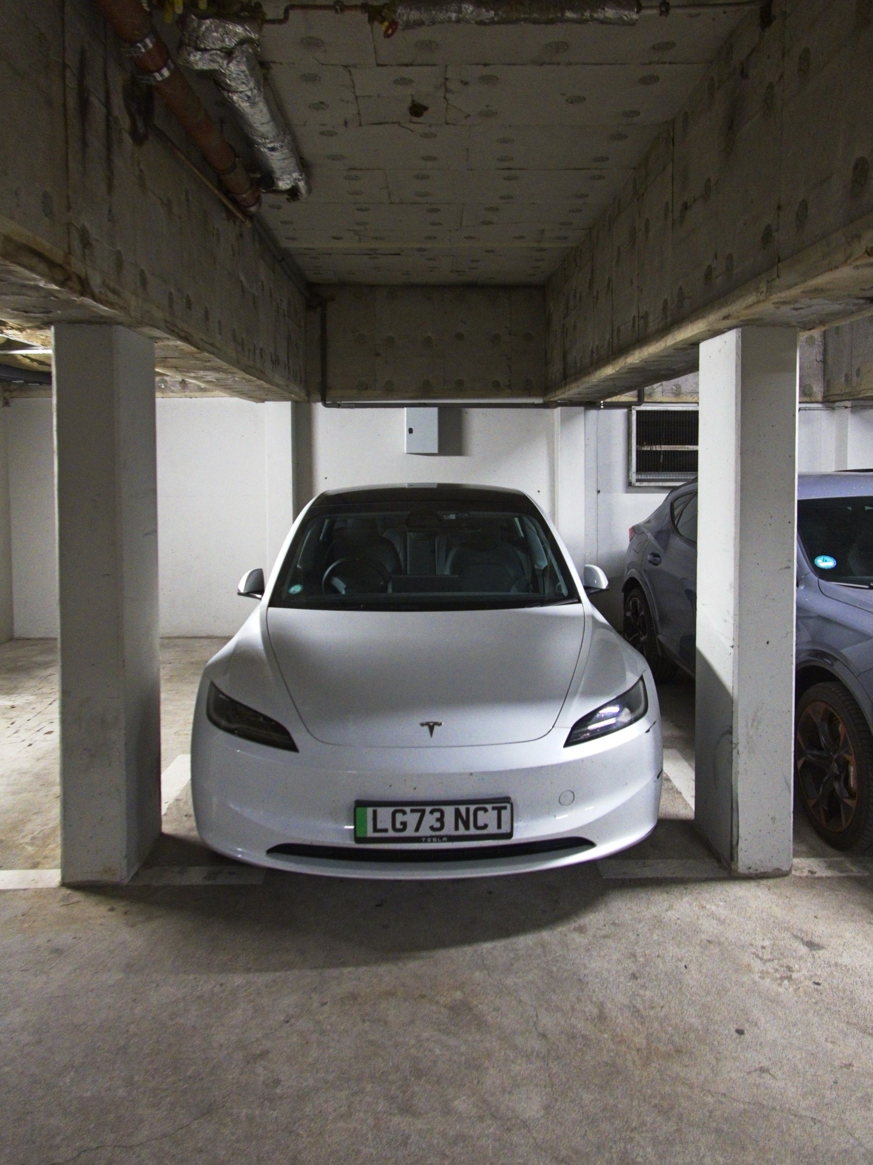 No sightseeing today just a steady autobahn drive from Aalborg in Denmark to Bremen in Germany. Apart fro serious roadworks near Aarhus and causing a major hold up around Hamburg it was a pretty easy run, but windy in places. The only place that I would like to have stopped for a photo op was at the Kiel Canal which allows shipping to go from the Baltic to the Atlantic. I assumed there would be a junction near the crossing and checked at my stop before Kiel. Wrong! I could not see a junction on either side of the canal so asked the navigation system to take me to see it. The response was not good as it would add 40 minutes to my journey. So I just saw it from the bridge with ship actually passing underneath. The pictures today kind of illustrate a road trip in an electric vehicle. I do not generally let the navigation system decide where I should charge as I generally have a route planned. Today I just let the system do its work. The software selects charging stations that will provide the fastest journey based on minimising charging time. The current software also allows me to set an arrival charge level at my destination. As I like to be charged for the next day the car added an extra charging station just 8 km from the hotel to ensure I would be ready for the morning. The total journey was 572 km which took 8 hours and 19 minutes of which 56 minutes was spent charging. Without the top up for the morning the charging time was 35 minutes. The first charge was long enough for me to walk to the adjacent McDonalds for a coffee and the toilet and back with a few minutes to spare. The second was a “sit in the car and have a snack” as the adjacent shopping centre seemed abandoned. There were also a couple of comfort stops at rest areas. I also took advantage of a quiet stretch of Autobahn to let the Tesla fly. It just effortlessly accelerated to 160 kph (100 mph) and would have kept going. It felt completely stable and eerily quiet. Noise level used to be a good indicator if I was going too fast but not in my Model 3. Here are a few pictures which illustrate the variety of locations where you find Tesla Superchargers plus a few from the road. I mentioned roadworks and around Aarhus they stretched for about 25 miles with an 80kph speed limit which was easy to keep up to. It was like they are building a completely new road. The headline image is from Aalborg, so that is Christmas sorted out. :-) The other pictures are captioned apart from the final one where the words of John McEnroe “You cannot be serious!” come to mind. Having to fold the mirrors to park the car in the hotel car park is a little different. From entering the car park my car tells me it took 5 minutes to manoeuvre the car into this spot. It required a 57 point turn as behind the camera, close by, are other spots the same but occupied by other vehicles.