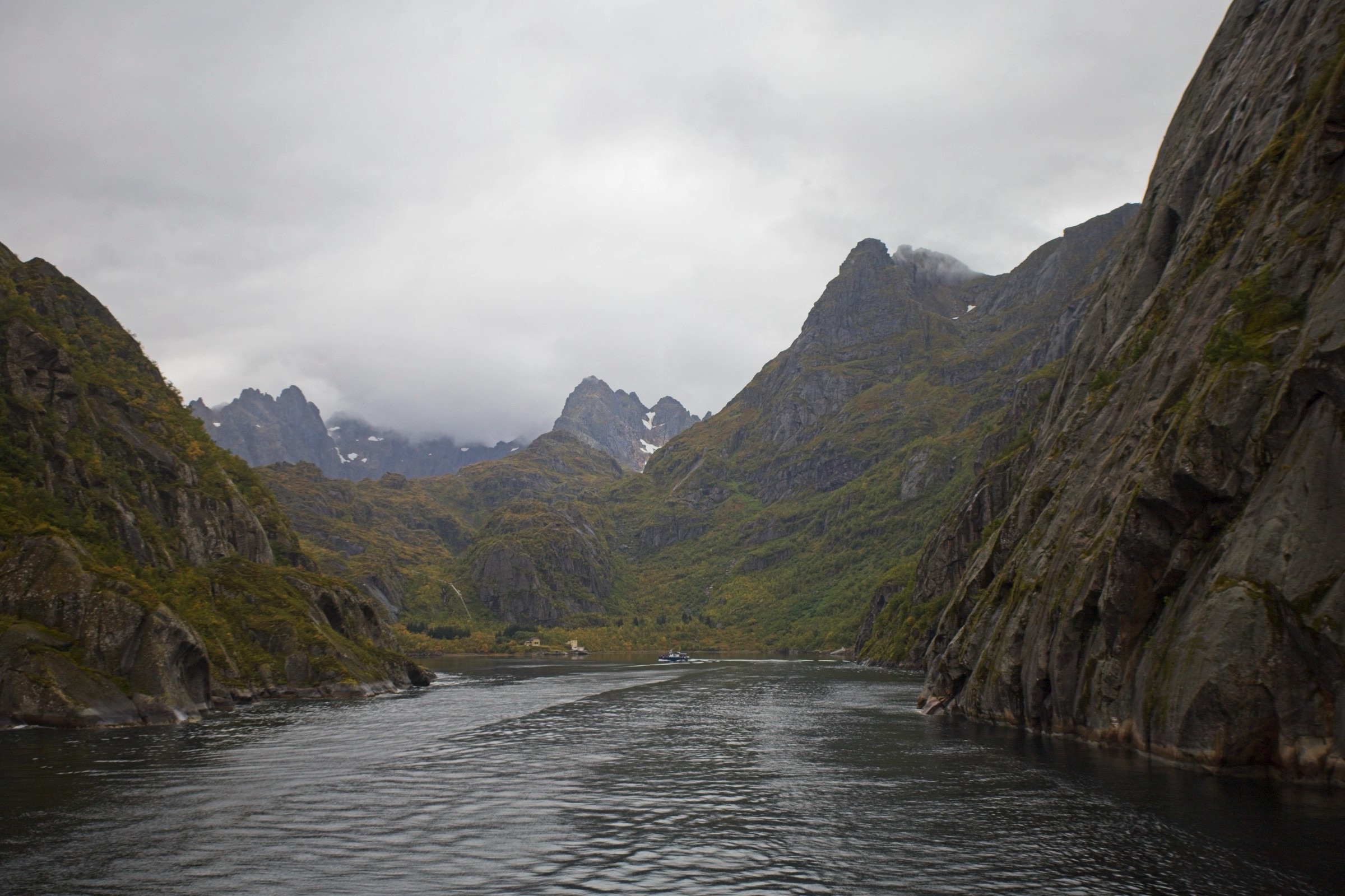 And here we are in the amazing Trollsfjord. It is much tighter than it looks through a lens. The ferry has thrusters which allow it to turn on the spot, without them this would not be possible and the weather has to be kind.