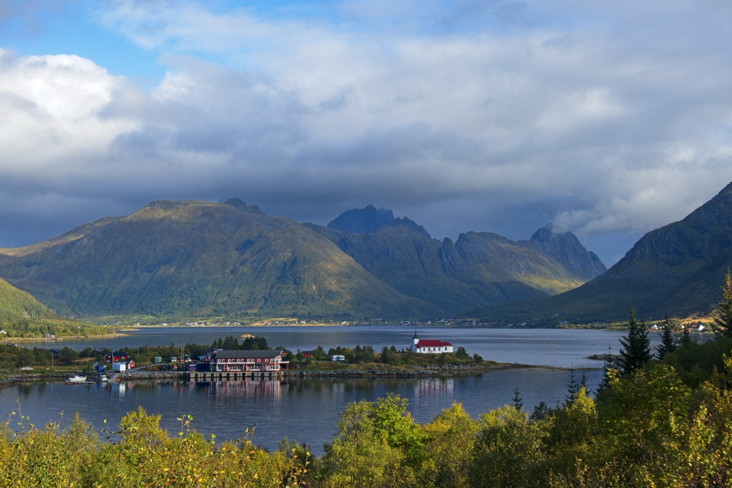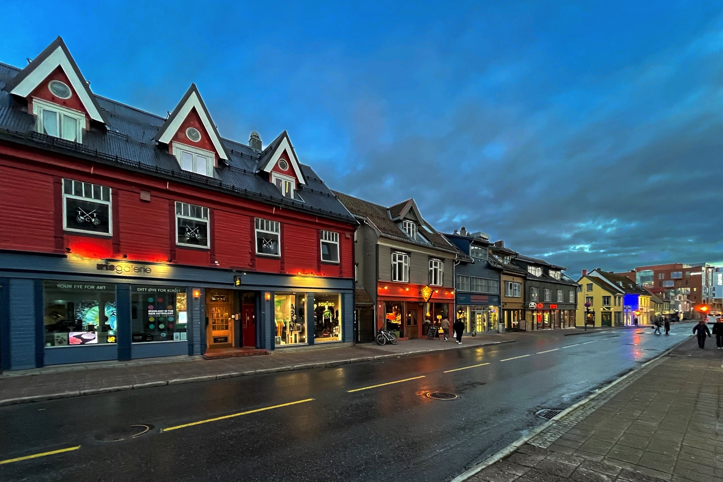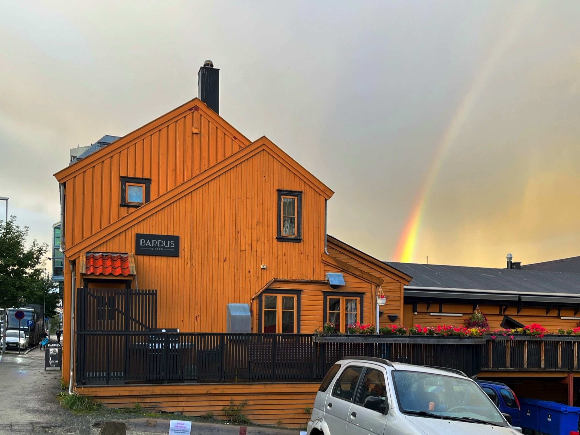 Today has been a driving day with 493 km to travel from Leknes on the Lofoten Islands to Tromso almost 70 degrees north and the furthest I will go on this trip. I generally avoid traveling along a road in both directions, at least for journeys of a decent length, but I had no option today. There is only one road on to the islands and therefore only one road back. In today’s case there was a silver lining. When I went to the islands the weather was awful with almost no oppotunity to see the scenery. That meant that my observation of the eastern islands was confined to the road itself and images of mist and rain. I have included some pictures of what I missed on Wednesday, like the headline image, and now I am pleased I had to return along the E10. I drove almost the complete journey from Wednesday to within walking distance of Narvik before heading north for another 216 km. I had the pleasure of realtively empty fast roads with occasional showers and a rainbow along the way. There were autumn colours to enjoy with the birch leaves turning and I can confirm I am now in the arctic. The air temperature ranged from 8 to 11C for the run north and the heating was on in the car for the first time on this trip. Here the hotel is in the centre of Tromso and I was directed to the adjacent parking. It is genuinely under ground in a series of tunnels and galleries and appears to stretch for miles. Probably an exaggeration! It is pretty clever this high in the arctic as it will limit the impact of ovenight cold on most vehicles. I think it is acually heated. Anyway here are a few pictures starting back on the Lofoten Islands, six including the headline image. You can compare the church to the more close up view from Wednesday. There is even a ship wreck and, a feature of the islands, crystal clear water. The next three are from the road north. The final four photos are here in Tromso, including the car park, rainbow over my dinner spot, an excellent bistro, the library across the street and downtown Tromso on a Friday night.