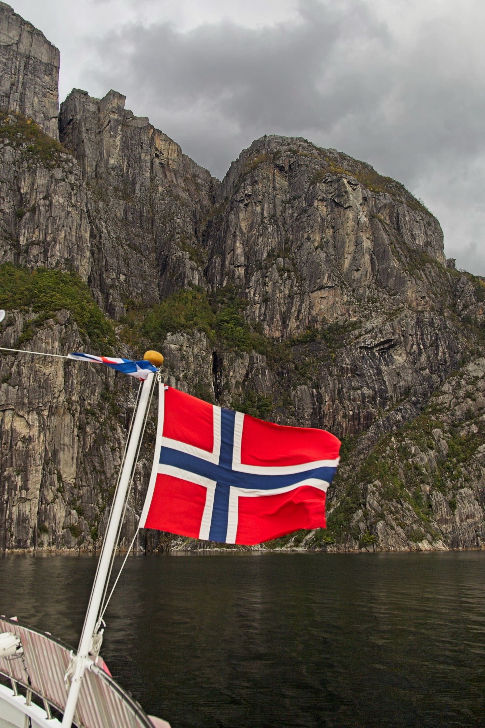 I had an imagined day climbing the Pulpit Rock over the Lysefjord but over the past few weeks it has been clear that I would not manage a 4 hour hike, climbing 1500 feet both from energy levels and leg fitness but also going 4 hours without a comfort stop. I chose to do the next best thing which was to take a boat to the Lysefjord and see the Pulpit Rock from 2000 feet below. The additional benefit was to really appreciate the scale of this fjord. The three and half hour boat ride with over half an hour exploring the fjord was exceptionally comfortable with a relatively small number of passengers on a pretty large electric catamaran. The boat departed at 10am and we were back in dock about 1:20pm leaving plenty time to explore the local areas around the harbour including “Gamle Stavanger” literally Old Stavanger. The plan was not a complete winner as the intermittent light rain that we left when we headed out was still around when we got back. A coffee break when the rain was heaviest left me thinking, “back to the hotel and edit my photos”. I mentioned a couple who I met on the funicular in Bergen who were from central Asia but now resident in Stavanger. They recommended the fish soup in the Fisketorget (fish market) as, in their opinion, it is the best in Norway. I managed to get a table which was great but a little easier being a Monday night, had the fish soup as a main course and it was excellent. Being part of the fish market the soup is not the same each day. There is a basic creamy broth and vegetables, with always prawns but the fish depends on the catch. The waitress listed the fish but I really only caught ling and halibut out of about four varieties. Most were typical white fish but some pieces had their pan seared skin on adding hints of crisp texture. A nice Sancerre was an ideal accompaniment. So Stavanger has provided me with a quality fast food burger and now a little fine dining. The headline photo was unique to me as everyone else had returned to the cabin to relax on the way home but I wanted the image below so waited. Someone made it to the Pulpit Rock 2000 feet above me. We stopped a few times along the way including at a decent waterfall being captured by everyone. Another stop was at the vagabond cave. The excellent and not intrusive commentary in English and Norwegian explained that they were criminals and this was their hideout. When the police came they escaped up the rock face! We also met a couple of goats who amazingly were waiting for us. Could it be the food that the crew threw to them? See if you can spot them in the second picture showing the full cliff. I’ve added a couple of images giving a sense of the fjord as a whole and then three of life on board. Both on the way out and the way back we were surrounded by eider ducks near the huge granary and a couple of males just made a dash to safety as we passed. The remainder of images are from Stavanger including the petroleum museum made to look like an oil rig. The white wooden buildings are typical of Gamle Stavanger and, of course there is some wall art. The great stone frontage is of Stavanger Cathedral, built in 1125 and the oldest in Norway. Of course there are trolls on security at some shops. Number 18 Skagen was a lovely coffee shop with a variety of old homestyle furniture and a decent cup of coffee. The last three photos are from this evening. The Fisketorget is on the left in the first with the bars along the other side. Irish pub anyone? The little boy looking after the ducks may not be aware there is an owl waiting for him to leave. Every town should have an illuminated fountain. One feature you cannot capture in a photo is the sound of a small murmuration of starlings just landed in the trees close by to settle for the night. I might post a little video later, just for the sound.