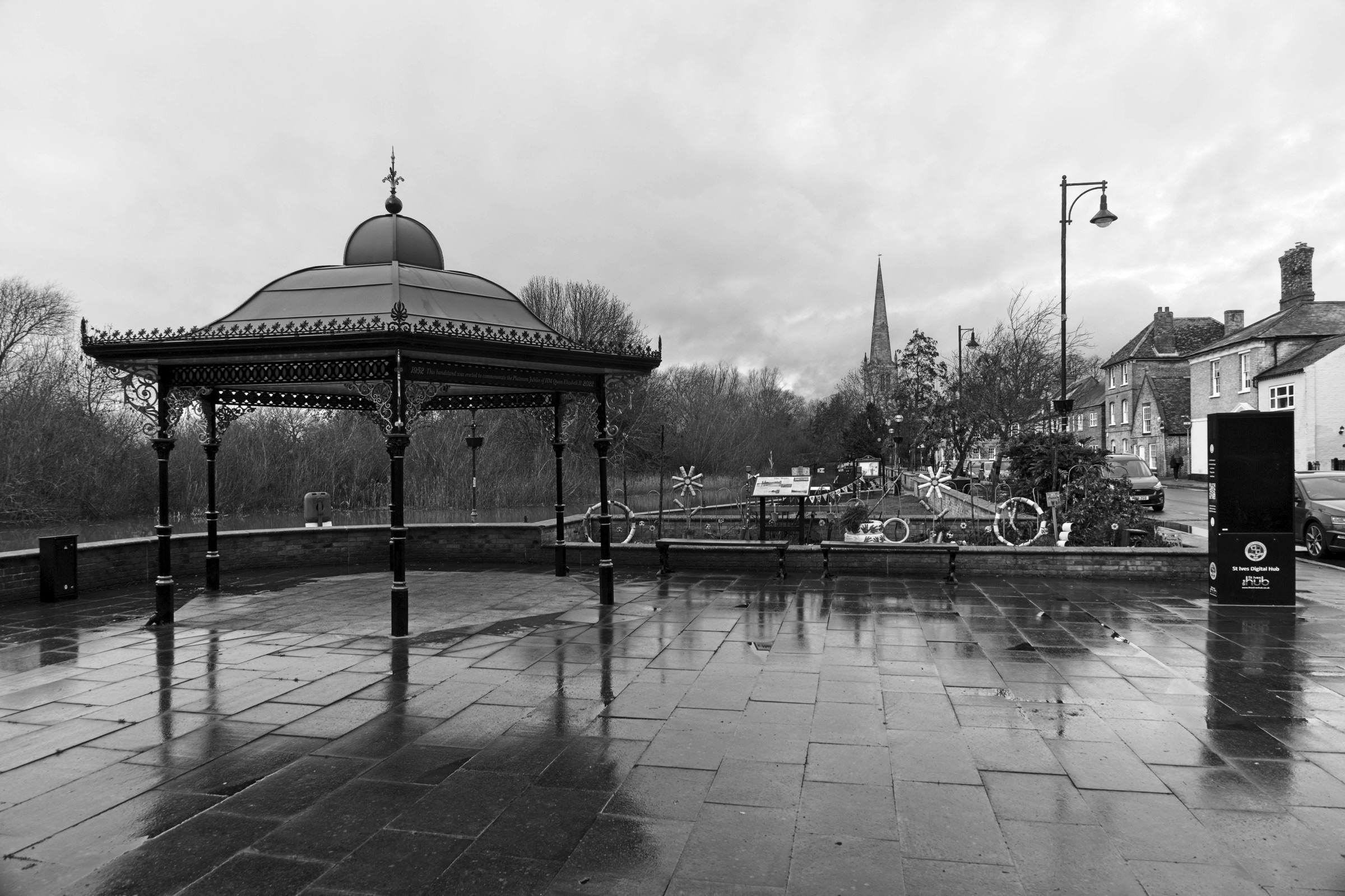 I am not routinely a monochrome photographer but sometimes the location and the light calls to me to go black and white. A visit to a routinely flooded day in St Ives was one such occasion. Here are a few snaps from yesterday. I will finish with a colour pop monochrome of a surprise visitor, a black swan. Most likely it has escaped from a local collection as it is a long way from its natural home.