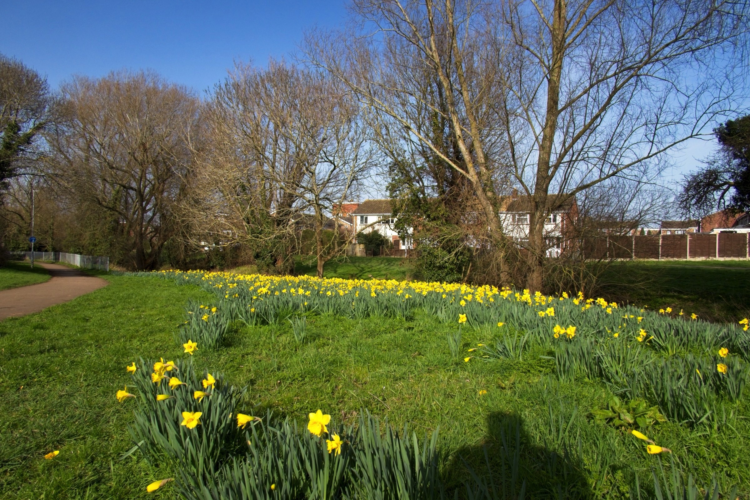 It has felt like spring this week and I am sure I can see the grass growing in my garden! A walk in the Swiss Garden presented a great view of one of the local red kites as it swooped through the trees. On the smaller side a 7-spot ladybird had chosen a gate lock as a place to sunbathe. The crocuses (maybe) and daffodils are popping up everywhere, including along the path that follows Hen Brook in town. With the sunshine comes nice lighting effects, through stained glass windows and around aeroplanes in the Engineering hanger. I am not counting chickens as I have certainly encountered winter in the past until around Easter time.