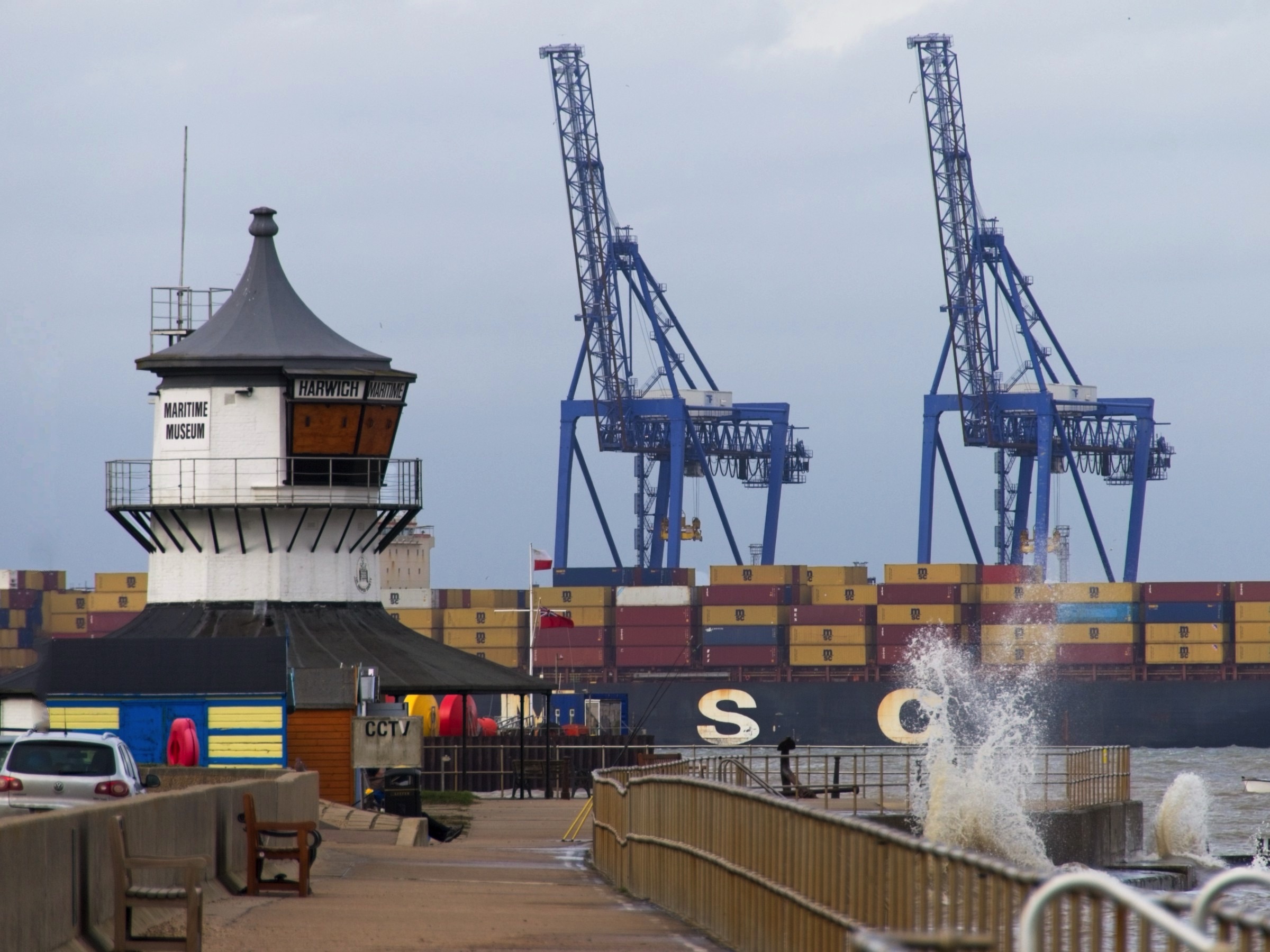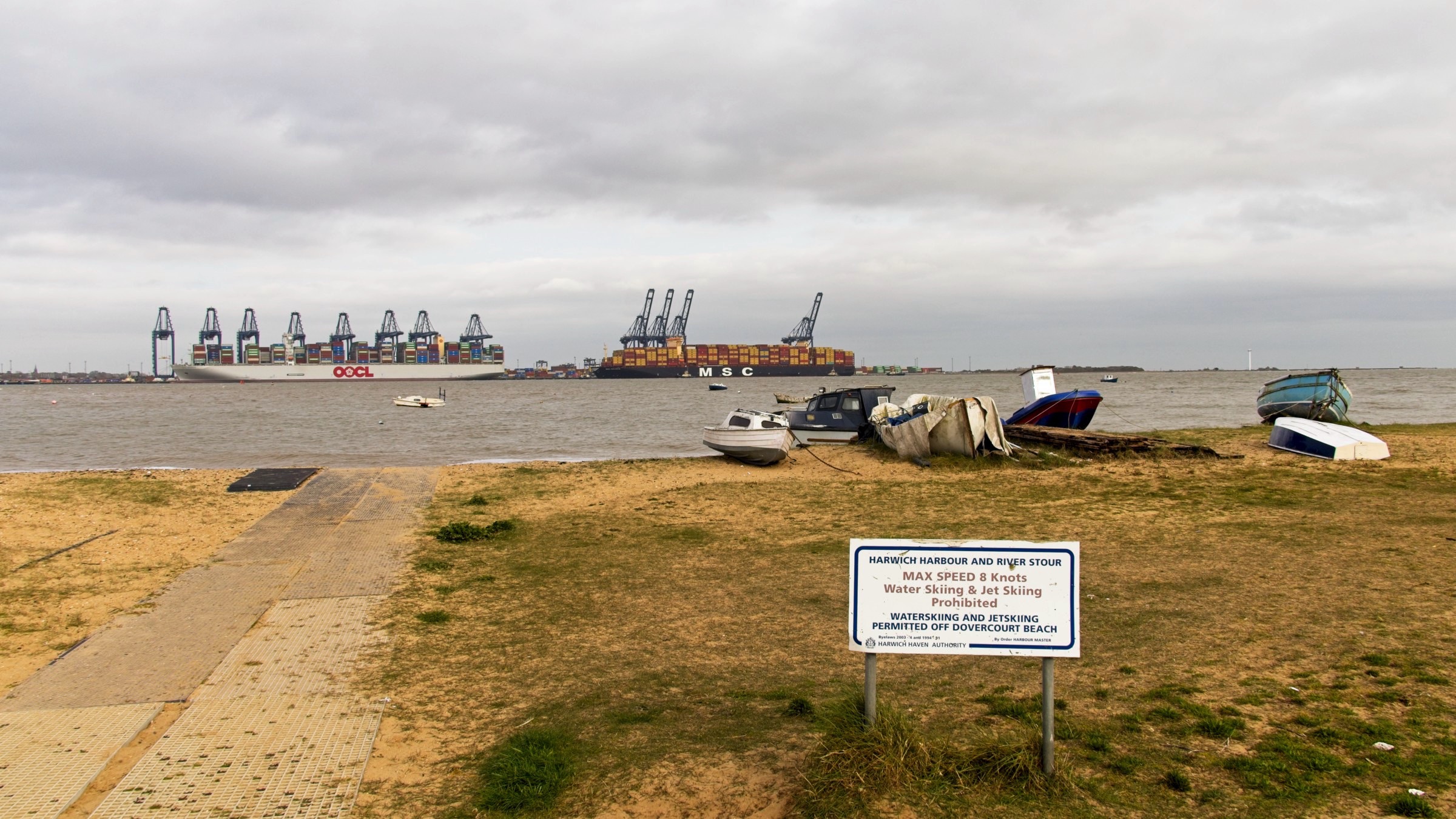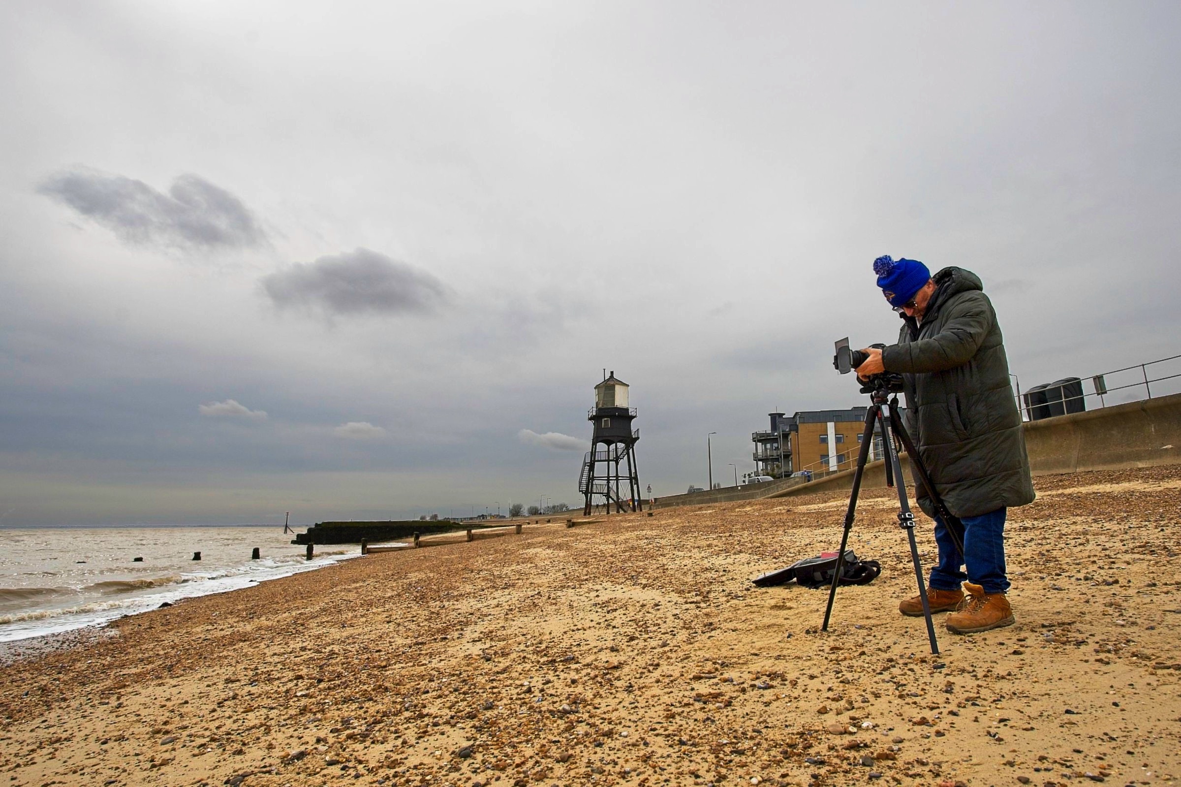 Time for a visit to a new place, for me, at the seaside, Dovercourt in Essex. I have been close by when taking the ferry from and to Harwich which is essentially the same location but on the other side of the peninsula. My pal, Paul Langshaw, and I talked about a visit at the end of last year with a specific focus on the ‘leading light’ pair of lighthouses, built in the 1860s and used up to 1917 to guide ships into the Stour estuary to the port of Harwich. They are in serious need of renovation which should happen this year. Paul was keen to take some ‘fine art’ photos using very long exposures creating soft diffuse water and sky. You can see Paul above and immediately below working his magic. From Dovercourt beach we grabbed lunch in a local cafe where a chap about my age suggested we take a look at Ha’penny pier on the front in Harwich. An excellent tip. We watched a Trinity House servicing boat manoeuvring into its dock, handling an increasing South West wind. Lot’s to see. We then wandered back to the beach with plenty more to see and photograph including the view across the Stour to the container port at Felixstowe. Then it was time for a final ‘fine art’ stop at Dovercourt with the channel now just past high tide. A fine day out. I should note that Paul and I could be considered a model for the world. Paul uses Nikon cameras and I use Canon but we can still get on without any abuse or fighting. :-)
