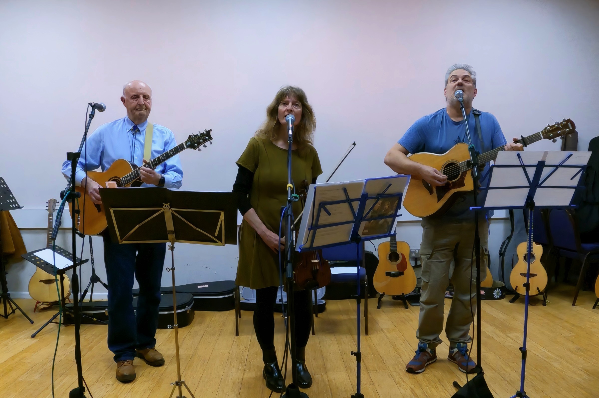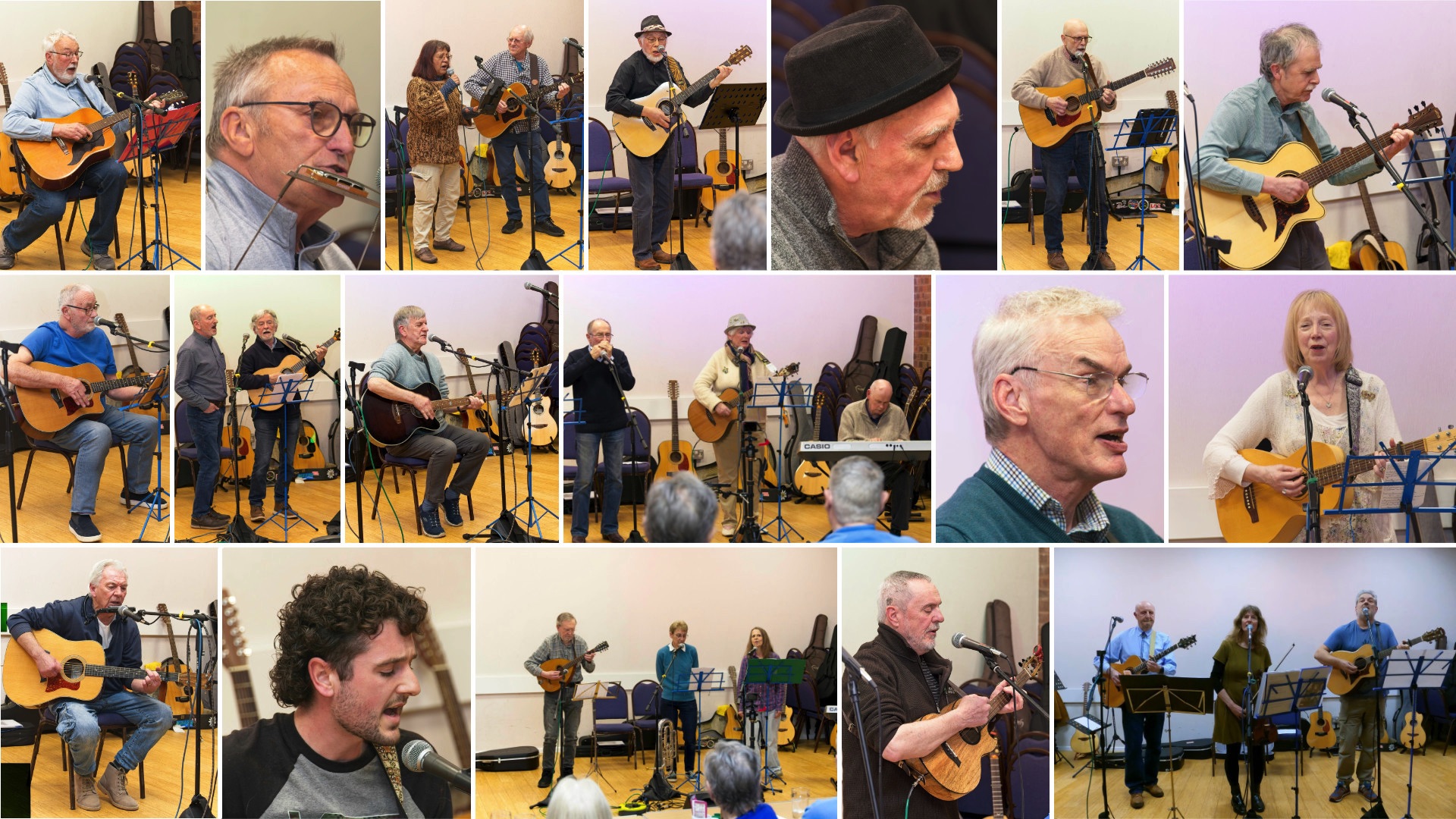 Welcome to the monthly music session in Moggerhanger Village Hall. The evening was incredibly well attended and quite a challenge for Richard to manage. No tech problems and no missed performers this month although we had to postpone the end of evening thrash till next month. I have edited the video in two parts, as on the night, and they can be found here. I have added a couple of photos below to set the scene and a more comprehensive set can be found here. It was a fine evening, and great chance for the Moggies Band to play for the first time since December.