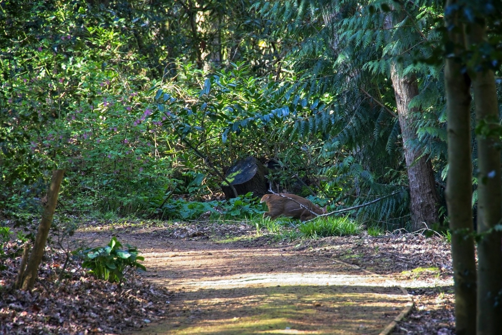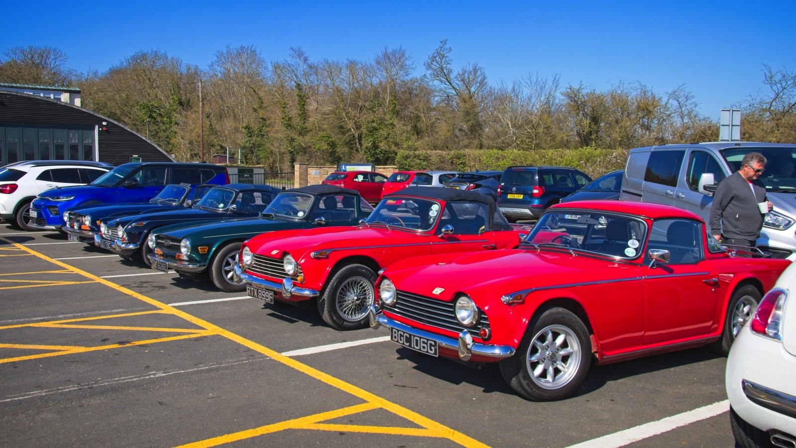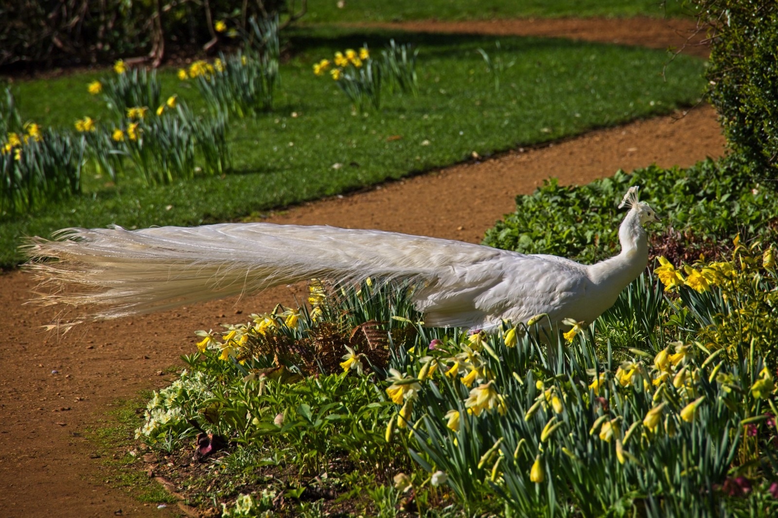 We have had some lovely spring weather on a couple of days recently. The muntjac above was at the Lodge and the one below at the Swiss Garden was a little more keen to forage than to watch me. The cherry tree at the Lodge is in full bloom and I used to enjoy it close up when I used to work at a desk under the clock. Not a bad place to work. I spent a couple of minutes trying to figure out where a robin was that I could hear singing close by. There it was, not looking too smart but still a treat. It seemed that it was preening time for the mallards at the Swiss Garden, not just the two in the photo below. The peafowl have got their spring plumage on. Very nice. There are tulips in the grotto at the Swiss Gardens the like of which I have never seen before. I’ll finish with a snap from the car park. The Shuttleworth Collection attracts classic cars but some people parked old Triumphs next to my classic Big Blue Snail. How dare they!