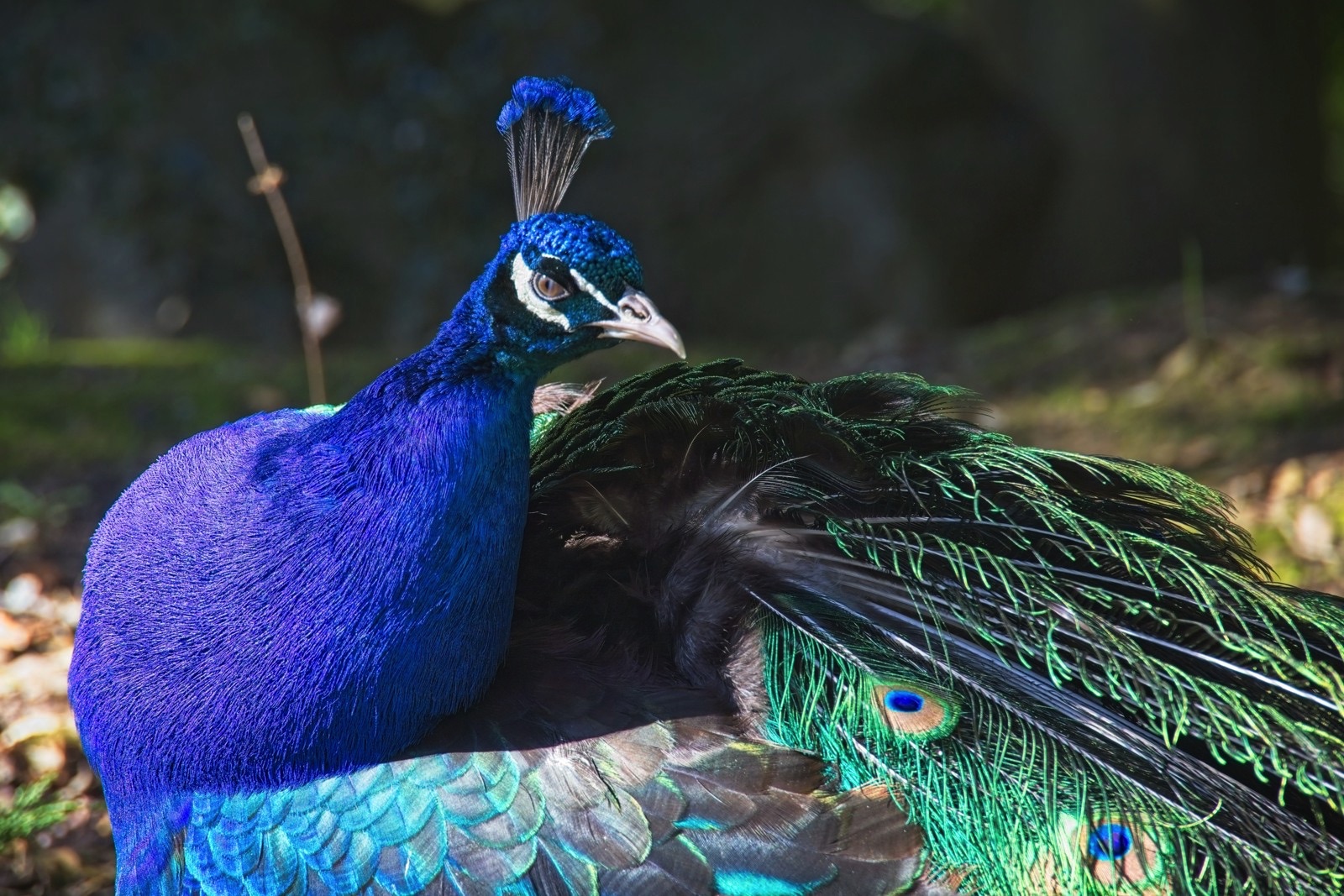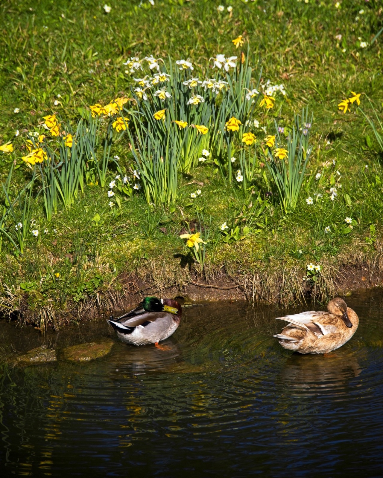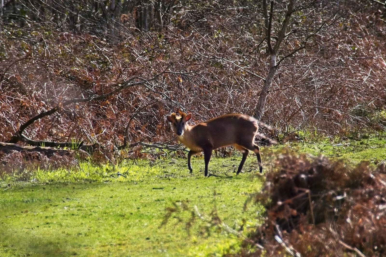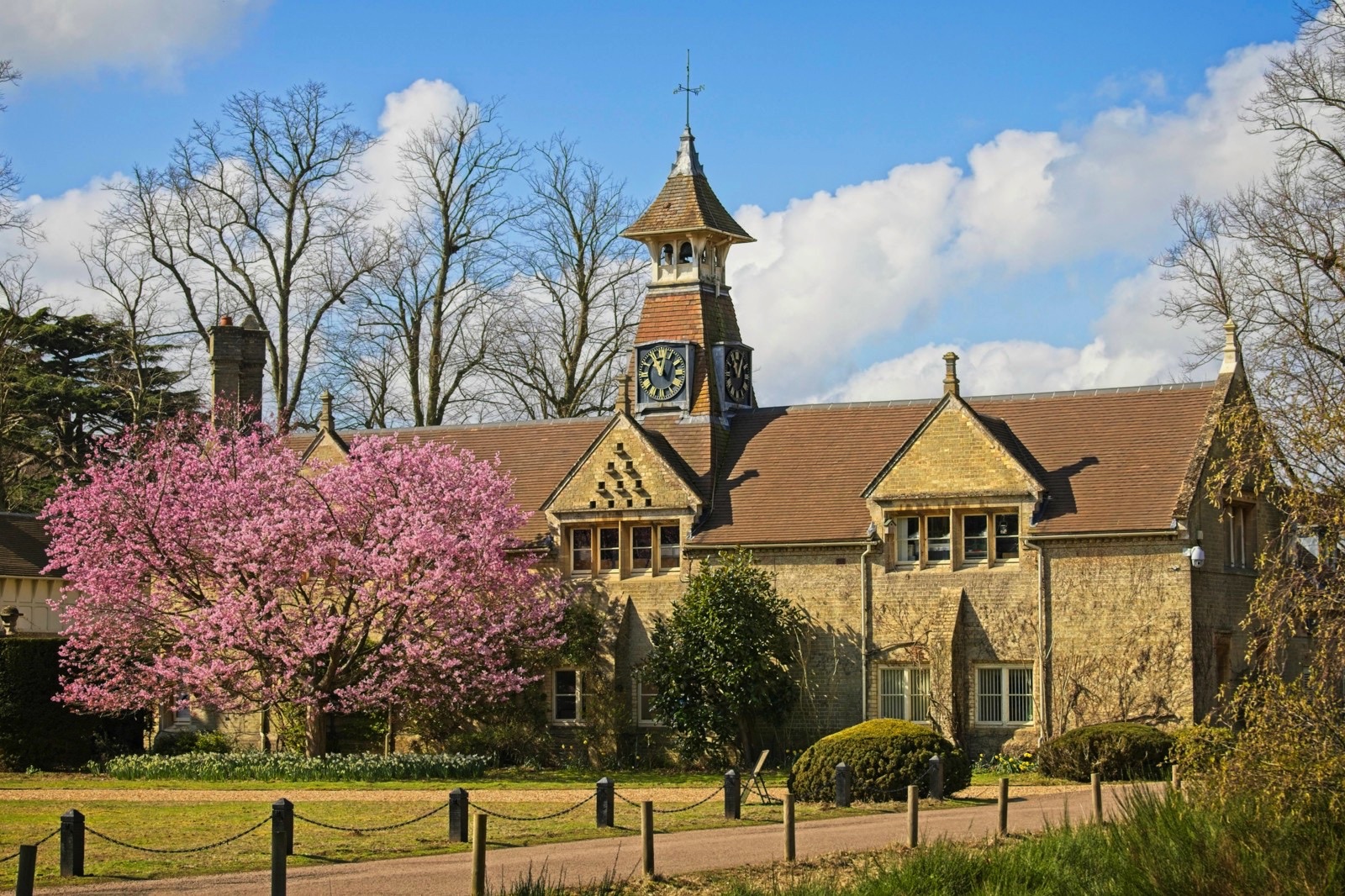 We have had some lovely spring weather on a couple of days recently. The muntjac above was at the Lodge and the one below at the Swiss Garden was a little more keen to forage than to watch me. The cherry tree at the Lodge is in full bloom and I used to enjoy it close up when I used to work at a desk under the clock. Not a bad place to work. I spent a couple of minutes trying to figure out where a robin was that I could hear singing close by. There it was, not looking too smart but still a treat. It seemed that it was preening time for the mallards at the Swiss Garden, not just the two in the photo below. The peafowl have got their spring plumage on. Very nice. There are tulips in the grotto at the Swiss Gardens the like of which I have never seen before. I’ll finish with a snap from the car park. The Shuttleworth Collection attracts classic cars but some people parked old Triumphs next to my classic Big Blue Snail. How dare they!